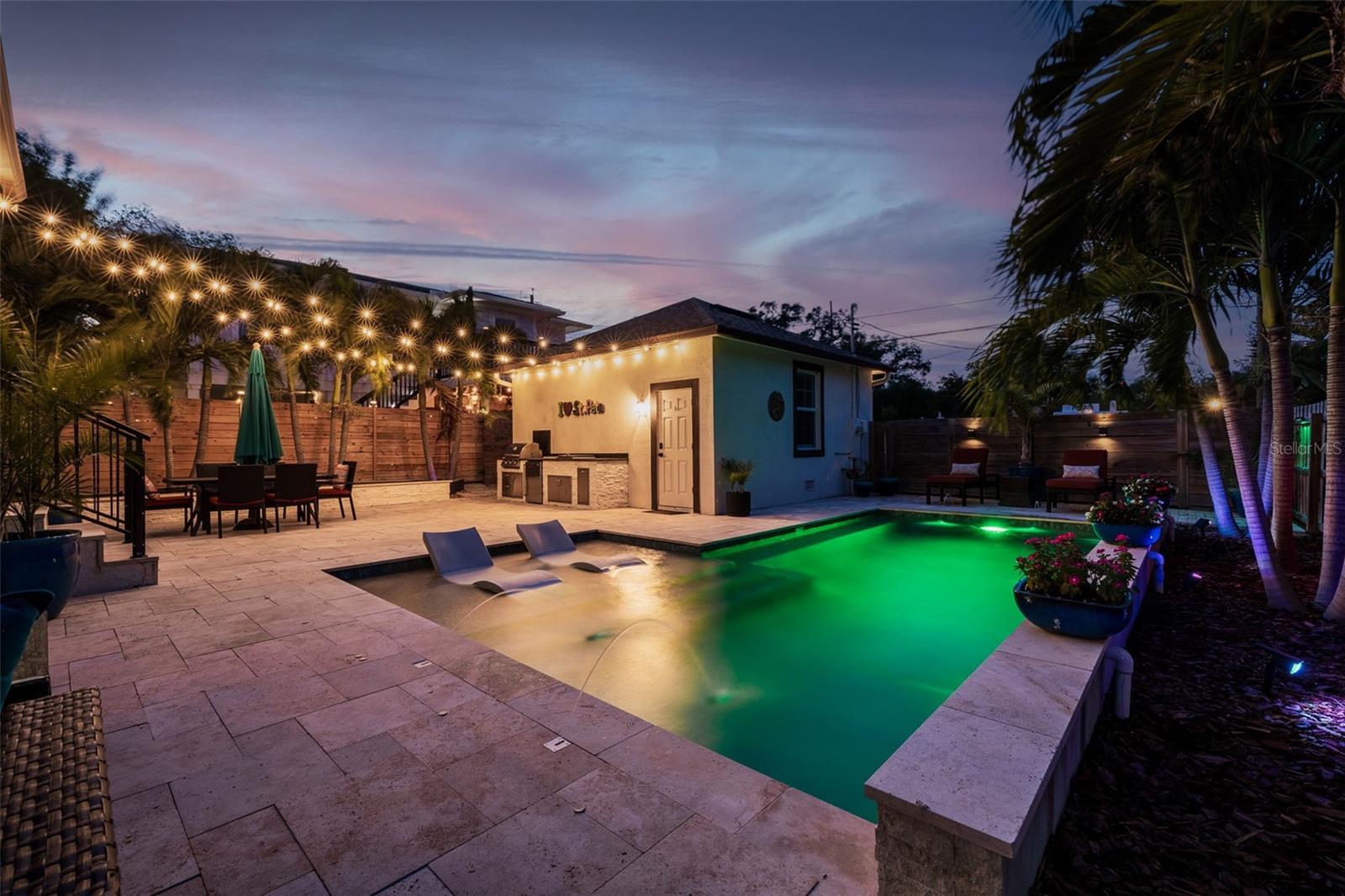 VENDEDORES MOTIVADOS!! Orgulhosamente mantida e localizada no bairro idílico do histórico Roser Park, esta casa elevada de 2017 oferece belas vistas de Booker Creek e, sim, você pode até ver peixes-boi, robalos e lontras... além de vistas do horizonte do centro de St. Alta e seca, com uma elevação de base de 11 pés, a casa não teve nenhuma intrusão de água durante as tempestades anteriores. Uma charmosa varanda frontal recebe você em um layout flexível com uma sala de jantar formal e um versátil espaço flexível no andar principal com banheiro completo - perfeito como suíte de hóspedes, escritório ou 4º quarto. A área de estar de conceito aberto flui perfeitamente para uma cozinha bem iluminada com bancadas de granito, armários shaker, eletrodomésticos de aço inoxidável (gama 2025 e micro-ondas 2026), uma grande ilha com balcão generoso, pia embutida e despensa. O primeiro andar apresenta madeira projetada com pintura interna fresca (2026). No andar de cima, você encontrará três quartos, dois banheiros, lavanderia e novo piso de madeira projetado (2026). A espaçosa suíte principal oferece tetos retangulares, luz abundante e vistas panorâmicas do riacho e da cidade, além de banheira tipo spa e amplo closet. Saia para o seu retiro privado no quintal projetado em 2019 com piscina aquecida de água salgada, deck de travertino, cozinha externa (churrasqueira, geladeira, refrigerador profundo), bem como iluminação de corda para adicionar ambiente e uma varanda coberta perfeita para relaxar ou se divertir. Atualizações adicionais incluem atualizações de equipamentos de piscina (bomba 2025, sistema de sal 2025), um gerador independente de 9.000 watts e um galpão de armazenamento de 8'x8'. Outros destaques incluem entrada inteligente, termostatos inteligentes, HVAC zoneado (2017), janelas de vidro duplo, venezianas, telhado (2017), aquecedor de água (2025) e garagem individual para dois carros com isolamento e armazenamento adicionais. Não perca esta oportunidade de boas pontuações de caminhada, vistas e muito espaço de entretenimento dentro e fora em um lote com localização única em uma rua sem saída dentro do histórico Roser Park, a poucos minutos das comodidades do centro de St Pete.