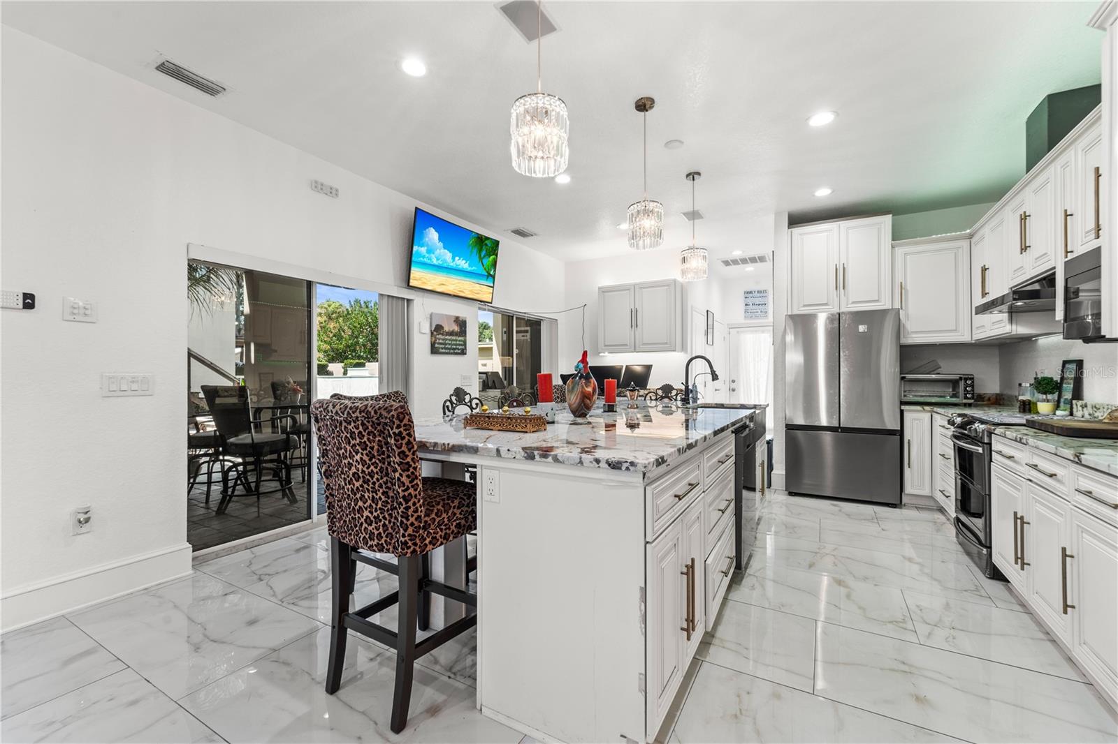 Propriedade excepcional em estilo oásis em uma desejável comunidade de golfe, com energia solar de propriedade total (sem locação) para máxima eficiência e economia. A vida ao ar livre em estilo resort inclui piscina e spa aquecidos e resfriados, ampla área de entretenimento com churrasqueira e vegetação exuberante e madura em toda a propriedade, criando um ambiente privado e sereno. O primeiro andar de conceito aberto foi projetado tanto para a vida cotidiana quanto para o entretenimento, apresentando uma espaçosa sala grande, área de jantar e cozinha, além de uma suíte primária privativa completa com closet e banheiro privativo. O segundo andar oferece quatro quartos adicionais, incluindo um com varanda privativa, proporcionando espaço flexível para famílias, convidados ou necessidades de home office. ADU independente acima da garagem oferece um apartamento 2BR/1BA totalmente equipado - ideal para residência multigeracional ou potencial de renda. Os destaques internos incluem fiação Ethernet completa, um aquário embutido personalizado que transmite e uma garagem climatizada para 3 carros. A casa está equipada com gerador para toda a casa com tanque de gás, sistema de tratamento de água para toda a casa; além disso, um pátio totalmente irrigado, reforçado por iluminação paisagística de baixa tensão. O amplo estacionamento inclui uma entrada estendida atrás de um portão elétrico automático, juntamente com uma estrutura de garagem/armazenamento de 50'L x 20'W x 20'H, ideal para armazenamento de trailers ou barcos. Propriedade totalmente cercada com entrada automatizada e seções de muro de concreto sólido para maior privacidade. Um espaçoso deck no segundo andar oferece espaço adicional ao ar livre.