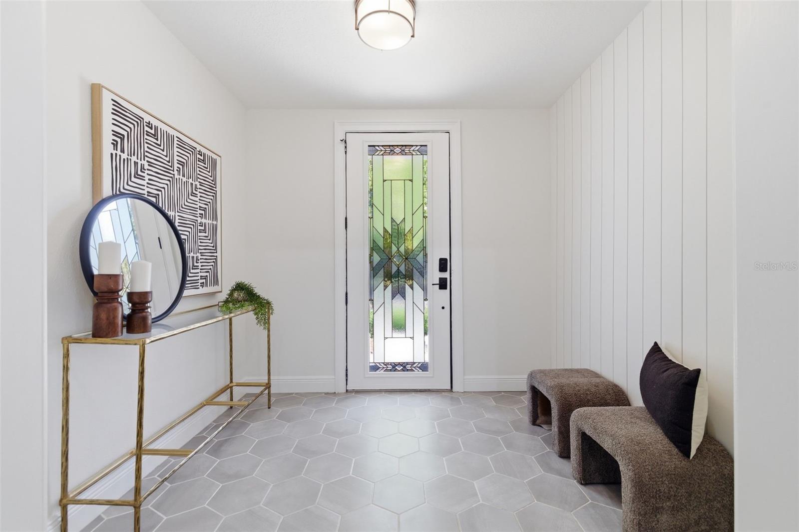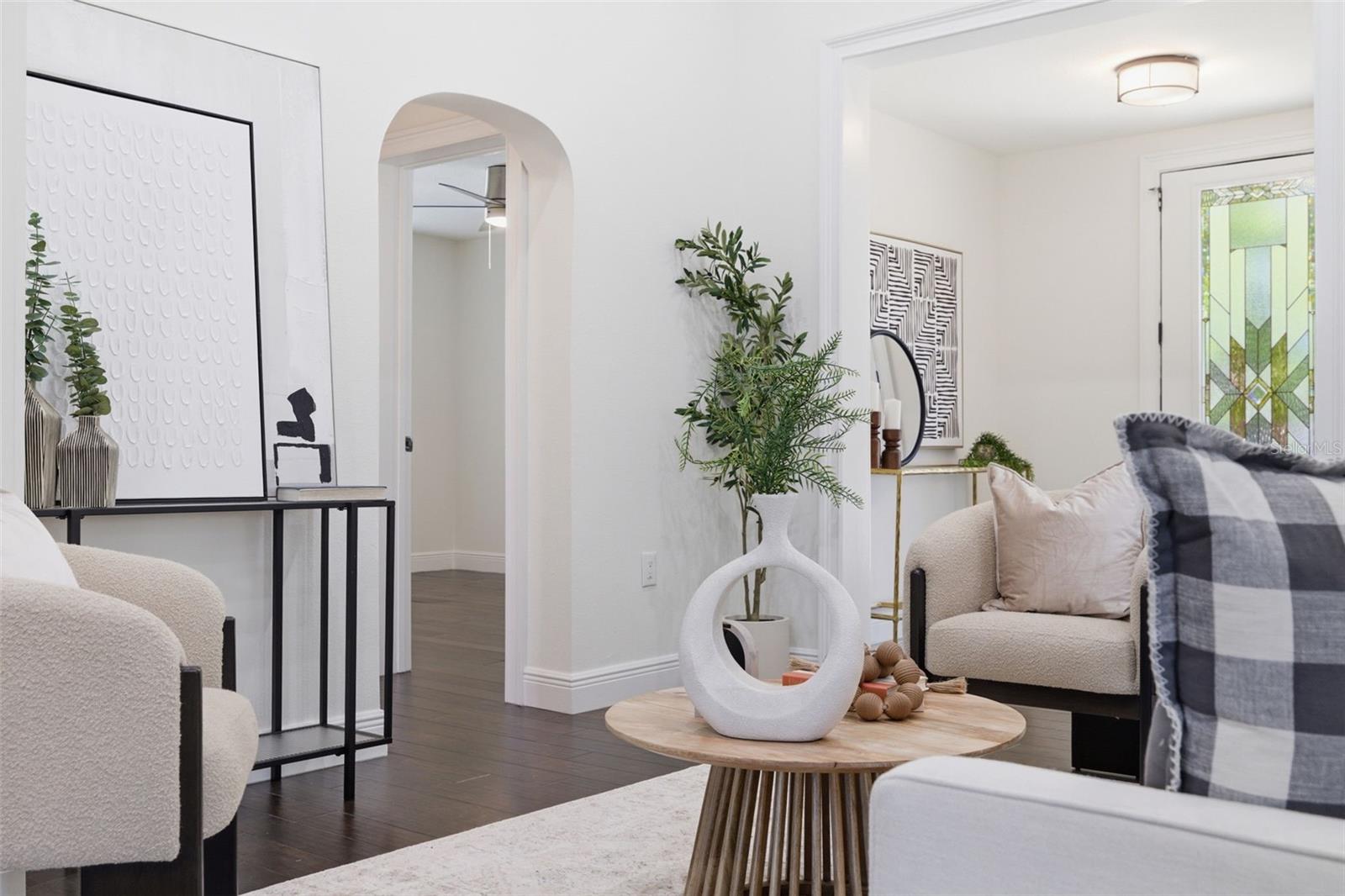 Bonito e pitoresco são os descritores perfeitos desta casa atualizada (2019), recentemente renovada em estilo artesanal dos anos 1940, com charmosos detalhes de época retidos, juntamente com tetos de catedral na combinação de sala de estar/jantar. As atualizações em 2019 incluem sistema elétrico, sistema de encanamento, sistema HVAC (manutenção x2/ano), piso, portas e janelas com cobertura contra furacões. Um novo telhado com base e clipes contra furacões foi adicionado em 2022. O esgoto e a linha de abastecimento foram substituídos aproximadamente em 2021/2022, antes dos atuais proprietários. Esta casa é alta e seca e não está em uma zona de inundação, apesar de estar localizada em um lago com vista para o mar. Com 3 quartos e 2 banheiros completos com planta dividida, os hóspedes em visita ou um escritório em casa ficam bem acomodados. A cozinha atualizada tem balcões de granito, lindo backsplash de azulejos e eletrodomésticos mais novos, incluindo geladeira, fogão, lava-louças, descarte e micro-ondas. Pintura interna e externa totalmente nova, abril de 2026. Acesse o quintal cercado através da grande lavanderia separada com lavadora e secadora mais recentes. Um portão de amizade na parte traseira da propriedade dá acesso ao caminho pedestre ao redor do lago. O paisagismo e o jardim do quintal incorporaram plantas nativas da Flórida tolerantes à seca.
