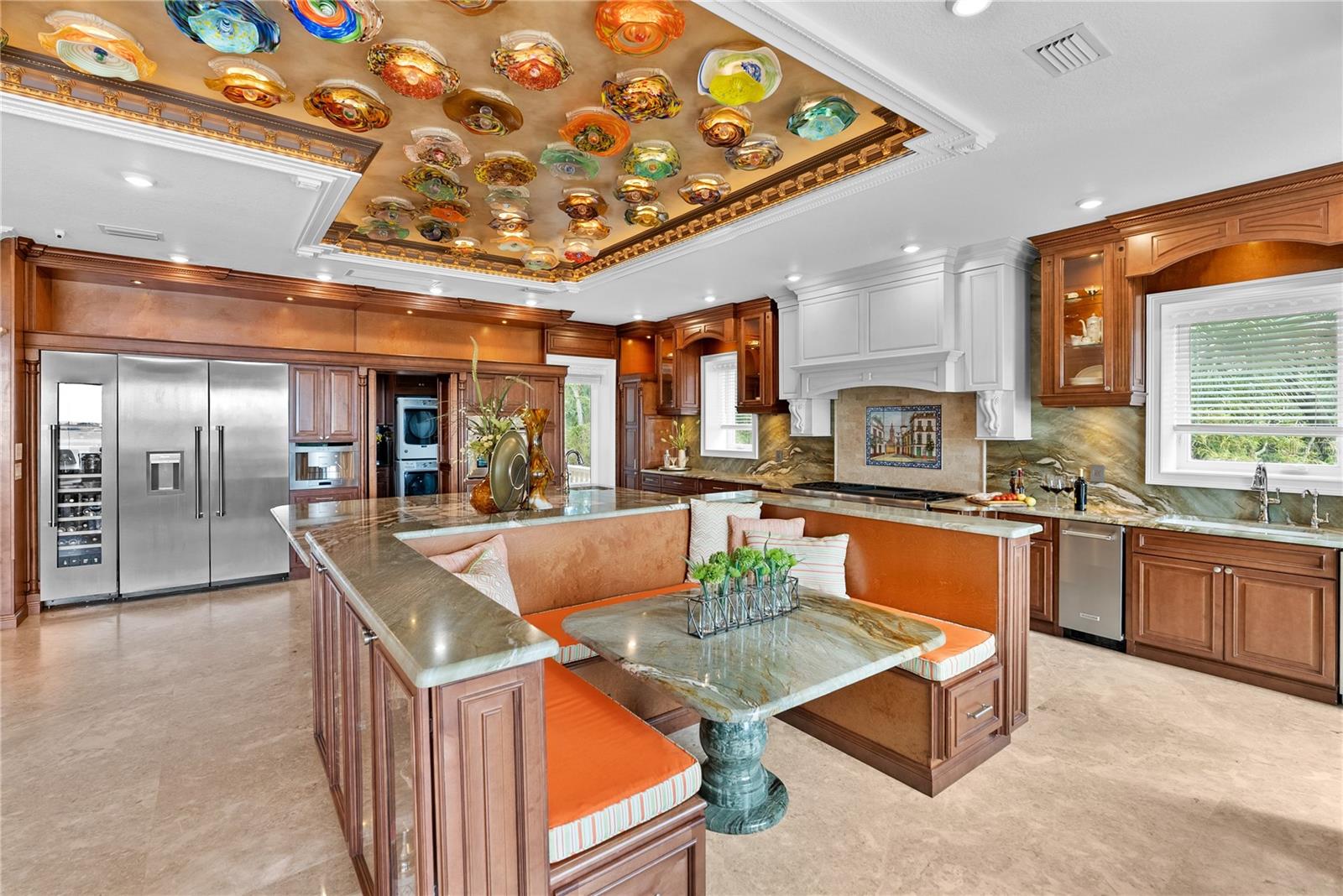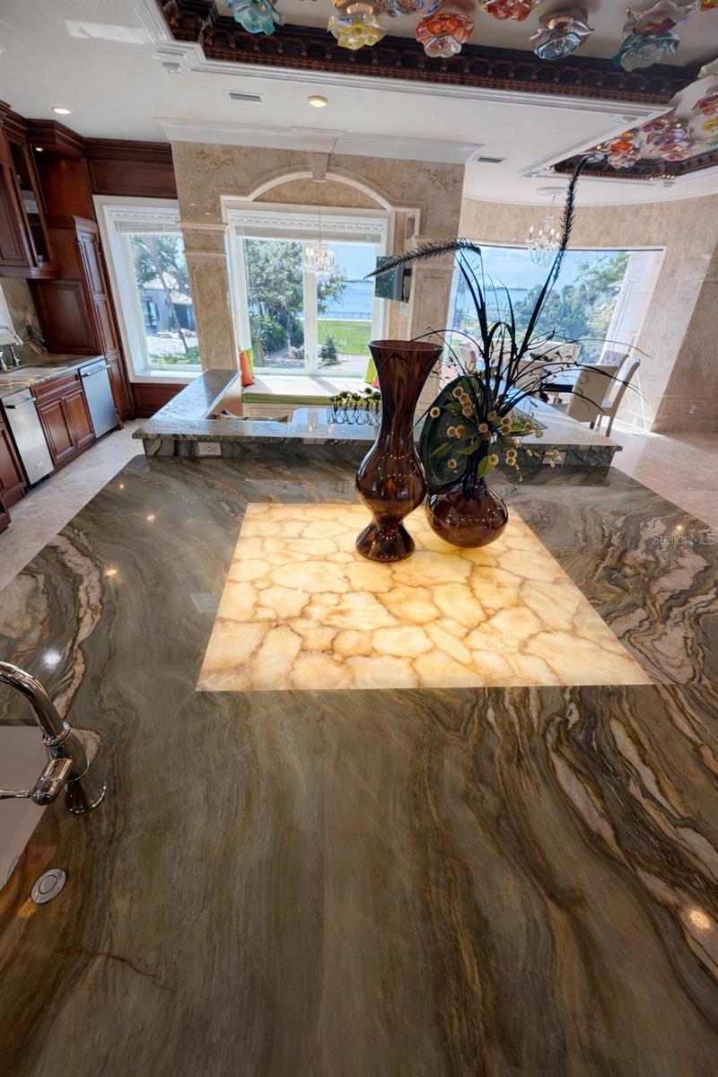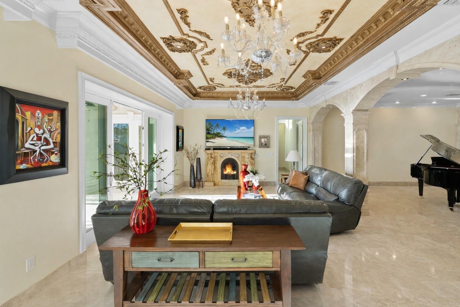 Palazzo Sul Mare é uma propriedade rara à beira-mar no cobiçado bairro de Jungle Prada, em São Petersburgo, oferecendo mais de 19.000 pés quadrados sob o telhado e mais de 10.000 pés quadrados de espaço interior luxuoso em mais de 1,5 acres ao longo da Intracoastal Waterway. Construída em 2020, esta residência combina construção moderna com design intemporal de inspiração europeia – uma oferta raramente encontrada neste mercado. Um grande pátio motorizado e um porte-cochère criam uma chegada segura em estilo imobiliário. O exterior de calcário, com curadoria de Portugal, juntamente com detalhes em ferro forjado, uma distinta cúpula azul, fonte, estátuas de mármore e carvalhos maduros, estabelecem um cenário atemporal cercado por uma paisagem tropical exuberante e pelos icônicos pavões do bairro. No interior, uma dramática rotunda abobadada coroada por um lustre de cristal ancora a casa, com piso de mármore embutido e escadas duplas de mármore. O layout captura vistas do mar por toda parte, com um corredor em estilo de galeria ideal para arte, um piano de cauda ou entretenimento. Arcos e colunas revestidos de mármore, intrincadas balaustradas douradas e tetos detalhados criam uma presença arquitetônica impressionante, enquanto nichos de arte iluminados melhoram a escala da casa e a continuidade do design. Carpintaria personalizada, tetos em estilo fresco e piso de mármore importado abrangem todos os três níveis. A cozinha possui um conjunto completo de eletrodomésticos Thermador, incluindo fogão a gás de 60 polegadas, refrigeração integrada e sistema de café embutido, além de superfícies de quartzito e uma ilha de ônix iluminada. Uma instalação personalizada de vidro soprado à mão no estilo Chihuly cria um ponto focal dramático e único acima, enquanto a área de jantar de vidro curvo emoldura vistas panorâmicas da água e da piscina, com amplo espaço para acomodar refeições em grande escala, vários arranjos de assentos ou áreas de entretenimento estendidas. A residência inclui várias suítes, várias com mais de 1.000 pés quadrados. Muitas suítes dispõem de banheiros inspirados em spa com azulejos de design, chuveiros com efeito de chuva, armários amplos e varandas privativas com vista para o mar ou para o jardim. A suíte principal do nível principal oferece banheiro de mármore com acessórios Phylrich, sauna, banheira de imersão, diversas penteadeiras, varandas privativas e vista panorâmica do mar sob um teto com afrescos personalizados. Um escritório privativo no nível principal possui paredes com painéis, embutidos, lareira de pedra ornamentada e acesso à varanda. O nível superior inclui um lounge em estilo clube com bar de quartzito em cascata e vista para o pôr do sol. A casa se estende por três níveis com acesso por elevador e escadas de mármore. Lavanderias em vários níveis adicionam funcionalidade ao dia a dia. A vida ao ar livre inclui piscina com entrada zero, piscina olímpica, spas quentes e frios, amplos terraços, pátios, fogueira, praia privativa, árvores cítricas e um amplo gramado traseiro. O terreno oferece espaço para pousada ou ADU, quadra esportiva, cabana ou estufa. A doca privada inclui um elevador de 10.000 libras, elevadores adicionais para embarcações pessoais, rampa molhada para um iate e acesso direto ao Golfo. Construído para longevidade com construção de cais e vigas sobre estacas, janelas e portas resistentes ao impacto e exterior de pedra. A tecnologia de casa inteligente inclui cobertura total de câmeras de segurança. A energia solar e os geradores para toda a casa aumentam a eficiência e a confiabilidade. A capacidade da garagem para aproximadamente 6 veículos inclui espaço adicional para oficina, recreação ou academia, além de mais de 5.000 pés quadrados de espaço flexível no nível inferior. Uma rara combinação de escala, habilidade e presença à beira-mar.