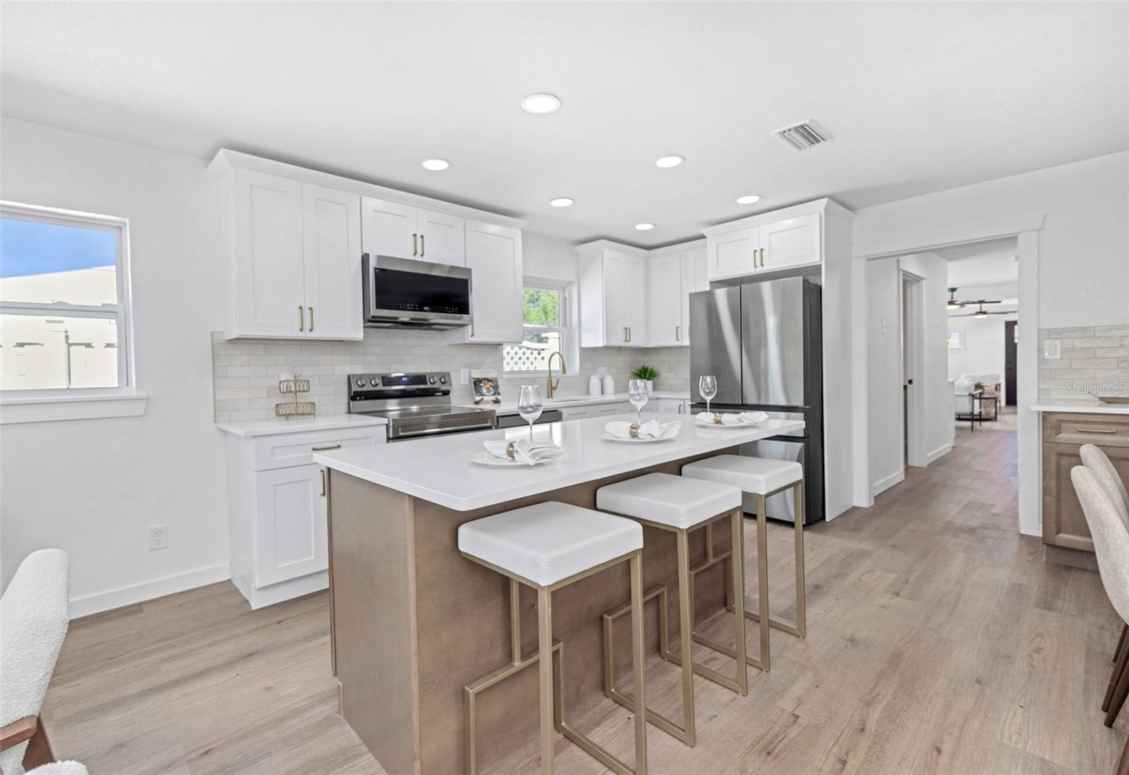 Welcome to your new St. Pete Home!? Esta casa totalmente renovada de 4 quartos e 3 banheiros combina design limpo e moderno com o estilo de vida descontraído que torna esta área tão especial. A partir do momento em que você entra, você notará como o espaço parece aberto e claro - luz natural, amplo piso de tábuas e um layout que pode acomodar qualquer estilo de vida. A cozinha é verdadeiramente o coração da casa, com bancadas de quartzo, eletrodomésticos de aço inoxidável, armários atualizados e uma grande ilha perfeita para hospedar, manhãs tranquilas com café ou uma taça de vinho depois da praia. Os quartos são espaçosos e confortáveis, e os banheiros foram lindamente atualizados com azulejos de design e acabamentos de alta qualidade. A suíte principal oferece seu próprio retiro privado com banheiro totalmente remodelado. Você também vai adorar o espaço dedicado para lavanderia/utilidades e a sala de bônus! Nos fundos, você tem um quintal totalmente cercado com espaço para criar a vibração que desejar - noites de churrasco ou uma fogueira. É uma tela em branco com muito potencial. A localização... A propriedade fica em um bairro tranquilo, a poucos minutos do centro de St. Pete, onde você tem alguns dos melhores restaurantes, cafés e vida noturna da região, além de fácil acesso às praias para noites de pôr do sol e redefinições de fim de semana. O acesso rápido à I-275 torna simples chegar a qualquer lugar em Tampa Bay. Se você está procurando por algo que esteja pronto para começar sua nova vida, é isso!