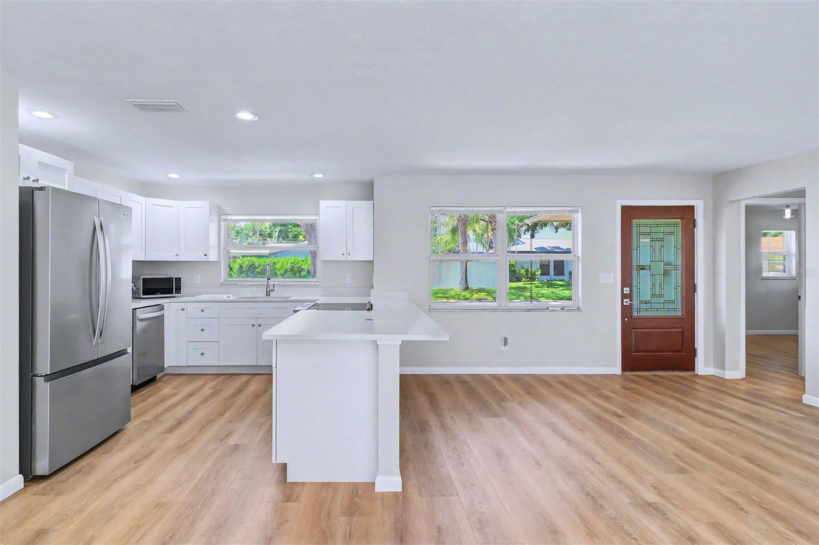 Bem-vindo ao 7901 3rd St N, uma joia completamente renovada situada em um terreno de esquina desejável no norte de São Petersburgo! Esta casa lindamente atualizada de 3 quartos e 2 banheiros com garagem para 1 carro oferece 1.654 pés quadrados de espaço cuidadosamente projetado, incluindo um deslumbrante quarto fechado na Flórida que flui perfeitamente para a área de estar principal com piso nivelado e contínuo por toda parte. Nenhum detalhe foi esquecido nesta reforma completa. A cozinha brilha com elegantes bancadas de quartzo e possui uma conveniente tomada pop-up no bar, perfeita para carregar dispositivos enquanto você cozinha, se diverte ou desfruta de seu café da manhã. Pisos de nível comercial de 20 anos percorrem toda a casa, construídos para parecer bonitos e durar décadas. A sala fechada da Flórida foi totalmente refeita e nivelada para criar uma transição suave e aberta para a sala de estar, proporcionando um espaço ainda mais flexível para desfrutar durante todo o ano. Saia para um quintal totalmente cercado, perfeito para animais de estimação, entretenimento ou simplesmente relaxar em seu retiro privado. Um prático galpão de armazenamento adiciona utilidade extra, enquanto o lote de esquina oferece maior privacidade e apelo ao meio-fio. Localizado em North St. Pete, você está a poucos minutos de restaurantes vibrantes, lojas, escolas de primeira linha e tudo de melhor que a área de Tampa Bay tem a oferecer. 1.654 pés quadrados. 3 Quartos. 2 banheiros. Garagem para 1 carro. Renovação Completa. Bancadas de quartzo. Saída de barra pop-up. Pisos de nível comercial de 20 anos. Quarto Florida fechado com transição perfeita. Lote de esquina. Quintal Cercado. Galpão de armazenamento. Este não vai durar. Agende sua exibição privada hoje mesmo!