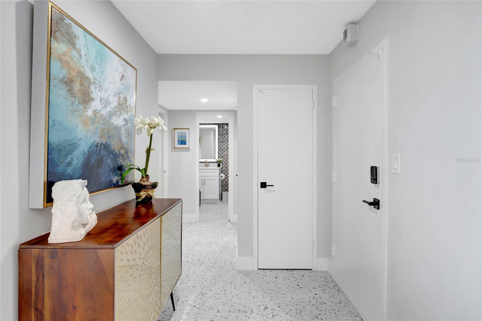 Condomínio de unidade de esquina completamente remodelado com vistas de um milhão de dólares por dia e pores pôr do sol incrível todas as noites! Você notará imediatamente as janelas de impacto classificadas pelo furacão no chão ao teto, permitindo que a brilhante luz natural derramar no abundante espaço de estar. Cada janela tem seu próprio Bali Motorized Blind com controle remoto. Centro de entretenimento embutido construído de ladrilhos de onda de fada preta abriga uma televisão OLED de 65 ”e uma bela lareira elétrica. Acentos de ouro para a indução de ELTA Branco da Itália complementa as bancadas brancas A suíte inclui janelas com classificação de furacões de frente para a baía em dois lados, um closet com porta de bolso de vidro opaco. O banheiro do hóspedes inclui banheira com um sistema de chuveiro delta, um espelho anti-capa iluminado sobre a bancada de quartzo. Lançamento de caiaque, armazenamento de bicicleta e caiaque, sala de jogos, sala de correio e sala de hobby.