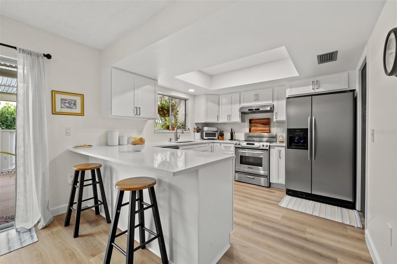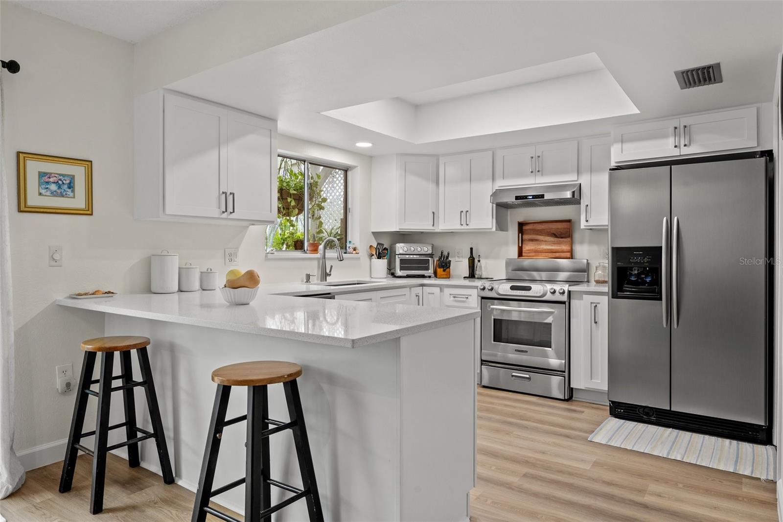Bem -vindo a um condomínio lindamente remodelado em Mariners Pass! Este condomínio de 2 andares possui 3 quartos, 2,5 banheiros e uma garagem de 1 carro e uma espaçosa plano de piso de 1.582 pés quadrados. O pátio coberto de grandes dimensões fornece o espaço perfeito de tranquilidade para revigorar suas manhãs e encerrar suas noites. As atualizações mais recentes certamente impressionarão, incluindo dois novos remodelamentos de banheiro, completos com novas vaidades, espelhos e luminárias, juntamente com uma cozinha modernizada com armários de agitação suaves e suaves, bancadas de quartzo, novos pisos LVP em todo o espaço de vida, tinta fresca, aquecedor de água mais novo e aplicações de aço sem desvio. O layout aberto no nível principal cria uma atmosfera convidativa, ideal para relaxamento e entretenimento. A cozinha, com seu design elegante, é um sonho culinário. No andar de cima, os quartos oferecem amplo espaço, luz natural e um vislumbre de uma vista para a água que oferece um retiro pacífico no final do dia. A comunidade de passes do Mariner está completa com 2 piscinas de água salgada (1 aquecida) e 2 docas comunitárias para atividades de pesca e água. Passeios ao longo do paredão nesta comunidade é uma atividade diária com programas de peixe -boi grátis e golfinhos! Mais importante, a taxa HOA cobre água, esgoto, lixo, manutenção externa, manutenção de terrenos, piscina comunitária, controle de pragas, reservas, uma apólice de seguro de inundação e perigo mestre, internet de alta velocidade e TV a cabo! Também está a uma curta distância de algumas das escolas mais bem classificadas em São Pete; Shore Acres Elementary, Canterbury School da Flórida e a nova escola conectada ao estado da Art Speer YMCA. Além disso, ao virar da esquina do mundialmente famoso campo de golfe de mangue. Ligue hoje e seja a inveja da família, amigos e vizinhos!