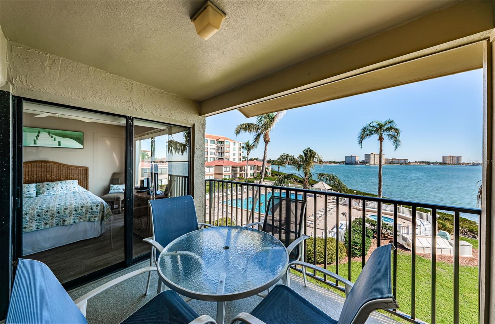 Excelente vista! Localizado em Palma del Mar na bela Isla del Sol, este condomínio no estilo de villa de 3º andar de 890 pés quadrados possui uma grande varanda com vista para a piscina e belas vistas da baía. Sinta -se em casa enquanto entra neste condomínio atualizado com pisos de vinil de cuidados fáceis por toda parte. A cozinha é leve e brilhante, com armários atualizados, armazenamento adicional, iluminação e bancadas em granito. Grande quarto primário com segurança que atualizou a vaidade, o espelho e o chuveiro. O plano de quarto dividido oferece privacidade para o quarto de hóspedes adjacente ao banheiro secundário. A varanda coberta tem piso epóxi e um armário de armazenamento. Estacionamento de nível superior conveniente #131. As características da comunidade incluem piscina aquecida e spa, juntamente com um píer de pesca. Ótimo como um investimento para a renda imediata de aluguel, ou melhor ainda para tornar este seu lar permanente em casa ou férias no paraíso. Aproveite um golfe, tênis, iate ou associação social oferecidos no Isla del Sol Yacht & Country Club. Tudo isso, e poucos minutos das praias premiadas do Parque Estadual de Fort Desoto, e de St Pete Beach. Ou com fácil acesso ao i275, você está a apenas 15 minutos da atividade vibrante da vida noturna, restaurantes e compras no centro de São Petersburgo.