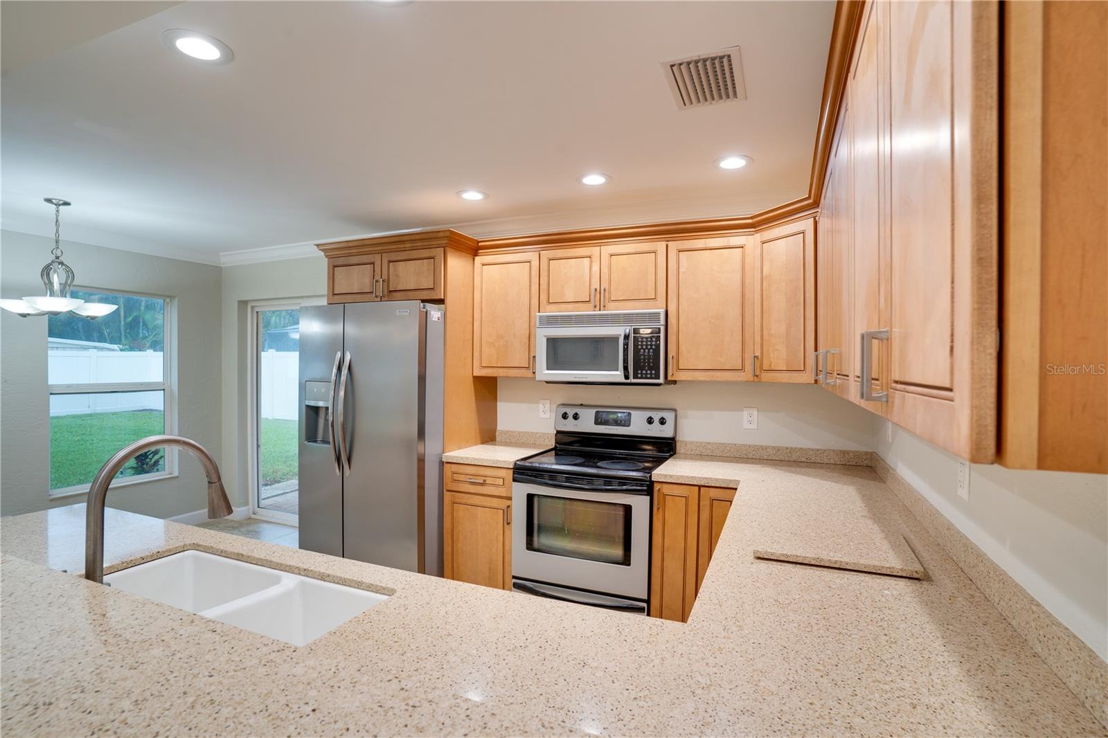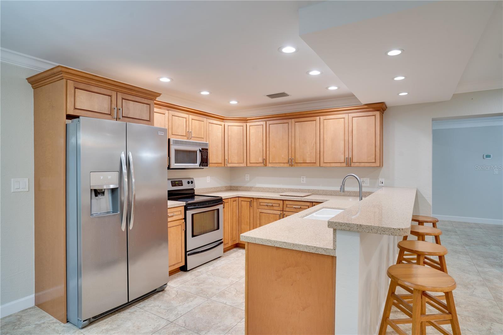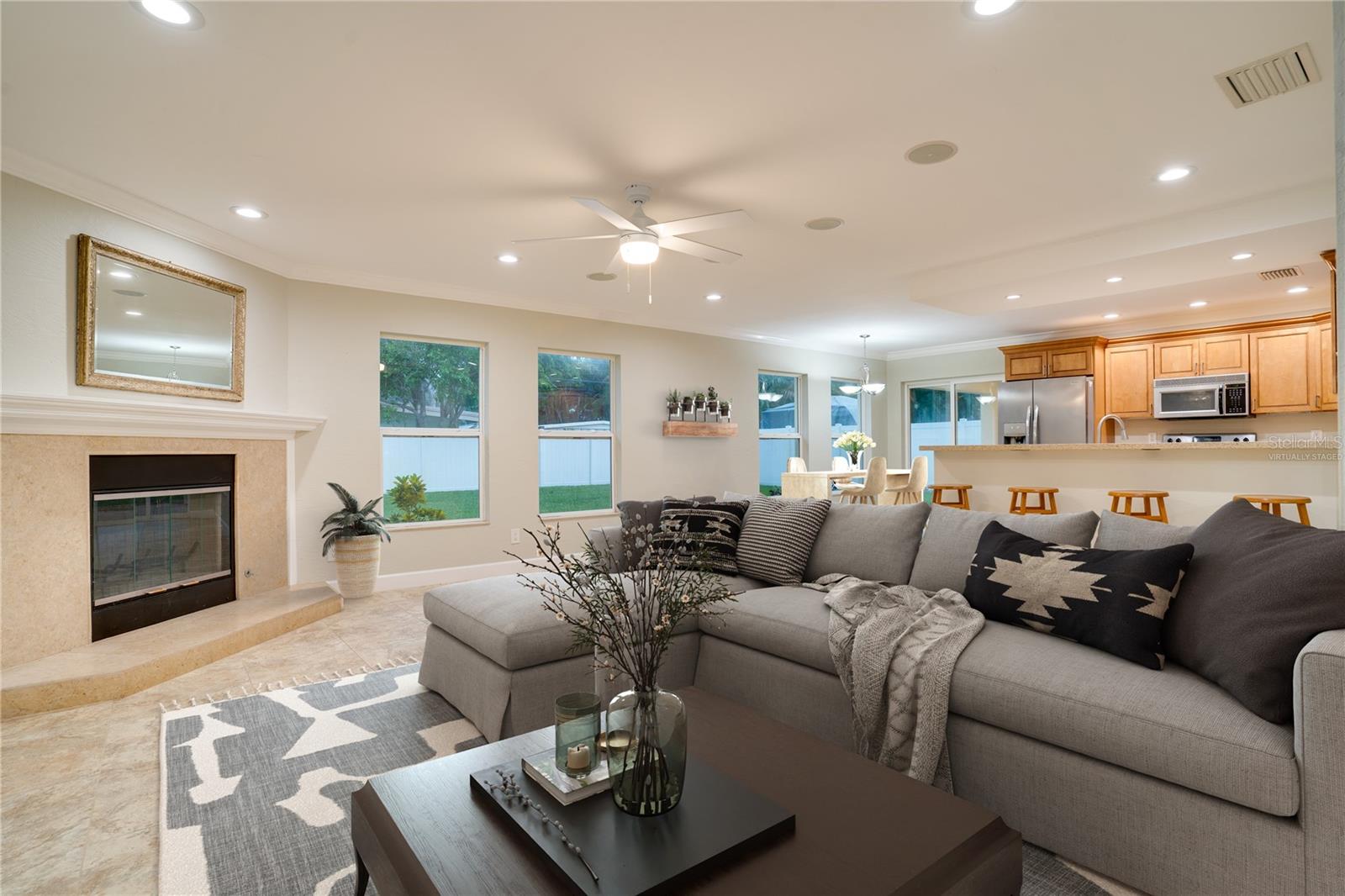 Uma ou mais fotos foram praticamente encenadas. Come cativante localizada em um dos bairros altamente procurados de São Petersburgo, a apenas alguns passos da magnífica baía de Boca Ciega. Ao entrar, você será recebido por um ambiente convidativo e um layout de conceito aberto que conecta perfeitamente os espaços de estar. A espaçosa sala grande oferece uma área confortável para relaxamento e entretenimento, com grandes janelas que inundam o espaço com luz natural, criando uma atmosfera arejada e brilhante que leva à encantadora sala de estar com uma lareira personalizada que é prejudicada para gás ou pode ser usada como lareira de queima de madeira. The kitchen is a chef's dream, charming Quartz countertops, a large eat-at bar, solid oak-wood cabinets with large 42" upper cabinets, and stainless steel appliances. This property comprises three generous bedrooms, 2 bathrooms, and a full sized 2 car garage. Additional features include: A considerably large in house walk-in laundry room with ample storage, Sprinkler system - controlled by private well, HVAC 2021, Roof 2010, double paned windows, walk-in pantry, sliding glass doors leading outside from the second bedroom, overhead fans throughout, two covered porches (front & rear) + additional patio with pavers, open floor plan, crown molding, custom closet doors with automatic lighting, a massive sized 2 car garage with utility room, and SO much more! Step outside and be amazed by the outdoor space that is tranquil of relaxation featuring an oversized, fully fenced in, well-maintained Backyard com vegetação exuberante e um espaçoso pátio coberto. Parque privativo para pescar e pegar o belo pôr do sol da Flórida, esta casa fornece acesso fácil a uma variedade de comodidades Solta a chance de tornar esta casa sua casa e experimente o melhor da Florida! https://my.matterport.com/show/?m=ehxxnebxj1e armário de quarto Tipo: armário embutido (quarto primário).