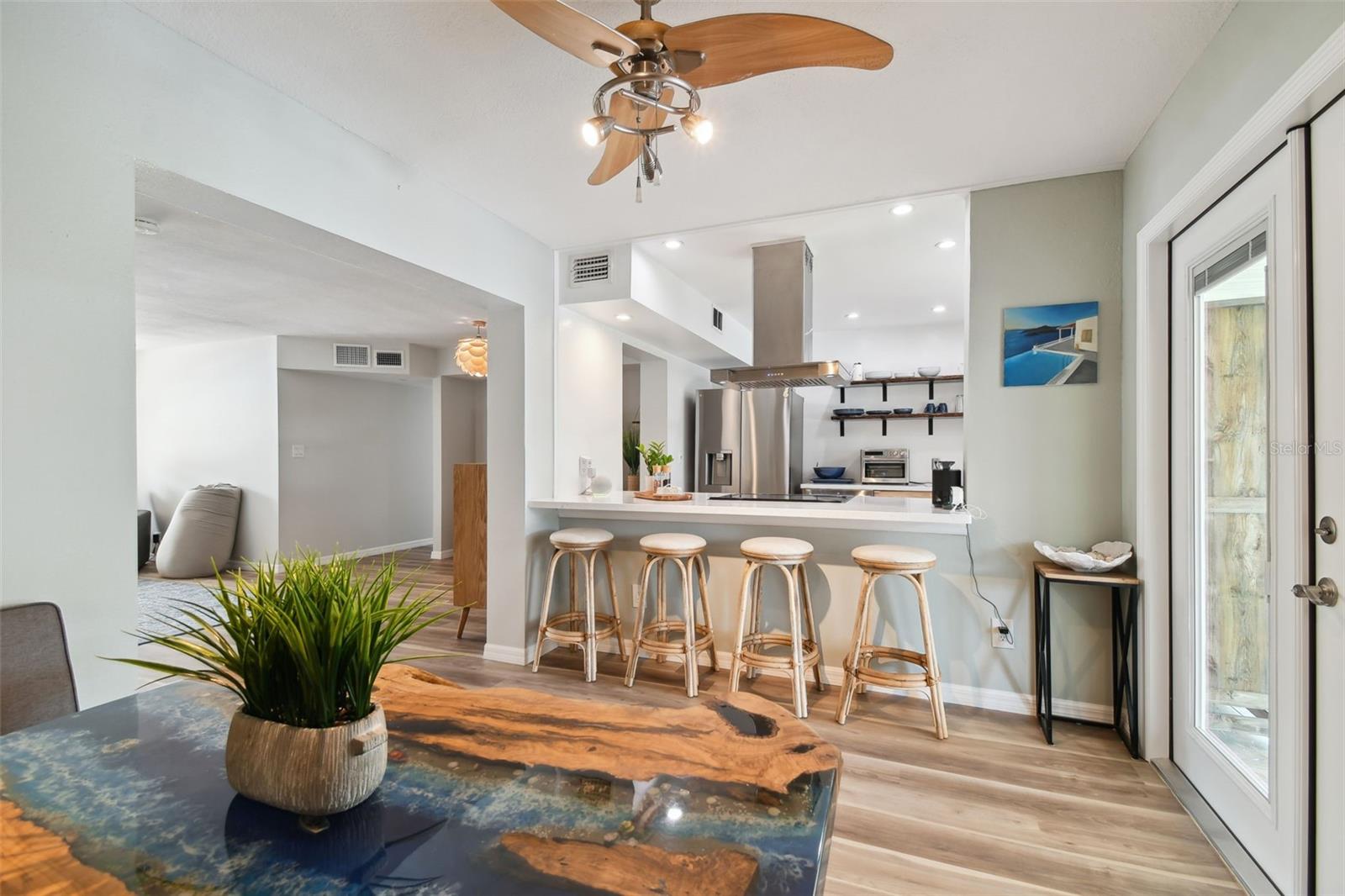 Residência tropical recém -renovada no belo bairro de acres em terra, com 3 quartos e espaçosos espaços de convivência. O layout aberto é extremamente convidativo, com a cozinha cercada por uma área de jantar e um recanto de comer separado por um bar com Eat-Across. A cozinha possui todos os aparelhos de roubo de aço inoxidável, incluindo um LG 26 CU. Ft. Geladeira inteligente. O banheiro principal mostra uma estética moderna, enquanto o segundo banheiro completo do lado de fora evoca uma vibração de tulum tropical. A lavanderia da área de estar oferece amplo espaço para uso como despensa. O quintal é lindamente paisagístico, oferecendo muito espaço para criar seu próprio oásis. As portas francesas levam ao pátio traseiro fechado, completo com uma pia ao ar livre, freezer e espaço para entretenimento. A garagem fechada pode servir como oficina ou academia em casa, e a aconchegante casa de quintal é ideal para acomodar hóspedes ou sogros. Situado perto do centro de St. Pete, fica a apenas 10 minutos de carro pelo cênico bairro de Snell Isle para chegar ao centro da cidade. O bairro é amigável ao carrinho de golfe e muitas ciclovias que levam à cidade. O New Shore Acres Recreation Center fica a apenas três quarteirões de distância e o novo Speer YMCA fica a 6 minutos de carro pelo bairro. O distrito escolar é altamente considerado, com inúmeras opções de ensino fundamental e médio disponíveis. A área comercial do Nordeste fica a cerca de 3 km de distância, onde você encontrará um novo Whole Foods, Publix, ótimos restaurantes, uma nova academia, UPS, Starbucks e muito mais!