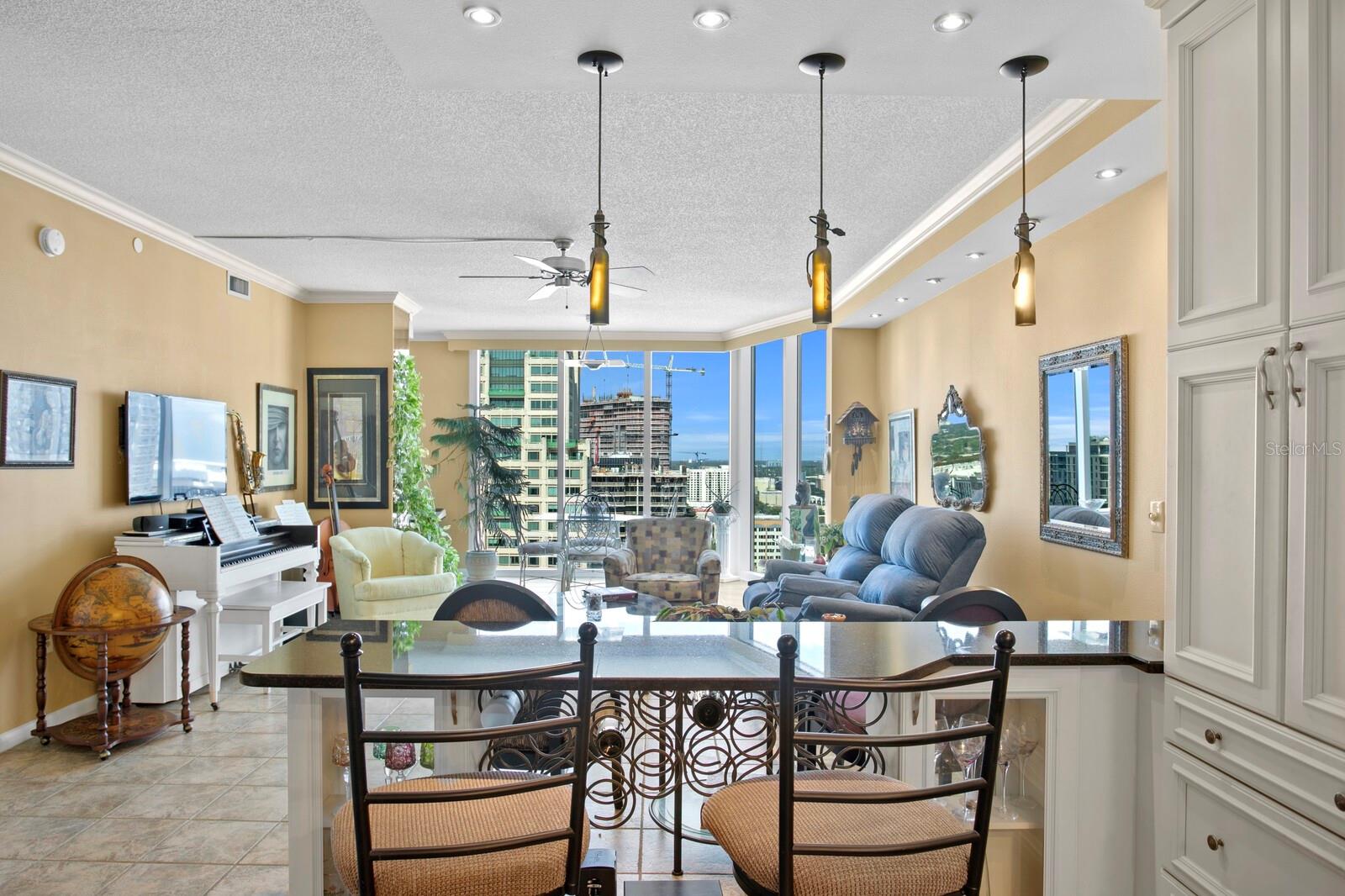 Desfrute de vistas deslumbrantes da cidade desta casa de condomínio voltada para o oeste. A planta aberta se concentra nas janelas do chão ao teto e abre para uma varanda ideal para assistir ao pôr do sol. A cozinha é um estilo francês do país, com armários brancos cremosos de painel elevado, bancadas em granito e uma barra de jantar. A suíte primária possui armários duplos (incluindo uma grande caminhada), área de vestir e armários de armazenamento, um chuveiro grande com arredores de ladrilhos, vaidade larga e armário de água privado. Além do quarto espaçoso, há um escritório/covil confortável. Existem muitos armários embutidos e espaços de exibição por toda parte, e você apreciará o armário de armazenamento controlado pelo clima que está no mesmo andar que a unidade. O próprio edifício oferece comodidades incomparáveis, do concierge de 24 horas e do estacionamento com manobrista a um nível de amenidade inteiro no 28º andar, incluindo um centro de fitness de última geração e uma piscina na cobertura. Ambos os pisos têm passarelas de pedestres de 360 graus. Você pode desfrutar de vistas de água de tirar o fôlego sempre que quiser! Bayfront Tower é o endereço original da praia. Recentemente, ele teve US $ 12 milhões em atualizações para os elementos comuns, e o próximo trabalho estrutural manterá o som para o futuro. Marque hoje uma consulta para ver por si mesmo o quanto você gosta de morar aqui no coração do centro da cidade, cercado por galerias, museus, restaurantes, o píer e os excelentes parques à beira -mar.