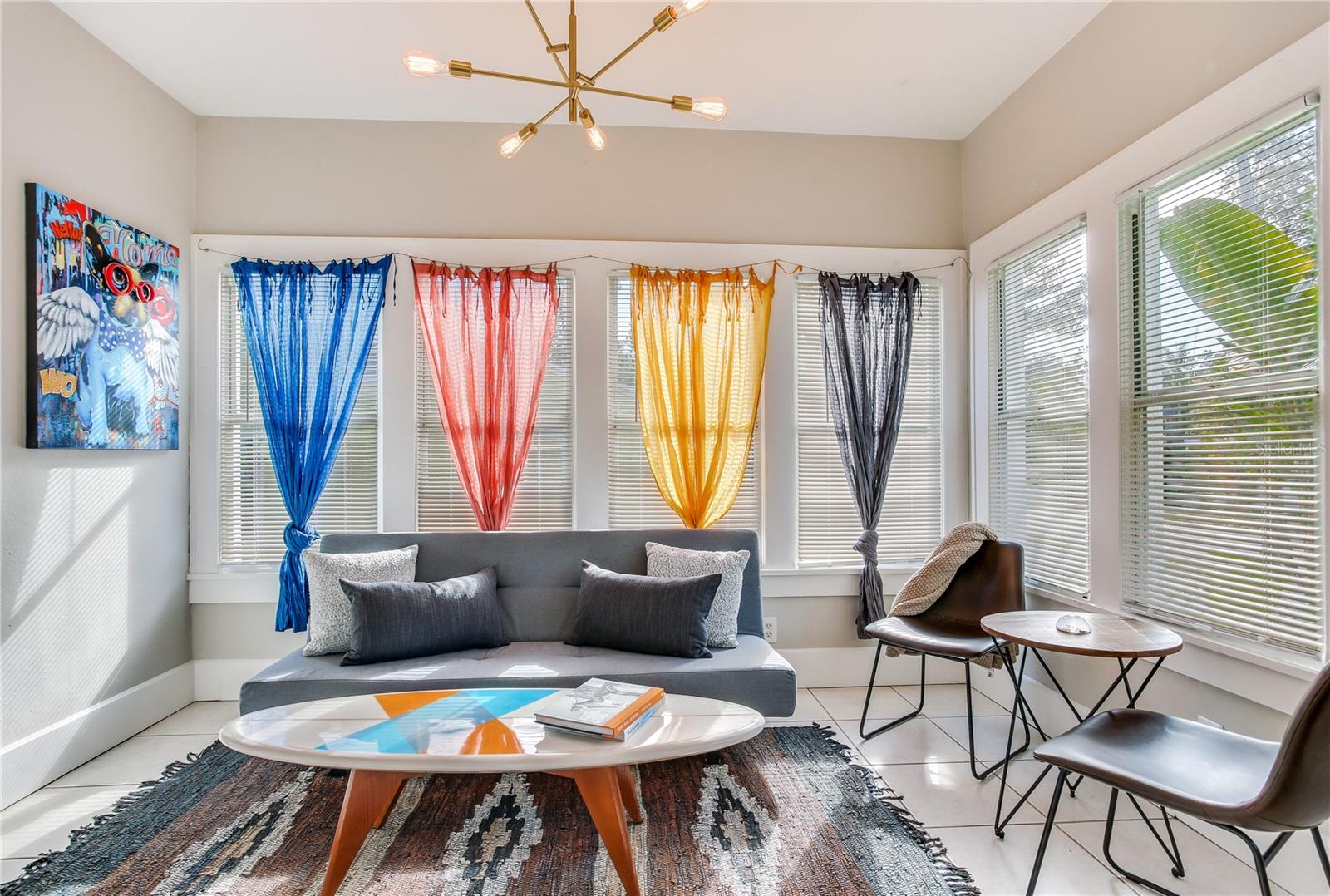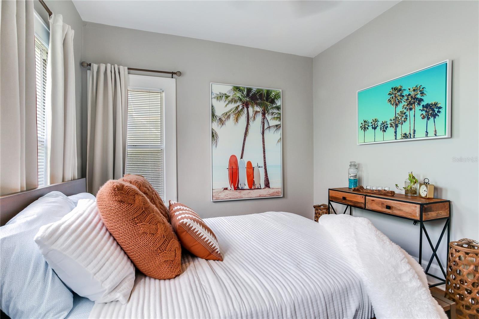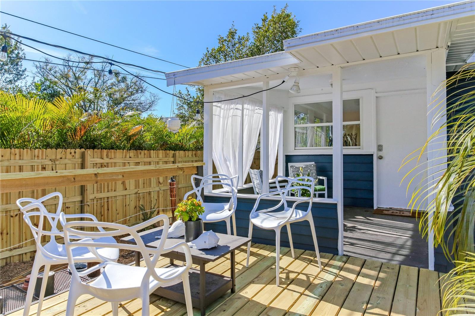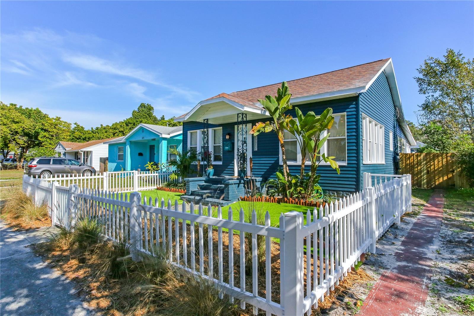 2 quartos 1,5 banheiro em casa! Estúdio com banheiro completo !! Localizado no bairro encantador, perto do centro da cidade. Petersburgo !! Este bangalô Kenwood bem conservado inclui dois quartos, banheiros um e meio, além de um estúdio independente com acomodações para dormir para quatro, um banheiro compacta e privado com chuveiro embutido. Formada por uma cerca de piquete ao redor do quintal da frente, uma cerca de privacidade circulando o quintal e um paisagismo exuberante e de baixa manutenção, essa habitação com tema de praia apresenta um esquema de cores de inspiração costeira, obras de arte mostrando cenas tropicais e pranchas de surf/pranchas revoluntes como mesa, decoração de parede e peças acentuadas. Passos de tijolos combinando com a cor externa da casa levam a uma varanda coberta destacada por colunas ornamentadas de metal. A entrada abre para a área principal, com pisos de madeira e lareira de tijolos. As portas francesas se abrem para a sala de bônus cheios de sol, uma cozinha completa, um recanto de jantar e área de lavanderia interna. As vistas da janela estão disponíveis em todos os quartos. O espaço interior total é de 937 pés quadrados, enquanto todo o lote abrange 5.624 pés quadrados. O convidativo quintal apresenta uma varanda coberta, um deck de ar ao ar livre e uma fogueira circular com espaço adicional, fornecendo o lugar perfeito para entreter, desfrutar do pôr do sol noturno e se reunir sob um céu cheio de estrelas. O bairro está listado no Registro Nacional de Lugares Históricos e é conhecido por suas árvores maduras, artesãos de bangalôs e como um distrito artístico diverso. Kenwood foi o primeiro subúrbio de St. Pete e seu primeiro bairro para os moradores durante todo o ano. A oeste do centro da cidade, a comunidade é conveniente para a vibrante cena gastronômica de St. Pete, cervejarias artesanais locais, museus excelentes, a orla brilhante do centro do distrito, praias próximas, centros de artes de apresentação e locais de concertos, além de Tropicana Field, casa da equipe de beisebol de Tampa Bay Rays. A localização central oferece fácil acesso a rodovias interestaduais, aeroportos internacionais, recreação ao ar livre, que variam de pesca em alto mar a instalações de golfe e tênis durante todo o ano e outras franquias de esportes profissionais de Tampa Bay Area, incluindo o time de futebol de Tampa Bay Buccaneers e o time de hóquei de Tampa Bay Lightning.