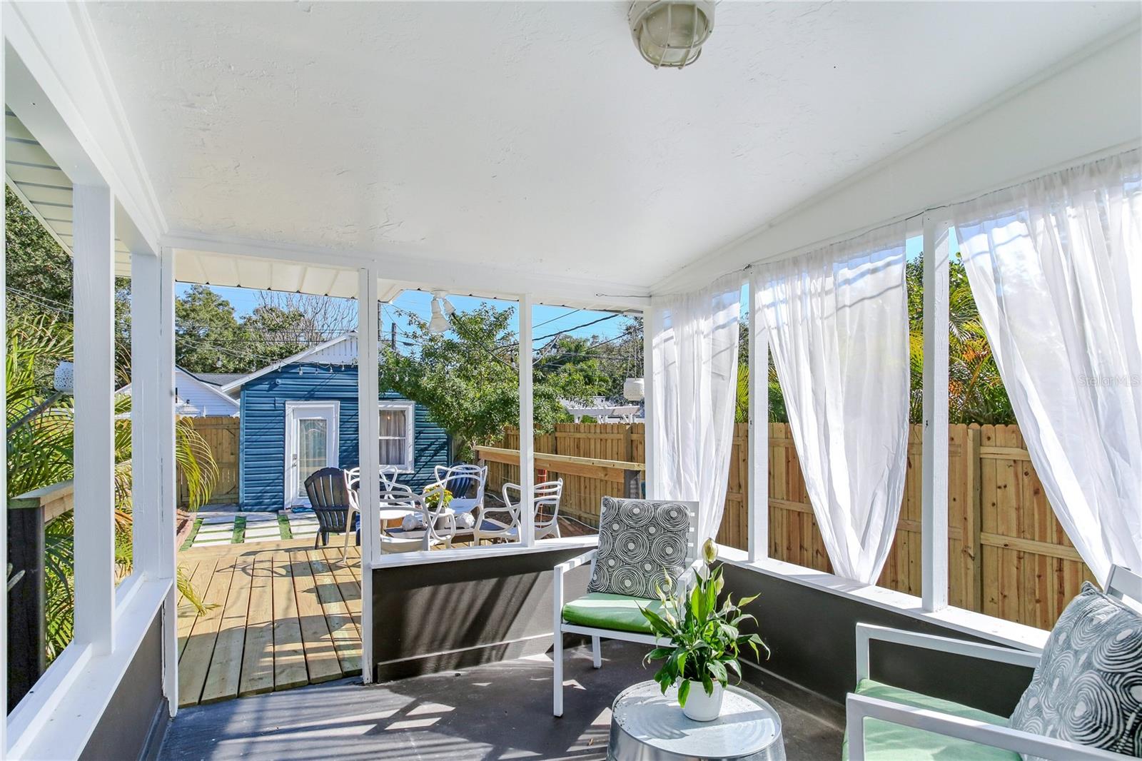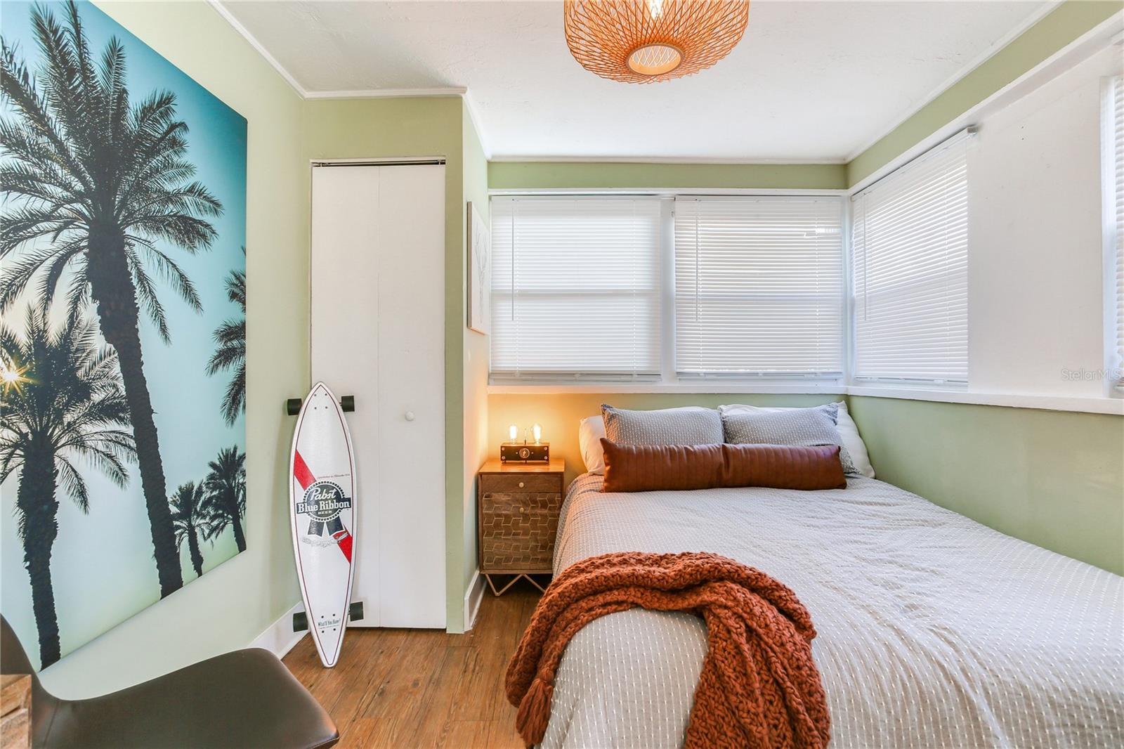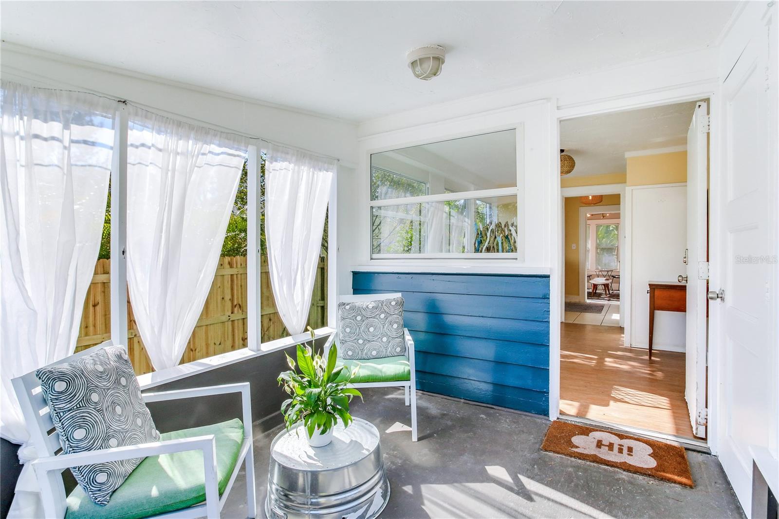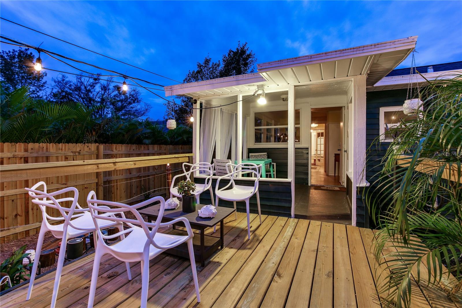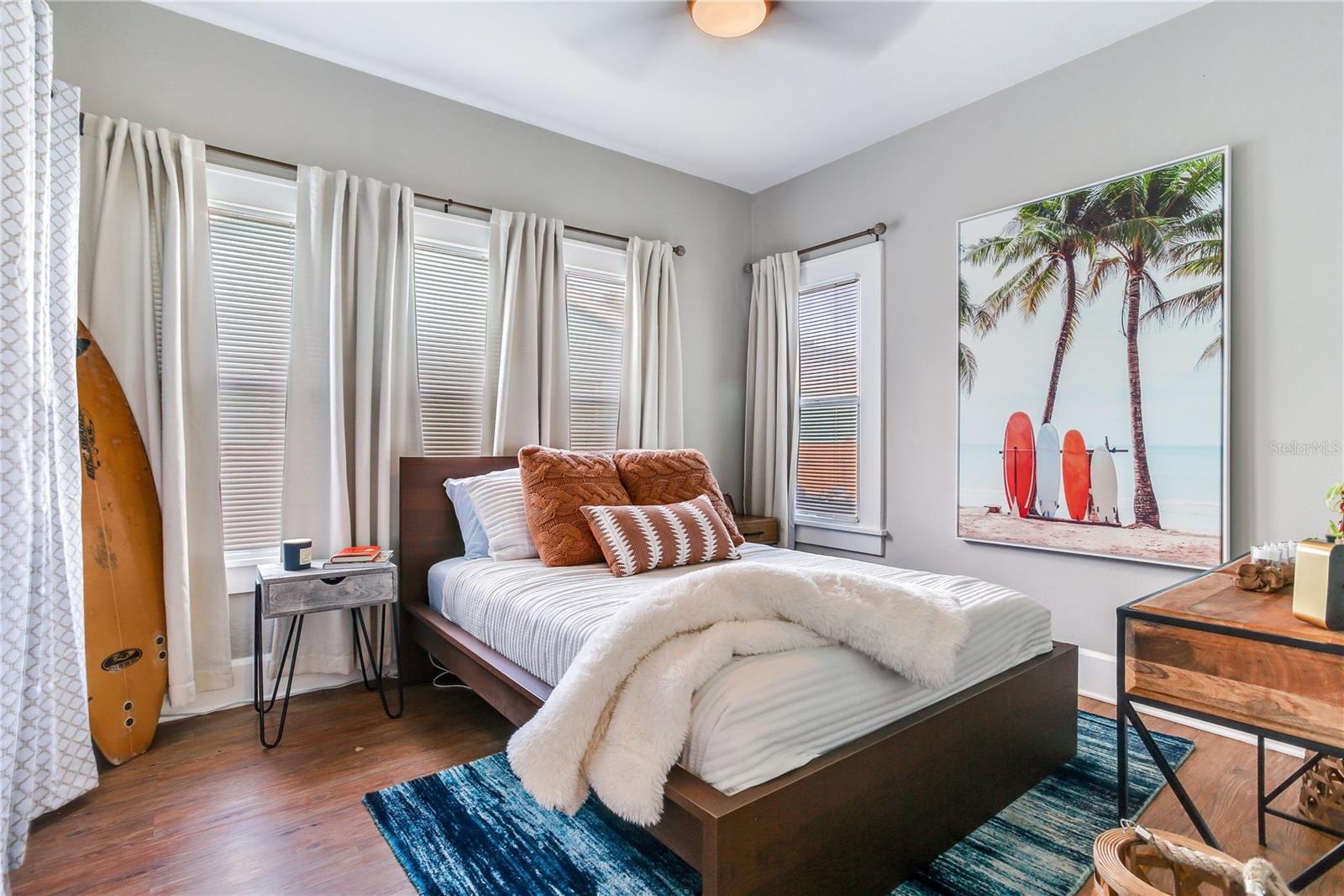 2 quartos 1,5 banheiro em casa! Estúdio com banheiro completo !! Localizado no bairro encantador, perto do centro da cidade. Petersburgo !! Este bangalô Kenwood bem conservado inclui dois quartos, banheiros um e meio, além de um estúdio independente com acomodações para dormir para quatro, um banheiro compacta e privado com chuveiro embutido. Formada por uma cerca de piquete ao redor do quintal da frente, uma cerca de privacidade circulando o quintal e um paisagismo exuberante e de baixa manutenção, essa habitação com tema de praia apresenta um esquema de cores de inspiração costeira, obras de arte mostrando cenas tropicais e pranchas de surf/pranchas revoluntes como mesa, decoração de parede e peças acentuadas. Passos de tijolos combinando com a cor externa da casa levam a uma varanda coberta destacada por colunas ornamentadas de metal. A entrada abre para a área principal, com pisos de madeira e lareira de tijolos. As portas francesas se abrem para a sala de bônus cheios de sol, uma cozinha completa, um recanto de jantar e área de lavanderia interna. As vistas da janela estão disponíveis em todos os quartos. O espaço interior total é de 937 pés quadrados, enquanto todo o lote abrange 5.624 pés quadrados. O convidativo quintal apresenta uma varanda coberta, um deck de ar ao ar livre e uma fogueira circular com espaço adicional, fornecendo o lugar perfeito para entreter, desfrutar do pôr do sol noturno e se reunir sob um céu cheio de estrelas. O bairro está listado no Registro Nacional de Lugares Históricos e é conhecido por suas árvores maduras, artesãos de bangalôs e como um distrito artístico diverso. Kenwood foi o primeiro subúrbio de St. Pete e seu primeiro bairro para os moradores durante todo o ano. A oeste do centro da cidade, a comunidade é conveniente para a vibrante cena gastronômica de St. Pete, cervejarias artesanais locais, museus excelentes, a orla brilhante do centro do distrito, praias próximas, centros de artes de apresentação e locais de concertos, além de Tropicana Field, casa da equipe de beisebol de Tampa Bay Rays. A localização central oferece fácil acesso a rodovias interestaduais, aeroportos internacionais, recreação ao ar livre, que variam de pesca em alto mar a instalações de golfe e tênis durante todo o ano e outras franquias de esportes profissionais de Tampa Bay Area, incluindo o time de futebol de Tampa Bay Buccaneers e o time de hóquei de Tampa Bay Lightning.