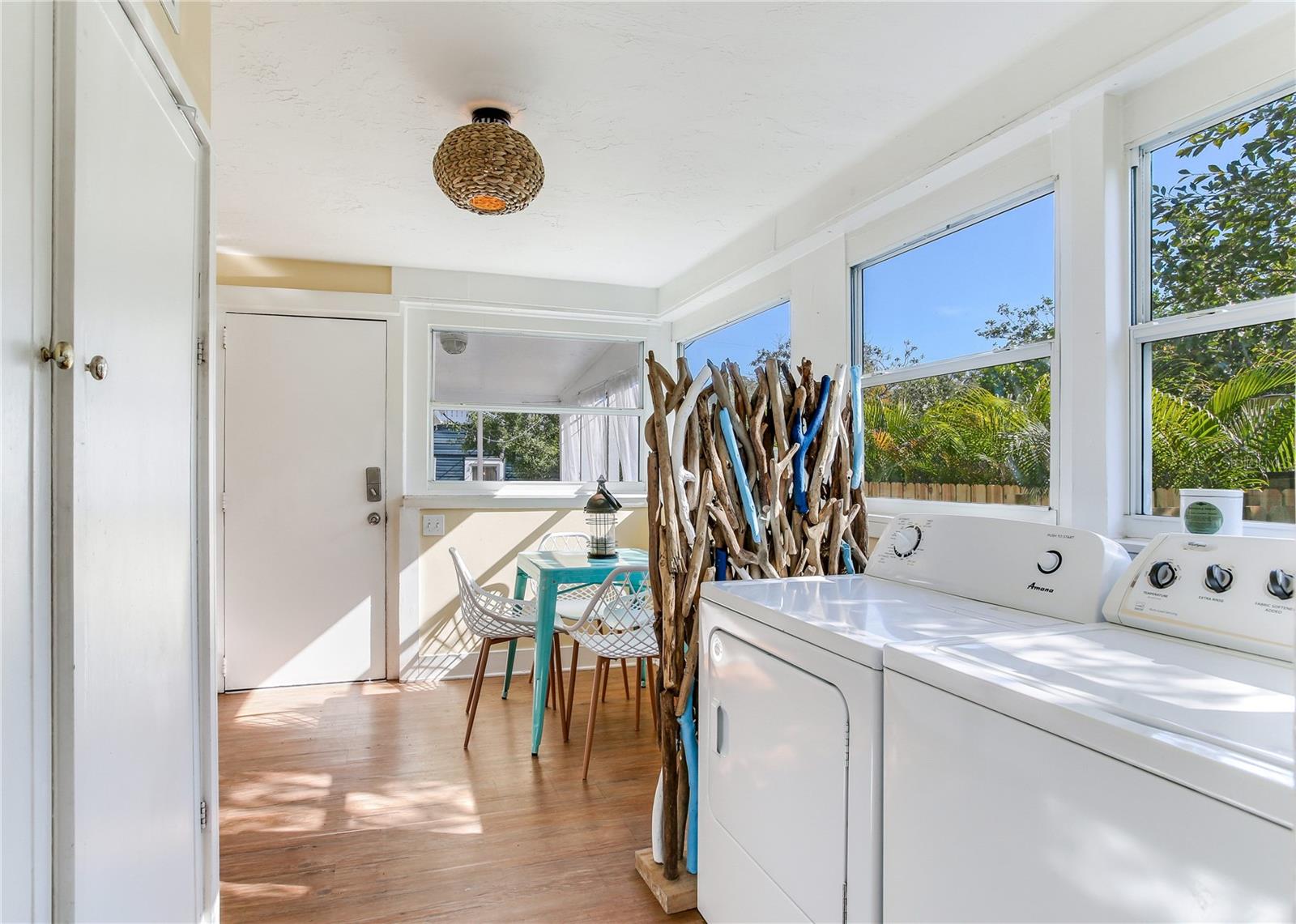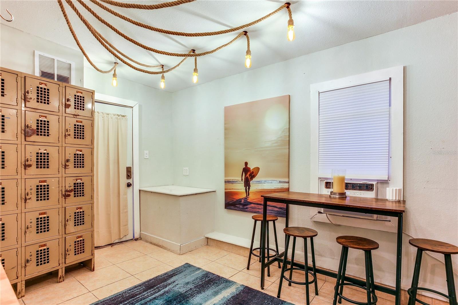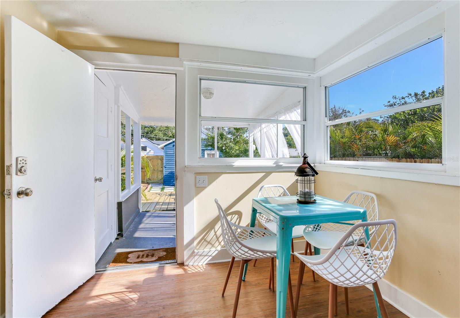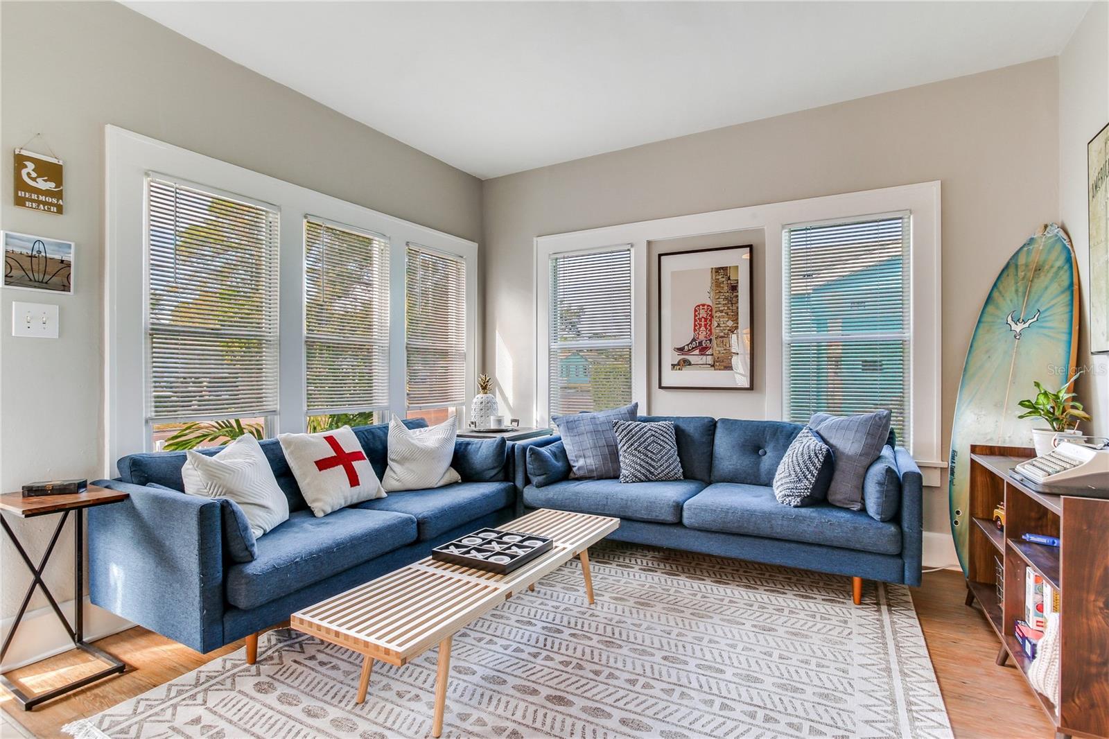 2 quartos 1,5 banheiro em casa! Estúdio com banheiro completo !! Localizado no bairro encantador, perto do centro da cidade. Petersburgo !! Este bangalô Kenwood bem conservado inclui dois quartos, banheiros um e meio, além de um estúdio independente com acomodações para dormir para quatro, um banheiro compacta e privado com chuveiro embutido. Formada por uma cerca de piquete ao redor do quintal da frente, uma cerca de privacidade circulando o quintal e um paisagismo exuberante e de baixa manutenção, essa habitação com tema de praia apresenta um esquema de cores de inspiração costeira, obras de arte mostrando cenas tropicais e pranchas de surf/pranchas revoluntes como mesa, decoração de parede e peças acentuadas. Passos de tijolos combinando com a cor externa da casa levam a uma varanda coberta destacada por colunas ornamentadas de metal. A entrada abre para a área principal, com pisos de madeira e lareira de tijolos. As portas francesas se abrem para a sala de bônus cheios de sol, uma cozinha completa, um recanto de jantar e área de lavanderia interna. As vistas da janela estão disponíveis em todos os quartos. O espaço interior total é de 937 pés quadrados, enquanto todo o lote abrange 5.624 pés quadrados. O convidativo quintal apresenta uma varanda coberta, um deck de ar ao ar livre e uma fogueira circular com espaço adicional, fornecendo o lugar perfeito para entreter, desfrutar do pôr do sol noturno e se reunir sob um céu cheio de estrelas. O bairro está listado no Registro Nacional de Lugares Históricos e é conhecido por suas árvores maduras, artesãos de bangalôs e como um distrito artístico diverso. Kenwood foi o primeiro subúrbio de St. Pete e seu primeiro bairro para os moradores durante todo o ano. A oeste do centro da cidade, a comunidade é conveniente para a vibrante cena gastronômica de St. Pete, cervejarias artesanais locais, museus excelentes, a orla brilhante do centro do distrito, praias próximas, centros de artes de apresentação e locais de concertos, além de Tropicana Field, casa da equipe de beisebol de Tampa Bay Rays. A localização central oferece fácil acesso a rodovias interestaduais, aeroportos internacionais, recreação ao ar livre, que variam de pesca em alto mar a instalações de golfe e tênis durante todo o ano e outras franquias de esportes profissionais de Tampa Bay Area, incluindo o time de futebol de Tampa Bay Buccaneers e o time de hóquei de Tampa Bay Lightning.