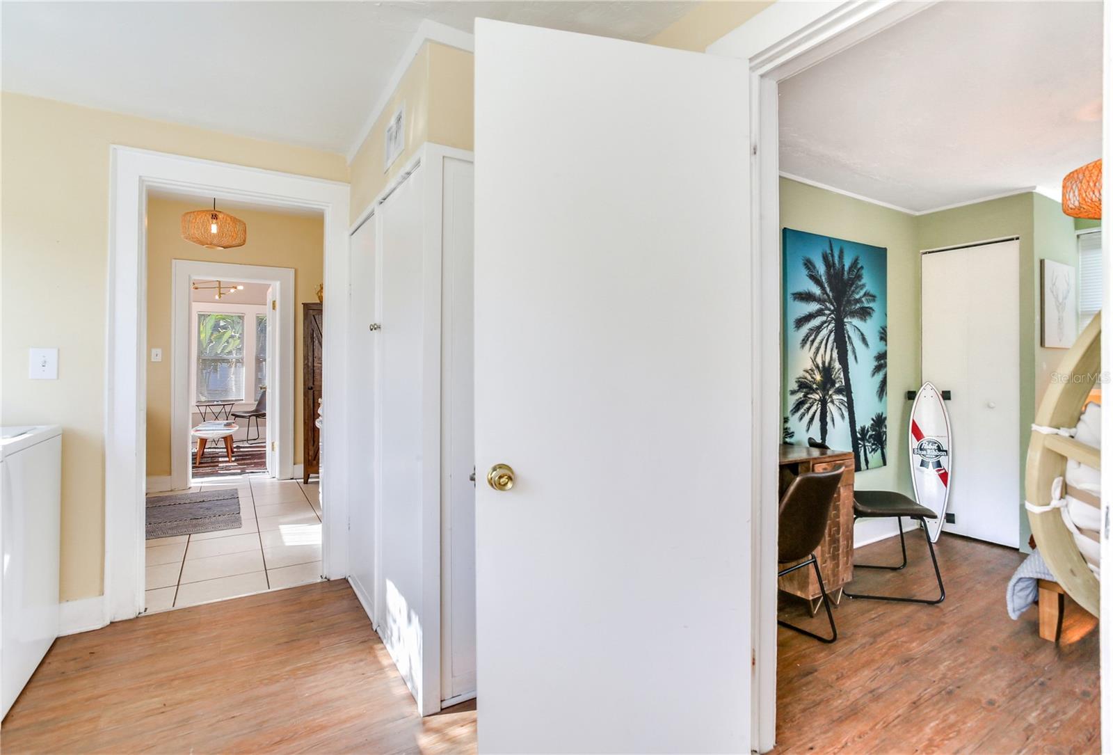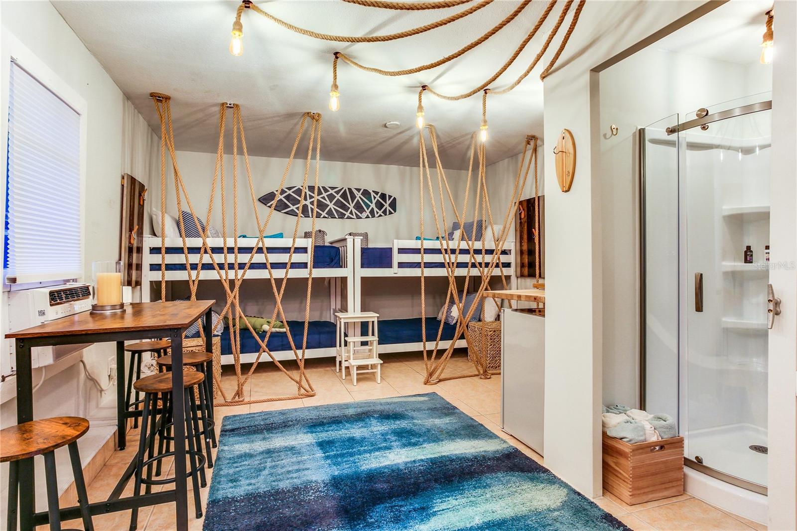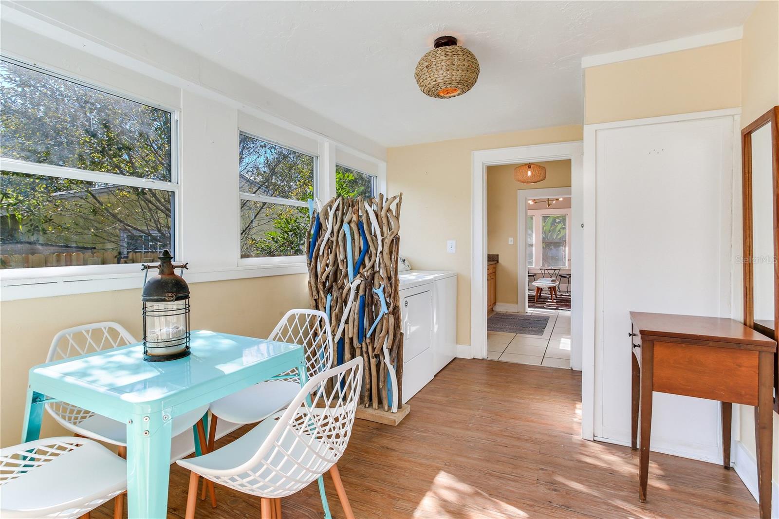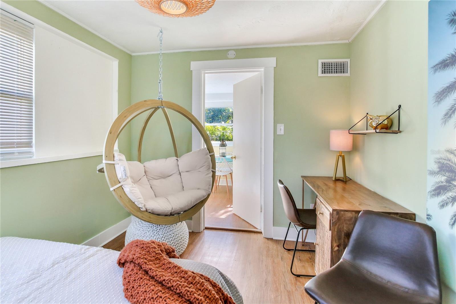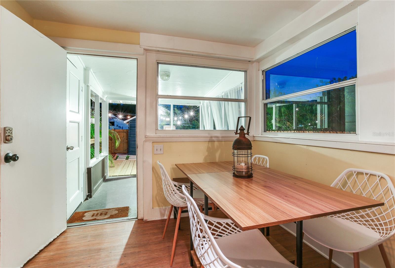 2 quartos 1,5 banheiro em casa! Estúdio com banheiro completo !! Localizado no bairro encantador, perto do centro da cidade. Petersburgo !! Este bangalô Kenwood bem conservado inclui dois quartos, banheiros um e meio, além de um estúdio independente com acomodações para dormir para quatro, um banheiro compacta e privado com chuveiro embutido. Formada por uma cerca de piquete ao redor do quintal da frente, uma cerca de privacidade circulando o quintal e um paisagismo exuberante e de baixa manutenção, essa habitação com tema de praia apresenta um esquema de cores de inspiração costeira, obras de arte mostrando cenas tropicais e pranchas de surf/pranchas revoluntes como mesa, decoração de parede e peças acentuadas. Passos de tijolos combinando com a cor externa da casa levam a uma varanda coberta destacada por colunas ornamentadas de metal. A entrada abre para a área principal, com pisos de madeira e lareira de tijolos. As portas francesas se abrem para a sala de bônus cheios de sol, uma cozinha completa, um recanto de jantar e área de lavanderia interna. As vistas da janela estão disponíveis em todos os quartos. O espaço interior total é de 937 pés quadrados, enquanto todo o lote abrange 5.624 pés quadrados. O convidativo quintal apresenta uma varanda coberta, um deck de ar ao ar livre e uma fogueira circular com espaço adicional, fornecendo o lugar perfeito para entreter, desfrutar do pôr do sol noturno e se reunir sob um céu cheio de estrelas. O bairro está listado no Registro Nacional de Lugares Históricos e é conhecido por suas árvores maduras, artesãos de bangalôs e como um distrito artístico diverso. Kenwood foi o primeiro subúrbio de St. Pete e seu primeiro bairro para os moradores durante todo o ano. A oeste do centro da cidade, a comunidade é conveniente para a vibrante cena gastronômica de St. Pete, cervejarias artesanais locais, museus excelentes, a orla brilhante do centro do distrito, praias próximas, centros de artes de apresentação e locais de concertos, além de Tropicana Field, casa da equipe de beisebol de Tampa Bay Rays. A localização central oferece fácil acesso a rodovias interestaduais, aeroportos internacionais, recreação ao ar livre, que variam de pesca em alto mar a instalações de golfe e tênis durante todo o ano e outras franquias de esportes profissionais de Tampa Bay Area, incluindo o time de futebol de Tampa Bay Buccaneers e o time de hóquei de Tampa Bay Lightning.