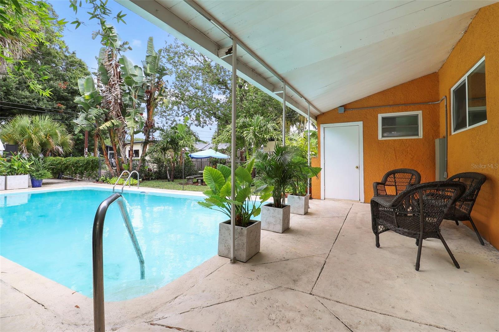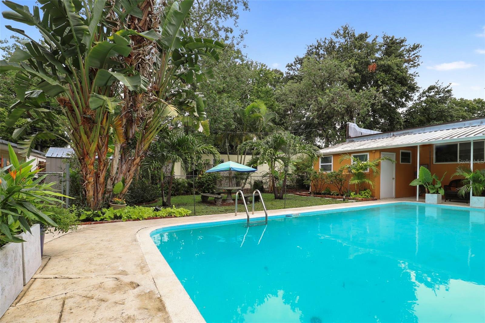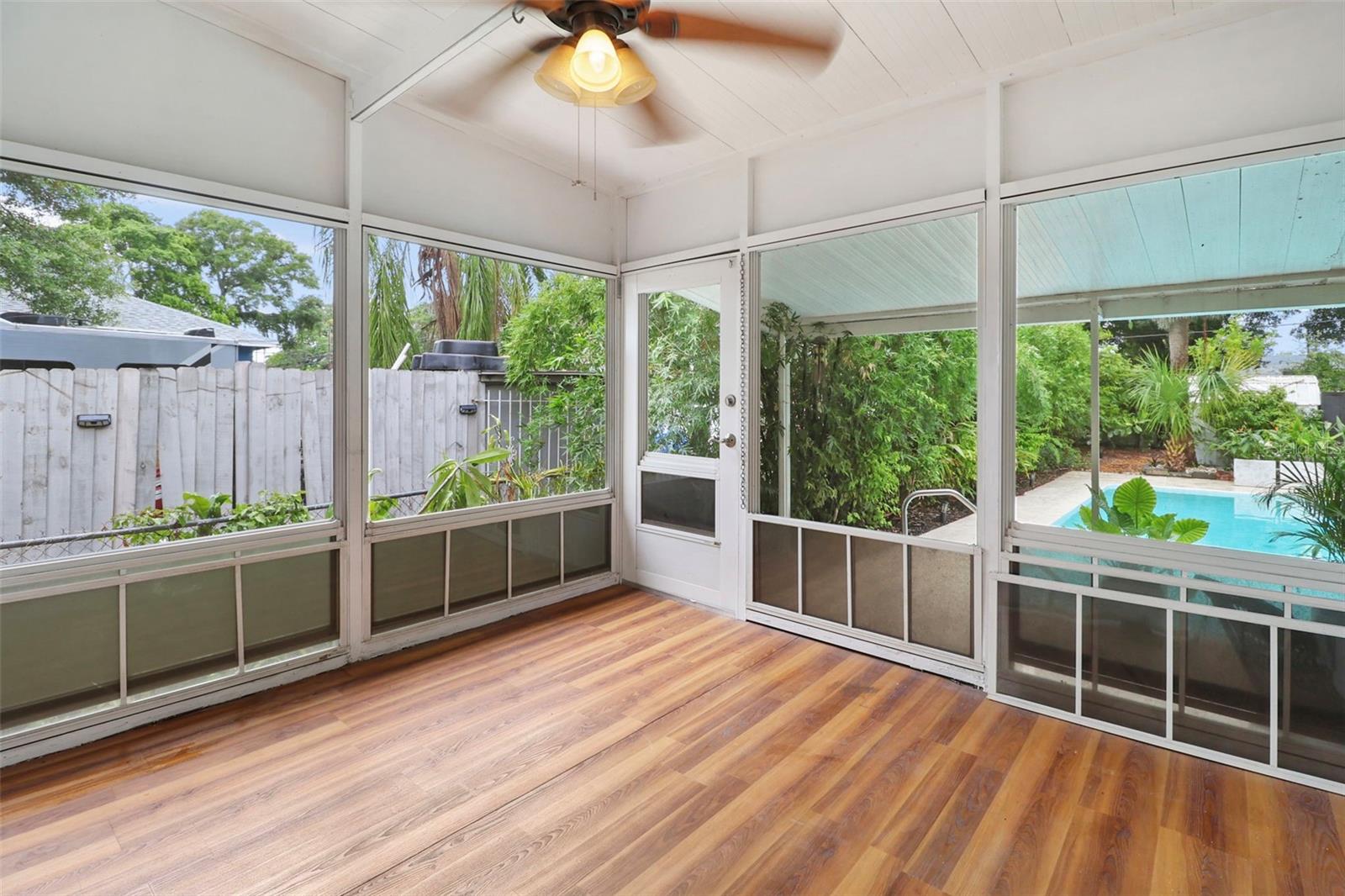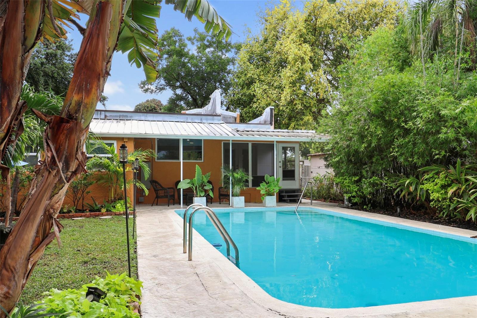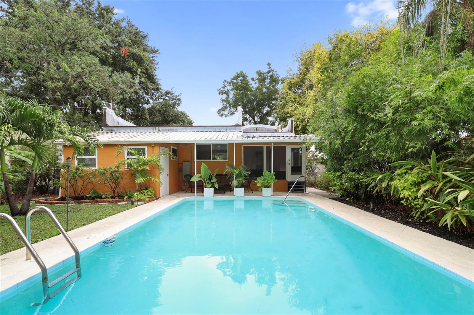 Casa de estilo espanhol histórico de bangalô recém -remodelado. Nova cozinha instalada em 2024. Todos os novos aparelhos atualizados, lava-louças, forno de parede de convenção embutido e microondas, top de fogão de indução, geladeira de monitor interativo, ventilação do capô, pia da fazenda com torneira personalizada com balcões de quartzo. Os tetos abobadados fornecem uma queda espaçosa aberta e aumentam a planta de piso de layout aberta. Todos os novos pisos de vinil de luxo adicionaram em toda a casa. Novas portas francesas foram adicionadas para abrir a vida na Lanai, com vista para o impressionante quintal e piscina. Ar condicionado 2018, aquecedor de água 2022, teto selado 2021. Há acesso ao beco com propriedade traseira para estacionamento fora da rua. Esta casa é ajeita e pronta para você apreciar este oásis tropical.