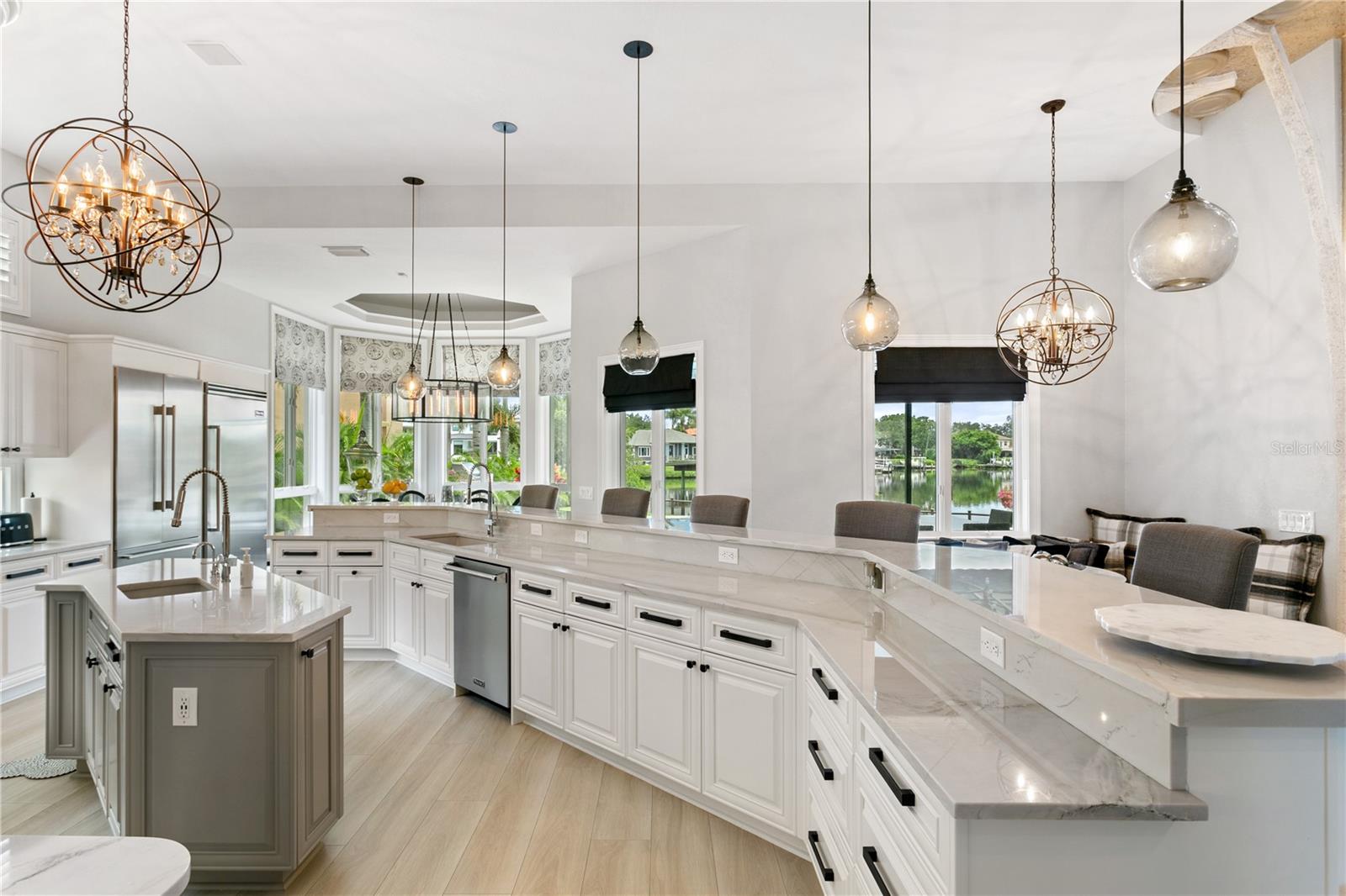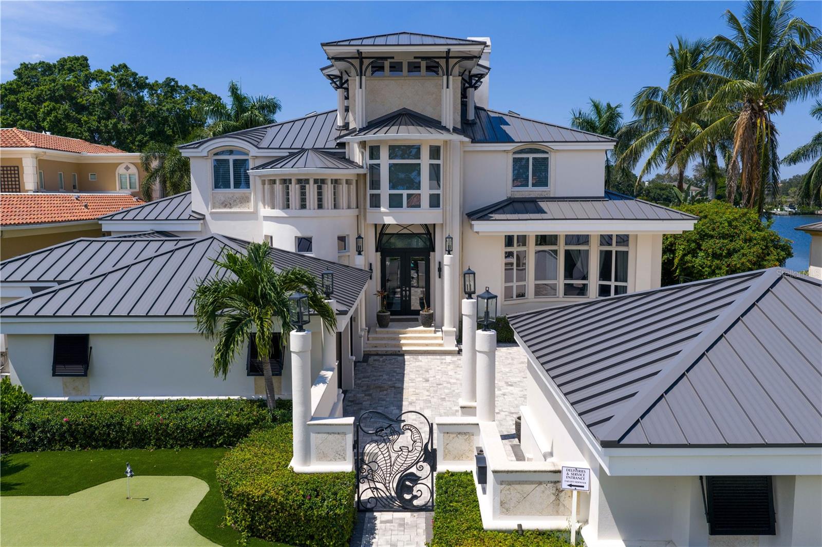 Bem-vindo a esta propriedade requintada em Coffee Pot Riviera, um terreno de meio acre em uma enseada protegida da Baía de Tampa. Imediatamente você é atraído pelos portões de ferro forjado inspirados nas videiras, causando uma primeira impressão impressionante na entrada da propriedade. O estilo geral da casa reúne elementos arquitetônicos únicos de design orgânico inspirado na natureza. Uma grande entrada de cair o queixo combina um requisito de estrutura funcional com um design artístico criativo de colunas que se assemelham à forma e textura naturais das árvores, permitindo que este espaço aberto de três andares se integre perfeitamente com a paisagem à beira-mar. O teto macho e fêmea deste espaço lembra o casco de um barco, o que realça a sensação espaçosa e arejada da casa, como a sensação de estar em um iate de luxo. Reunindo tudo isso, cria-se uma magnífica parede de janelas de três andares que inunda a casa com luz natural, oferecendo vistas para a água e criando uma conexão perfeita entre os espaços internos e externos. É simplesmente deslumbrante! Em seguida, você é atraído para a ampla área externa que foi cuidadosamente projetada para fornecer a sombra necessária e um espaço confortável e coberto que se conecta lindamente ao quintal extra grande, à grande piscina infinita e à orla. Uma casa de barco antiga oferece um recurso raro e valioso para proteger sua embarcação. Tudo foi atualizado e aprimorado pelos atuais proprietários com a adição de novos pisos, banheiros e cozinha atualizados, telhado de metal totalmente novo e TODAS (três) novas unidades de AC. Um bônus adicional é o quarto principal localizado no primeiro andar, bem como outro cômodo bônus que pode ser usado como quarto com banheiro completo, sala de mídia ou escritório. Os outros quartos de hóspedes ficam todos no segundo andar. Uma garagem para quatro carros (dois foram convertidos em academia) oferece flexibilidade para carros extras ou espaço para exercícios. Este design sofisticado combinado com a paisagem tropical da Flórida proporcionará uma experiência de vida luxuosa e confortável no coração da fabulosa St Pete! Sem inundações. Pronto para ocupação imediata. Pode ser vendido mobiliado. Todos os móveis novos da Restoration Hardware, Arhaus e Timothy Oulton.