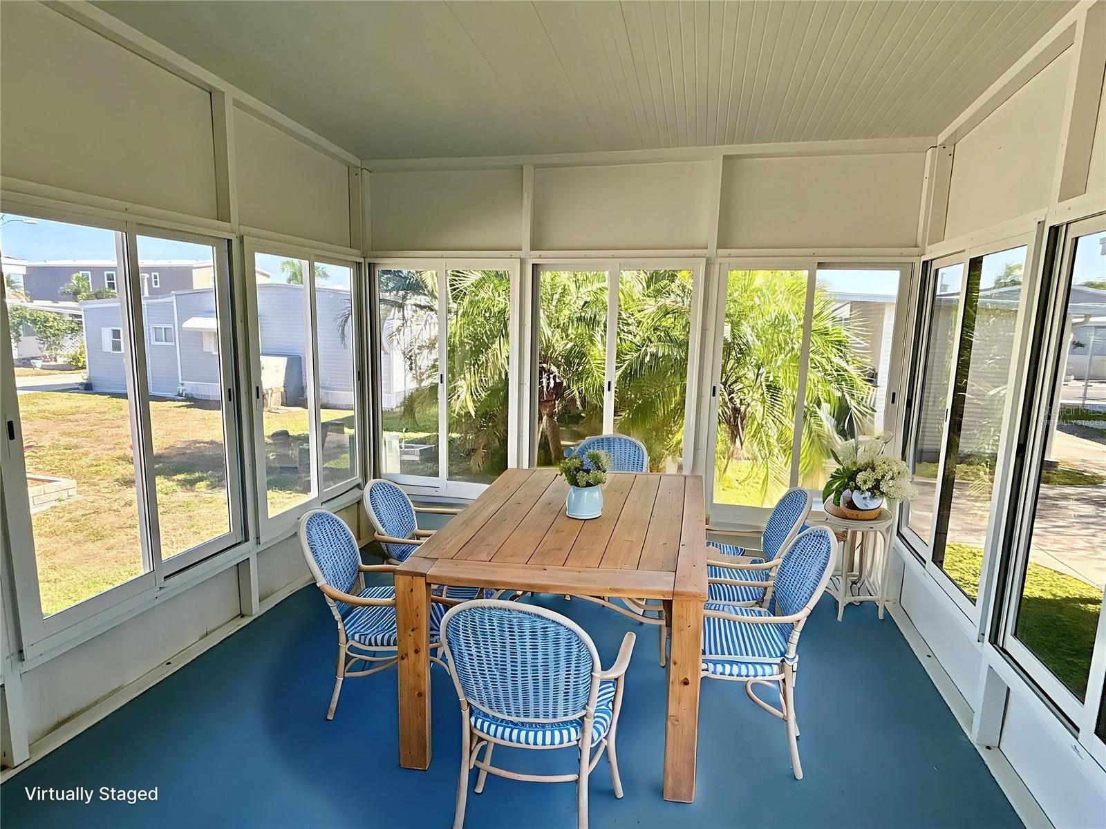 Uma ou mais fotos foram virtualmente encenadas. Construído em 2006, alto e seco, este 2 quartos / 2 banheiros + sala com 1.512 pés quadrados de área útil, tem tudo que você precisa e oferece muitas oportunidades para torná-lo seu. Todas as divisões têm janelas Horizon, proporcionando muita luz natural. Há uma área de jantar formal adjacente à grande sala familiar, além de uma área de refeições na cozinha. A cozinha tem armários altos e atraentes e muitos deles. As bancadas em corian, os eletrodomésticos LG em aço inoxidável, incluindo geladeira de porta dupla, micro-ondas, lava-louças e fogão tornam o cozimento e a limpeza muito fáceis. A lavadora e a secadora ficam dentro do armário da lavanderia, ao lado da cozinha. Há uma varanda com janelas de vinil rígido que proporcionam uma entrada adicional para a casa e um ótimo espaço para relaxar e aproveitar o ar livre. O quarto principal tem banheiro privativo com pias duplas e chuveiro grande. O banheiro de hóspedes tem uma banheira com chuveiro. Ambas as casas de banho têm claraboias e azulejos cerâmicos. O galpão 10 x 11 tem espaço para bancada e muitas estantes. A garagem pode acomodar facilmente 2 carros e um carrinho de golfe. Telhado (2022), AC (2023), Nenhum dano causado pelas tempestades do ano passado. A casa está localizada em Americana Cove, um condomínio fechado, com mais de 55 anos, que aceita animais de estimação e à beira-mar. Localizado a 10 minutos do centro de St Pete, a 20 minutos de 2 aeroportos, a 25 minutos das praias. O HOA baixo $ 380 inclui água, esgoto, coleta de lixo, corte / corte de grama, piscina aquecida, sala de ginástica, bocha, shuffleboard, 2 rampas para barcos e lançamento de caiaque, além de vários clubes e atividades. O preço inclui participação no lote e propriedade na cooperativa. Este pode ser o ÚNICO!