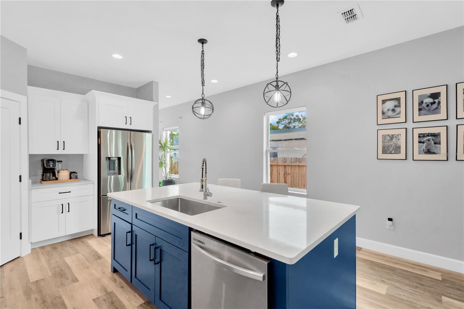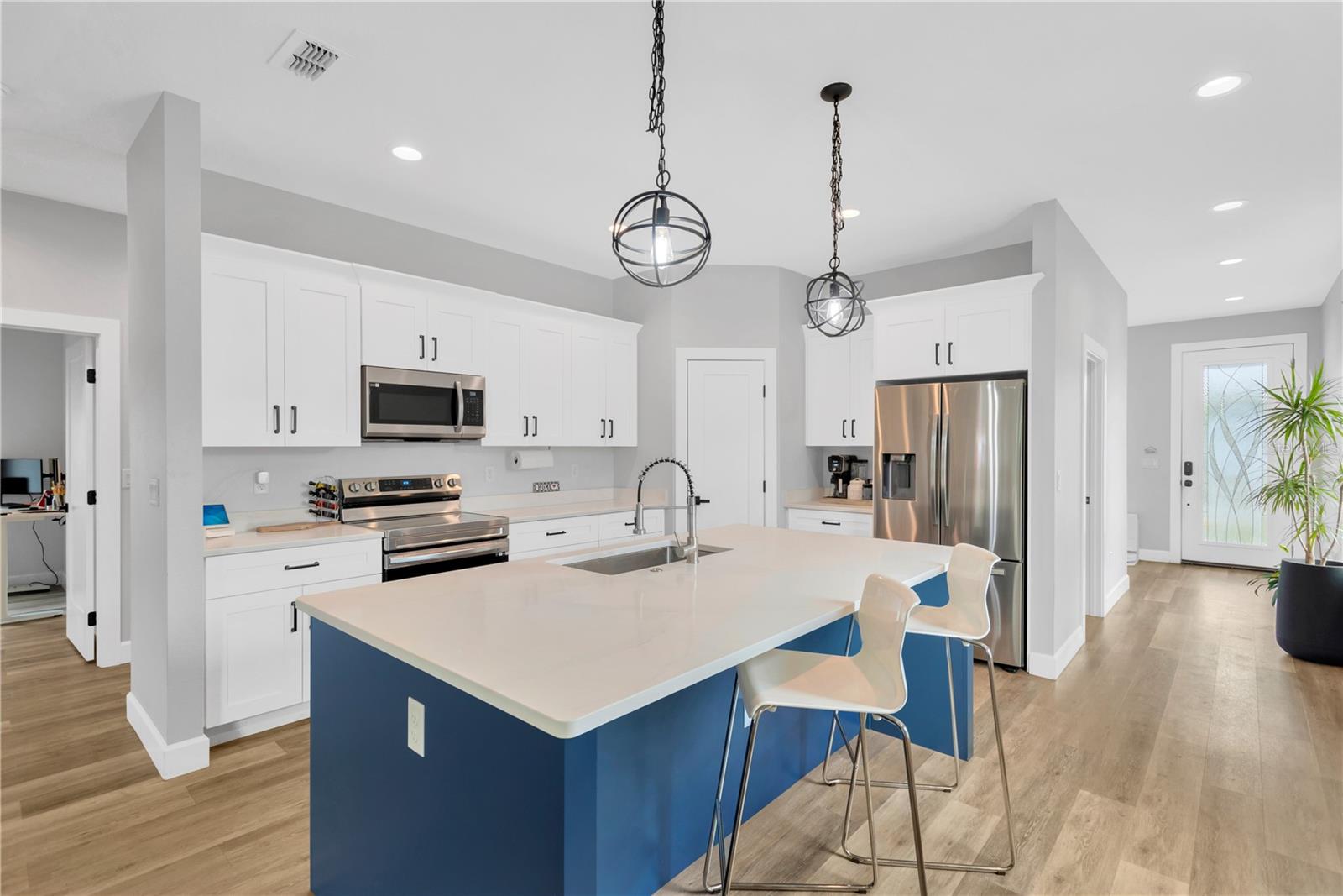 Bem-vindo a esta bela casa nova numa excelente localização em St Pete, a menos de 15 minutos da Praia da Madeira. SEM zona de inundação. A incrível apelação do meio-fio atrai você! Passe pela bela porta azul marinho de 8 pés até o hall de entrada, onde você é recebido por uma abundância de luz natural através de amplas janelas resistentes a impactos (classificadas para ventos de furacão) iluminando as áreas de estar de conceito aberto com tetos de 9'4"! A iluminação LED embutida em toda a casa mantém a conta de luz baixa e ilumina o piso de pranchas de vinil de luxo em vários tons e de alto tráfego. O ponto focal desta casa é definitivamente a cozinha, meticulosamente projetada com molduras de armários. armários shaker que apresentam hardware moderno e dobradiças de fechamento suave para evitar batidas, novo pacote de eletrodomésticos premium em aço inoxidável Samsung totalmente elétrico, despensa de canto espaçosa, bancadas elegantes de quartzo e uma GRANDE ilha central para compartilhar com amigos e familiares A cozinha. flui perfeitamente para a área de jantar e sala de estar, maximizando o design de layout aberto, levando para a parte de trás da casa, onde você pode ver seu grande quintal através das portas de vidro deslizantes. Retire-se para a serena Suíte Master, que tem uma grande janela voltada para frente. a oeste, em seu novo e espaçoso deck no quintal, com uma moderna cobertura de pérgula, churrasqueira e jacuzzi, proporcionando uma iluminação romântica do pôr do sol! A PORTA DO CELEIRO leva à sua suíte dos sonhos com mais Quartzo em cima da pia dupla, um closet muito grande e um chuveiro deslumbrante fechado por vidro com instalação de azulejos de alta qualidade até o teto! Seus convidados vão adorar seu banheiro bacana com luminárias modernas e azulejos de metrô elegantes que também vão até o teto. Os dois quartos de hóspedes são de ótimo tamanho, adequados para crianças e adultos. Lave a sua roupa de forma eficaz na lavandaria privada, equipada com lavatório para simplificar as suas tarefas. De manhã, abra as portas de vidro deslizantes da sua varanda traseira para tomar uma xícara de café para começar o dia. Comprar uma nova construção significa obter prêmios de seguro baixos e eficiência energética maximizada. Casas como esta são raras nesta área!