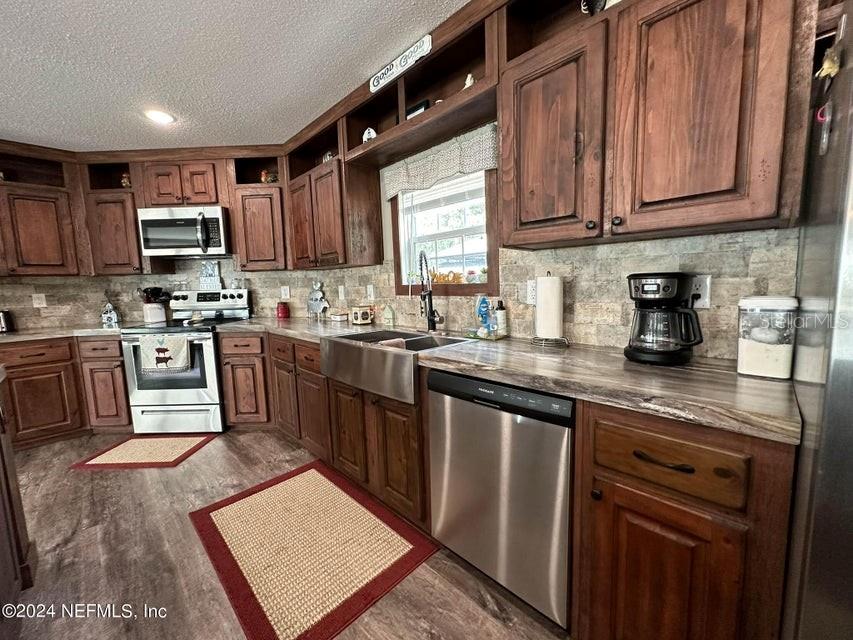 Situada ao longo do sereno rio Sampson, esta espaçosa casa pré-fabricada de 1.980 pés quadrados oferece 3 quartos e 2 banheiros e uma área de conceito aberto para entreter amigos e familiares. O coração da casa é a cozinha, com uma ilha central, amplos armários, uma enorme despensa e uma área de jantar adjacente. O quarto do proprietário tem um closet espaçoso, pia dupla no banheiro do proprietário que inclui banheira de imersão e chuveiro separado. A lavanderia ao lado da cozinha vem completa com pia, agregando comodidade ao seu dia a dia. Situada em aproximadamente 1,5 acres, esta propriedade inclui 2 lotes e oferece acesso direto ao Lago Sampson a partir do seu próprio quintal. O Lago Sampson é o maior de uma cadeia de três lagos, incluindo Rowell e Crosby. Conhecida pela abundante pesca e atividades recreativas e diversão ao ar livre. O quintal possui um mirante, um ótimo local para desfrutar do refúgio natural com árvores maduras que oferecem sombra e privacidade, criando um ambiente tranquilo para desfrutar da vida selvagem que por ali passa frequentemente. Localizada a uma curta distância de Gainesville e Jacksonville, esta propriedade é um retiro tranquilo que equilibra o charme rural com acessibilidade. Venha experimentar a beleza e a serenidade desta casa e deixe-a transformar a sua forma de viver.