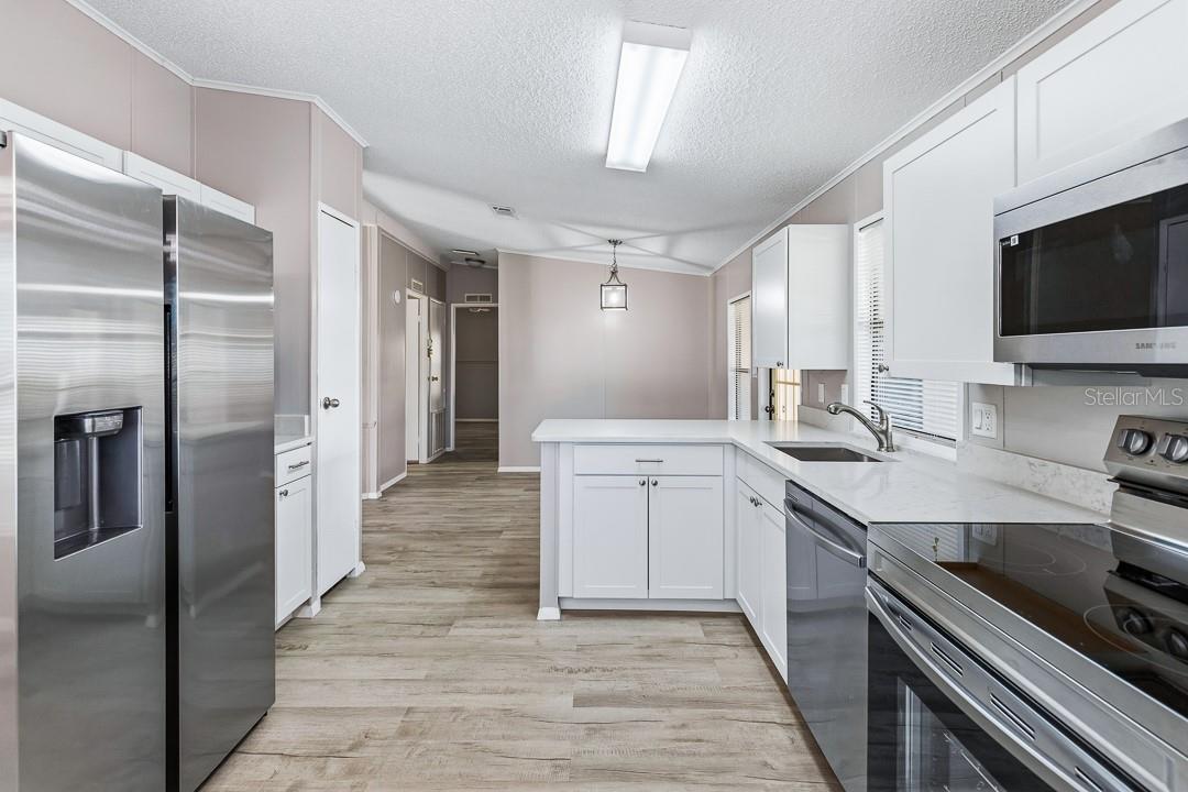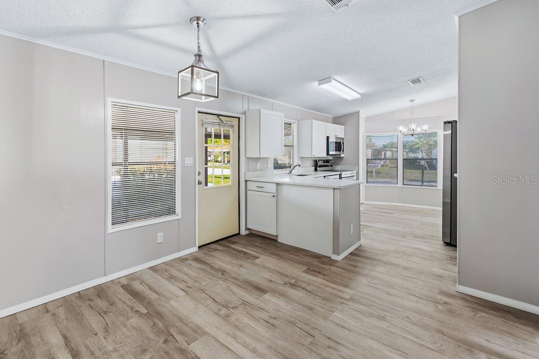 Esta casa pré-fabricada recentemente remodelada está localizada na desejável comunidade de St Lucie Falls 55+, onde VOCÊ É O PROPRIETÁRIO DO TERRENO. A largura dupla de 2 quartos e 2 banheiros apresenta TODOS OS NOVOS telhados de telha arquitetônica, pisos laminados resistentes a arranhões e água, bancadas de quartzo, armários de cozinha novos, pias de banheiro atualizadas, interior e exterior recém-pintados, ventiladores de teto modernos e luminárias, eletrodomésticos Samsung e inúmeras atualizações ocultas. Ao entrar, você apreciará imediatamente a cozinha em estilo galera que se conecta perfeitamente com a sala de estar e a área de jantar. O espaçoso quarto principal inclui banheiro privativo. Comece suas manhãs com uma xícara de café na varanda fechada, que leva a um QUINTAL TOTALMENTE CERCADO, perfeito para animais de estimação e inclui várias árvores frutíferas maduras. O galpão/oficina externo contém uma lavanderia com uma lavadora e secadora mais nova, uma grande pia e uma estação dobrável de bancada de quartzo. St Lucie Falls oferece uma variedade de comodidades, incluindo duas piscinas aquecidas, dois clubhouses, uma sala de ginástica, instalações para banquetes, biblioteca, shuffleboard, bocha, tênis, quadras de pickleball e estacionamento opcional fora do local para trailers/barcos/caminhões por uma taxa adicional. A comunidade está convenientemente localizada perto da I-95 para facilitar a viagem ao sul de Miami ou ao norte de Orlando, e a apenas 30 minutos de carro das belas praias do sudeste da Flórida. Tudo isso com baixas taxas de HOA. Esta casa é imperdível!