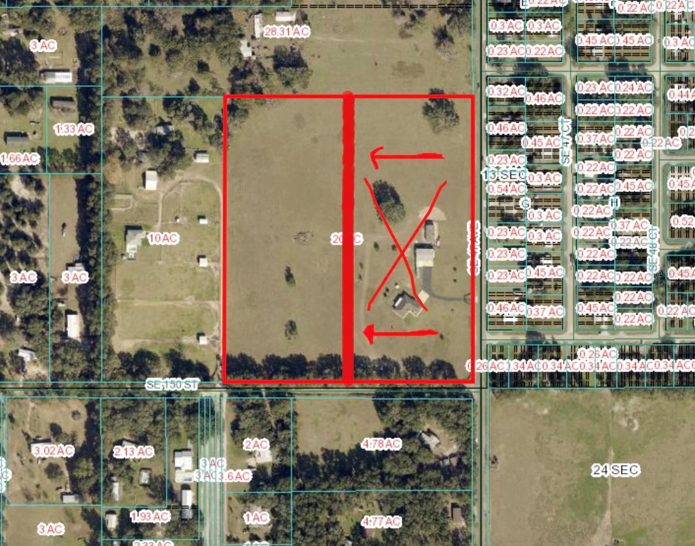 APENAS Trato B: Uma porção da SE 1/4 da SE 1/4 da Seção 14, Township 17 South Range 2 East, Marion County, Flórida