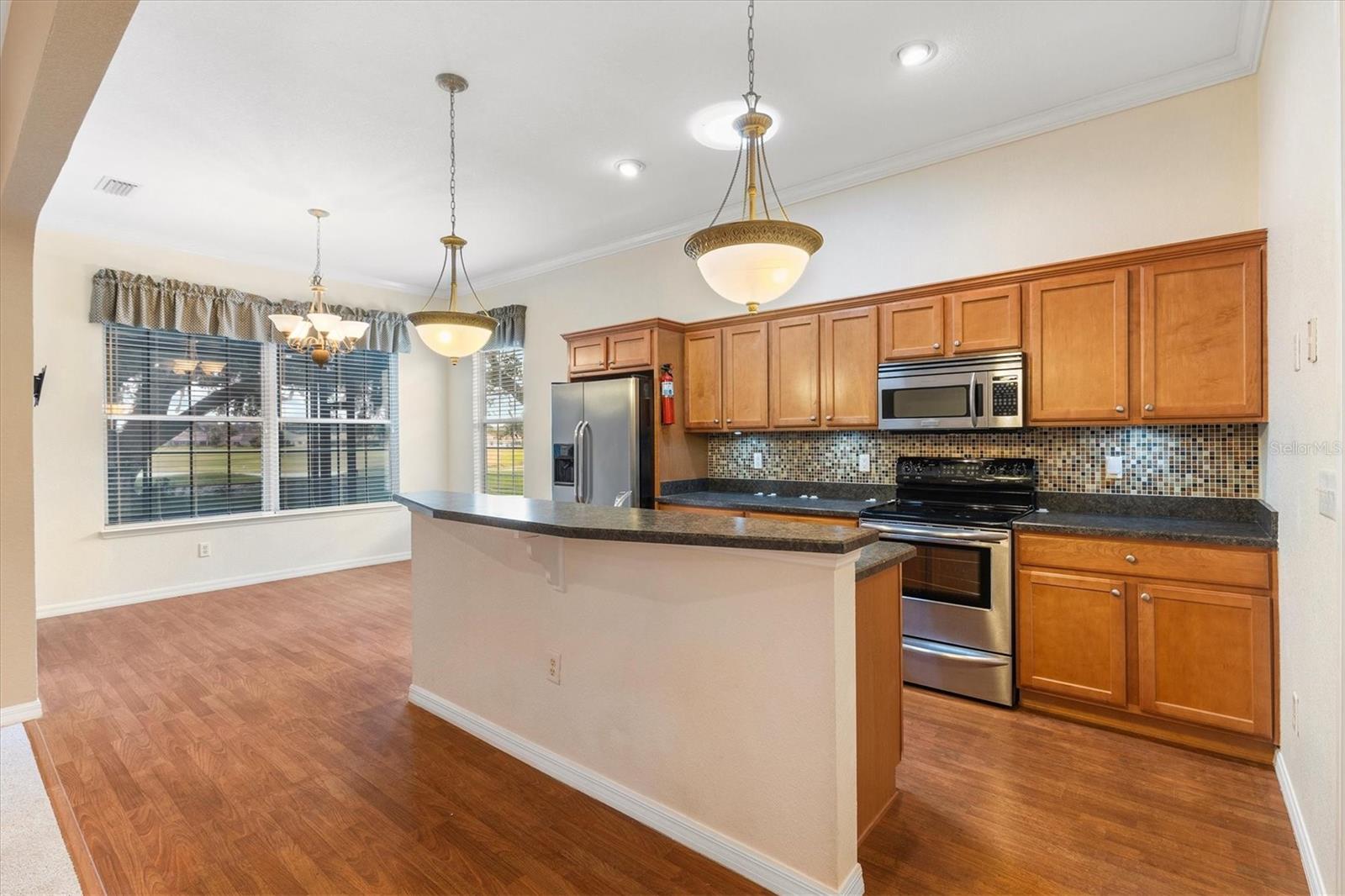 Esta adorável casa de designer 3/2 Dogwood ampliada no procurado Stonecrest Gated Community apresenta uma porta frontal de vidro com chumbo, painel lateral e janela de popa, sala de jantar formal acarpetada, espaçosa sala de estar acarpetada e um quarto Florida com acesso a uma gaiola com vista para o campo de golfe e os carvalhos do avô. Comer na cozinha aberta possui uma ilha com balcão para café da manhã, eletrodomésticos de aço inoxidável, prateleiras removíveis, backsplash de azulejos, despensa e bancadas de alta definição. Tanto a cozinha quanto a sala Florida possuem piso laminado de madeira. O quarto principal tem banheiro privativo com pia dupla, bancada de 42" de altura, armário de roupa de cama, box com bancada embutida e vaso sanitário privativo. O grande closet personalizado é acessado pelo banheiro. Os 2 quartos de hóspedes possuem armários personalizados e compartilham um banheiro de hóspedes com combinação de banheira e chuveiro. A lavanderia interna é finalizada com balcões, armários e pia de barro. A garagem de acesso lateral para 2 carros com espaço para seu carrinho de golfe possui bancada de trabalho, armários extras, armário. , prateleiras altas de armazenamento e janelas para luz extra As características adicionais desta casa elegante incluem uma porta frontal de vidro temperado, ventiladores de teto com controle remoto e luzes, recanto no corredor do quarto, armário extra grande, kit de escada no sótão, tetos extra altos com sancas, tubo solar na cozinha e banheiro principal. Esta casa tem um ambiente aconchegante e aconchegante, perfeito para entreter e proporcionar um retiro tranquilo após um dia agitado de atividades em Stonecrest. A Comunidade Stonecrest possui 4 piscinas, campo de golfe, academia, tênis, bocha. e pickleball, Dog Park, Cheers Country Club Restaurant e muito mais, incluindo 75 clubes e atividades diferentes para atender às necessidades de todos. Nesta comunidade amigável para carrinhos de golfe, você pode fazer compras no Walmart, BJ's Wholesale Club, visitar seu médico, ir a um restaurante ou visitar amigos. Fácil acesso pelo seu carrinho de golfe ao The Villages e à Spanish Springs Town Square para jantar e fazer compras. A lista é interminável! Não deixe de assistir ao nosso vídeo desta linda casa e marque sua visita hoje mesmo.