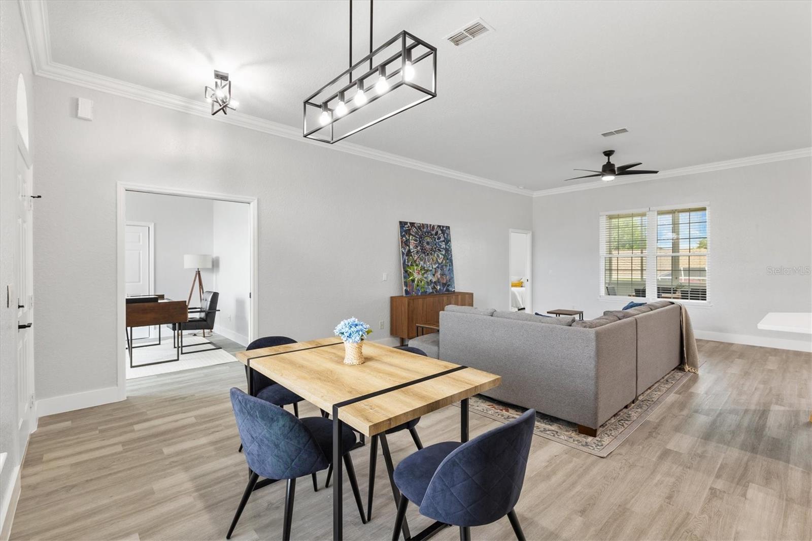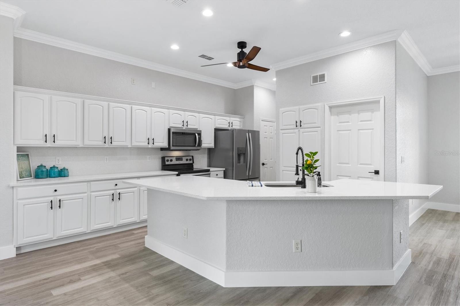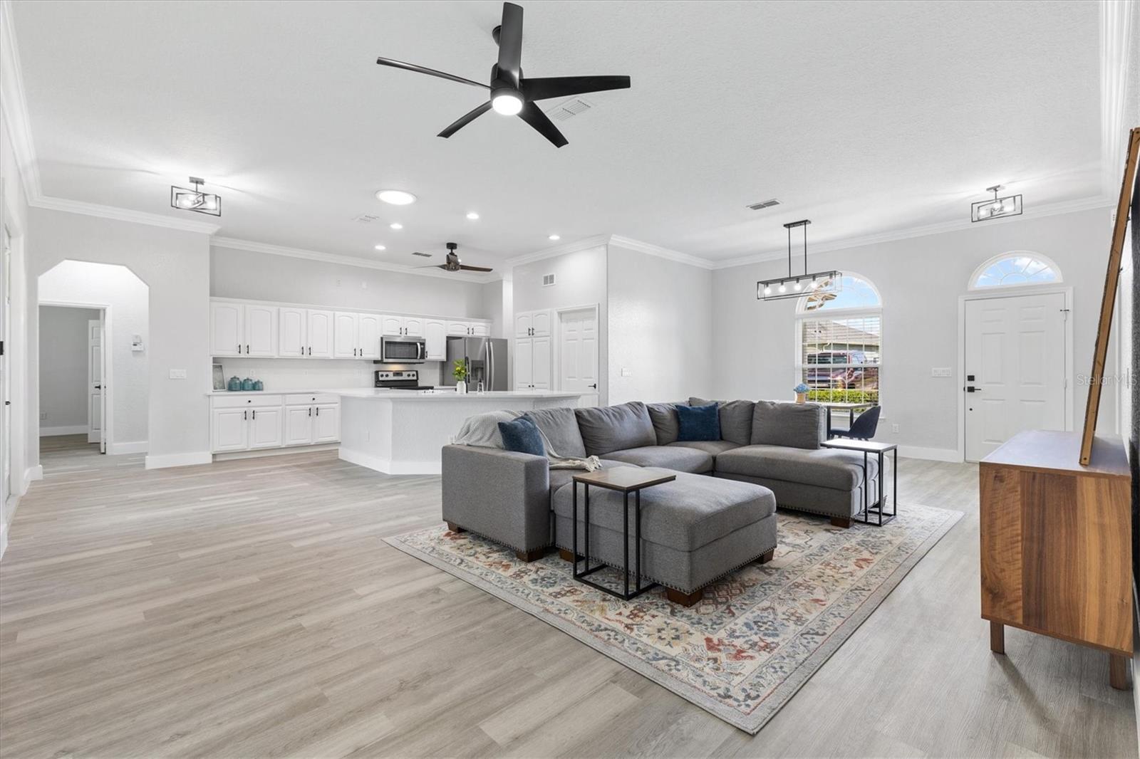 Uma ou mais fotos foram virtualmente encenadas. Esta deslumbrante casa de planta baixa de Cedar, construída em 2002, foi COMPLETAMENTE REMODELADA e está localizada nos arredores de The Villages, em uma comunidade verdadeiramente FECHADA em estilo resort. As fotos não fazem justiça a esta casa – parece ainda melhor pessoalmente! Com um novo telhado (2020), um sistema HVAC de 5 toneladas e aquecedores de água (2024), não há preocupação com a idade da casa. Com 4 quartos, 3 banheiros completos, uma garagem enorme para 2 carros e uma garagem para carrinhos de golfe com teto de 11', esta casa é IMPERDÍVEL. Ao entrar, você ficará impressionado com a iluminação natural, as atualizações de alta qualidade e o piso totalmente novo - luxuosas pranchas de vinil nas áreas de estar e porcelanato nos banheiros (sem carpete). Os tetos de 10', juntamente com rodapés de 6" e sancas por toda parte, elevam a sensação de espaço e elegância! A cozinha e a lavanderia possuem ainda claraboias para maior luz natural. A cozinha gourmet é o sonho de um chef com armários de MADEIRA REAL, gavetas/armários SOFT-CLOSE, bancadas de QUARTZO, backsplash combinando e eletrodomésticos de aço inoxidável (nova máquina de lavar louça e micro-ondas). Esta enorme ilha de cozinha oferece assentos amplos, uma pia de fazenda e abre para a sala de estar, perfeita para entretenimento! A suíte master foi projetada para impressionar com dois closets WALK-IN - um com gavetas e prateleiras embutidas - e um banheiro luxuoso que inclui um box amplo espaçoso com chuveiros duplos, uma área de maquiagem e acabamentos modernos e elegantes. Além disso, há uma segunda SUÍTE MASTER com banheiro privativo e box amplo com porta deslizante de vidro! Tanto o 3º quanto o 4º quartos são espaçosos, com armários embutidos e acabamentos modernos, e o 3º banheiro espelha o 2º, mas ocupando um espaço um pouco menor. LANAI FECHADO é perfeito para diversão durante todo o ano com porcelanato, tetos de 11 pés e muita luz natural! A garagem de grandes dimensões vem equipada com armários embutidos, pia e escadas rebatíveis no sótão. O sótão está equipado com pavimento em contraplacado, proporcionando espaço extra de arrumação, e bem isolado tornando a casa eficiente energeticamente! Não perca esta casa única que combina luxo moderno com vida em estilo resort!