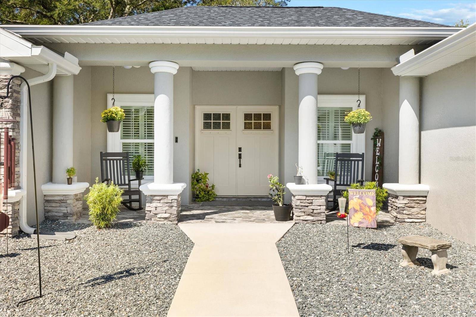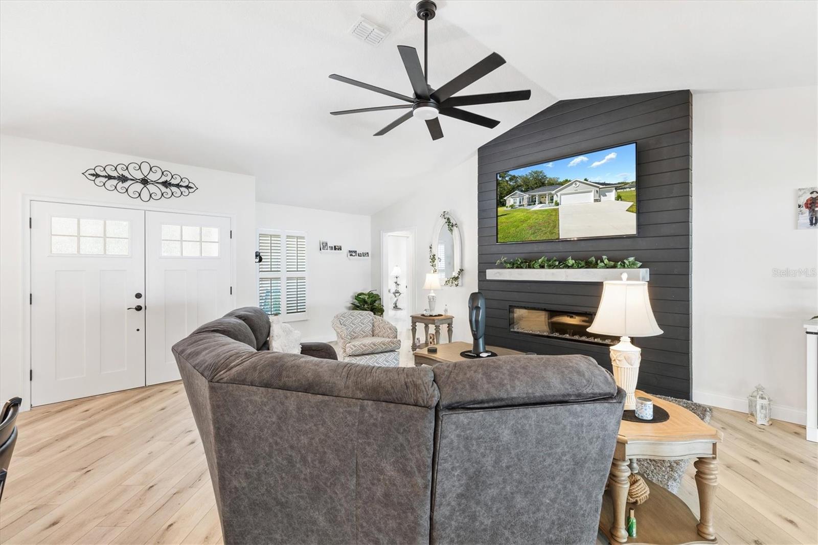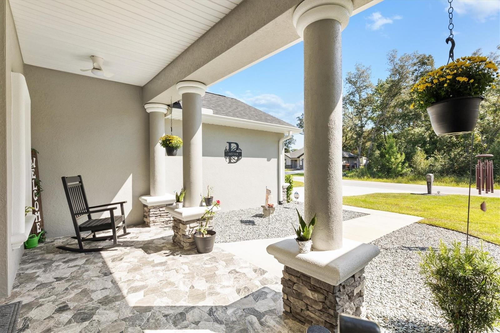 NÃO HOA SEM VÍNCULO! Impressionante casa de designer 3/3 construída sob medida com SALA PARA UMA GRANDE PISCINA. Curta viagem de golfe ou caminhe até The Villages e Mulberry Publix Plaza, onde lojas, restaurantes e instalações médicas o aguardam. Esta planta aberta e dividida apresenta luxuoso piso de prancha de vinil West Oak, uma impressionante parede shiplap com uma lareira elétrica linear de 60 ”na sala de estar e acesso a uma espaçosa varanda equipada para uma banheira de hidromassagem e piso de porcelana com aparência de pedra. Este mesmo andar fica na acolhedora varanda frontal coberta. A cozinha do Chef é completa com balcões de quartzo, fogão de 5 bocas com exaustor ventilado e enchimento de panelas, forno duplo embutido, gaveta de micro-ondas embutida, despensa personalizada e ilha com arrumação e balcão para café da manhã. O quarto principal apresenta um teto elegante com sancas e portas francesas que levam à varanda, complementadas por closets PERSONALIZADOS para ele e para ela. O banheiro privativo possui pia dupla, box de vidro com banco, banheira de imersão no jardim e um conveniente armário de roupa de cama. As portas francesas estão equipadas com persianas embutidas para maior privacidade e comodidade. Os quartos de hóspedes partilham uma casa de banho com chuveiro. O quarto da frente apresenta uma encantadora janela saliente com venezianas e um assento aconchegante na janela. O quarto dos fundos oferece carpete e acesso privativo a um lavabo, que também se conecta à varanda. A propriedade inclui uma espaçosa garagem para dois carros com espaço adicional para um carrinho de golfe e arrecadação no sótão. A lavanderia interna está equipada com armários extras, pia e caixa de controle central WiFi da casa. Os recursos adicionais incluem ventiladores de teto com kits de luz, um sistema de filtragem de água para toda a casa e uma cerca de vinil para privacidade no quintal que pode ser expandida para melhorar a vida ao ar livre. Móveis disponíveis separadamente. Agende hoje mesmo sua consulta para conhecer esta casa excepcional.