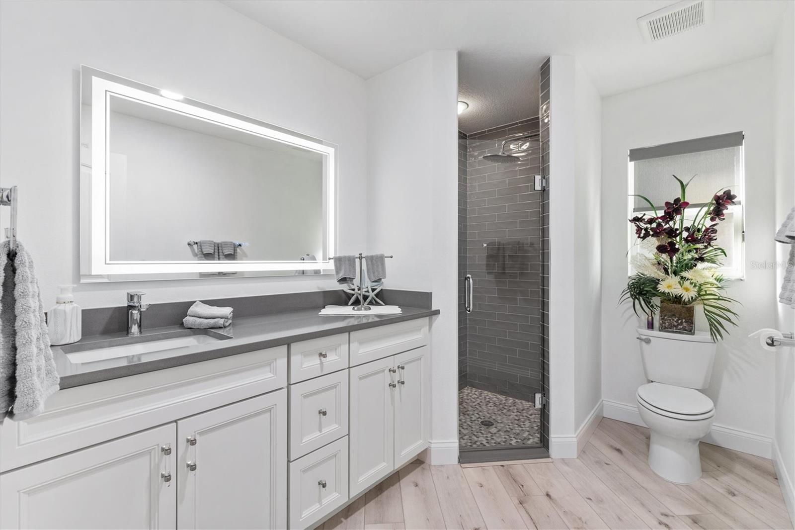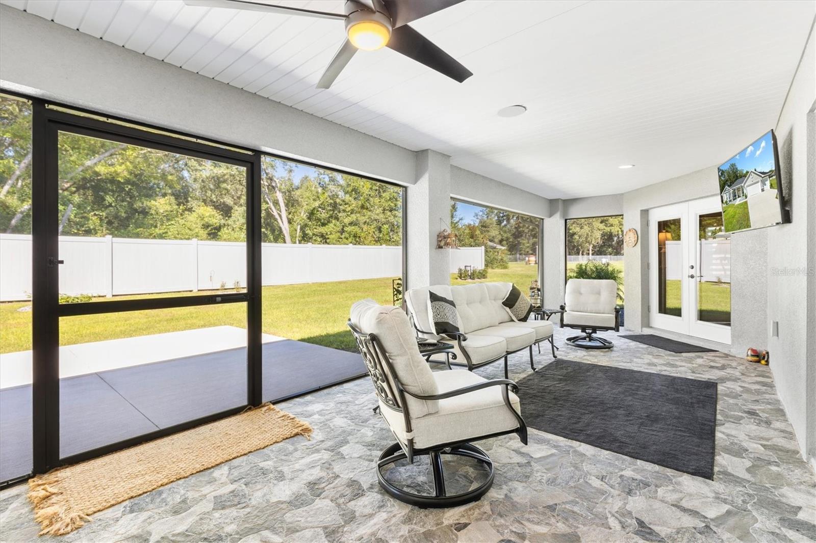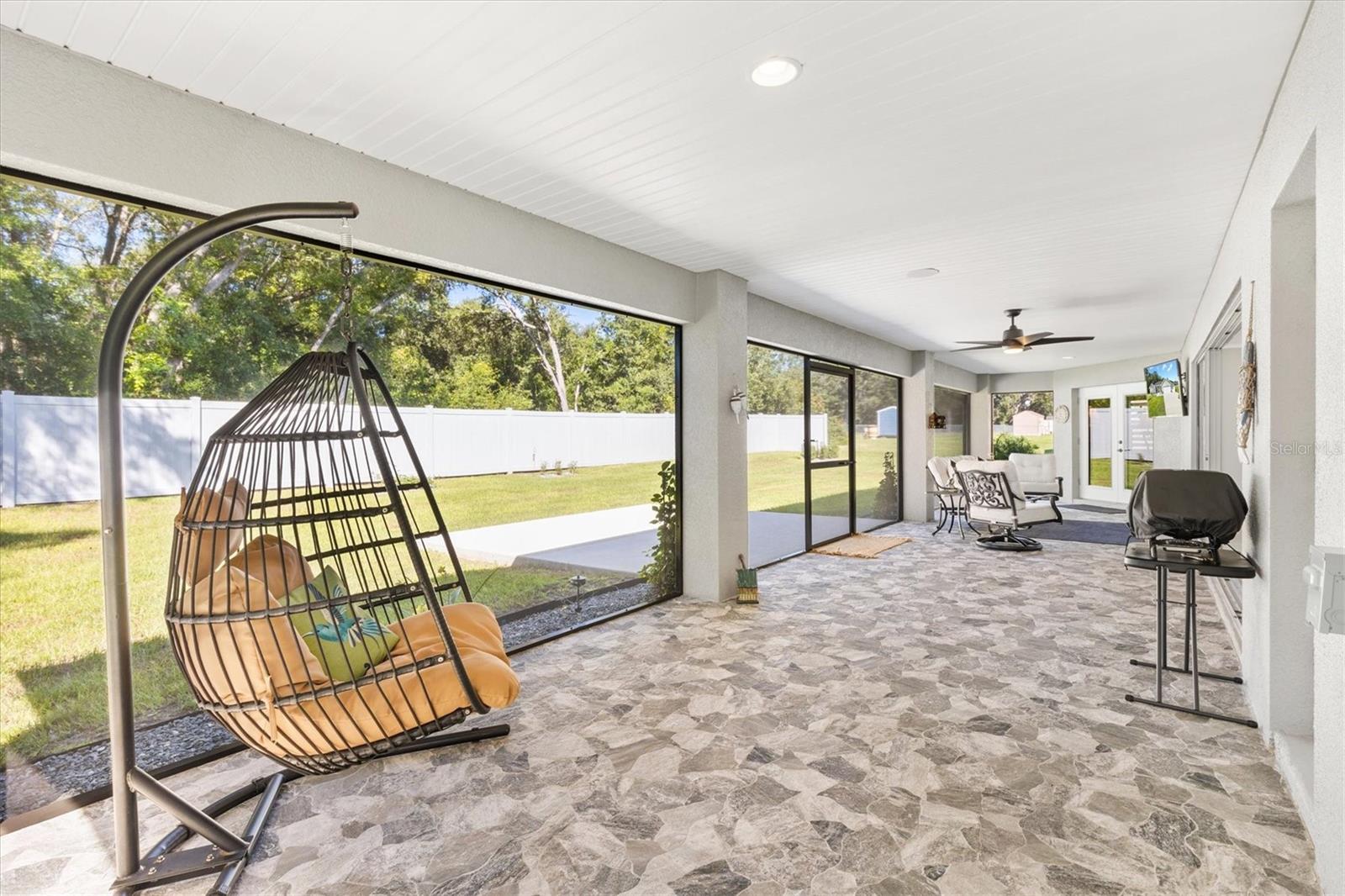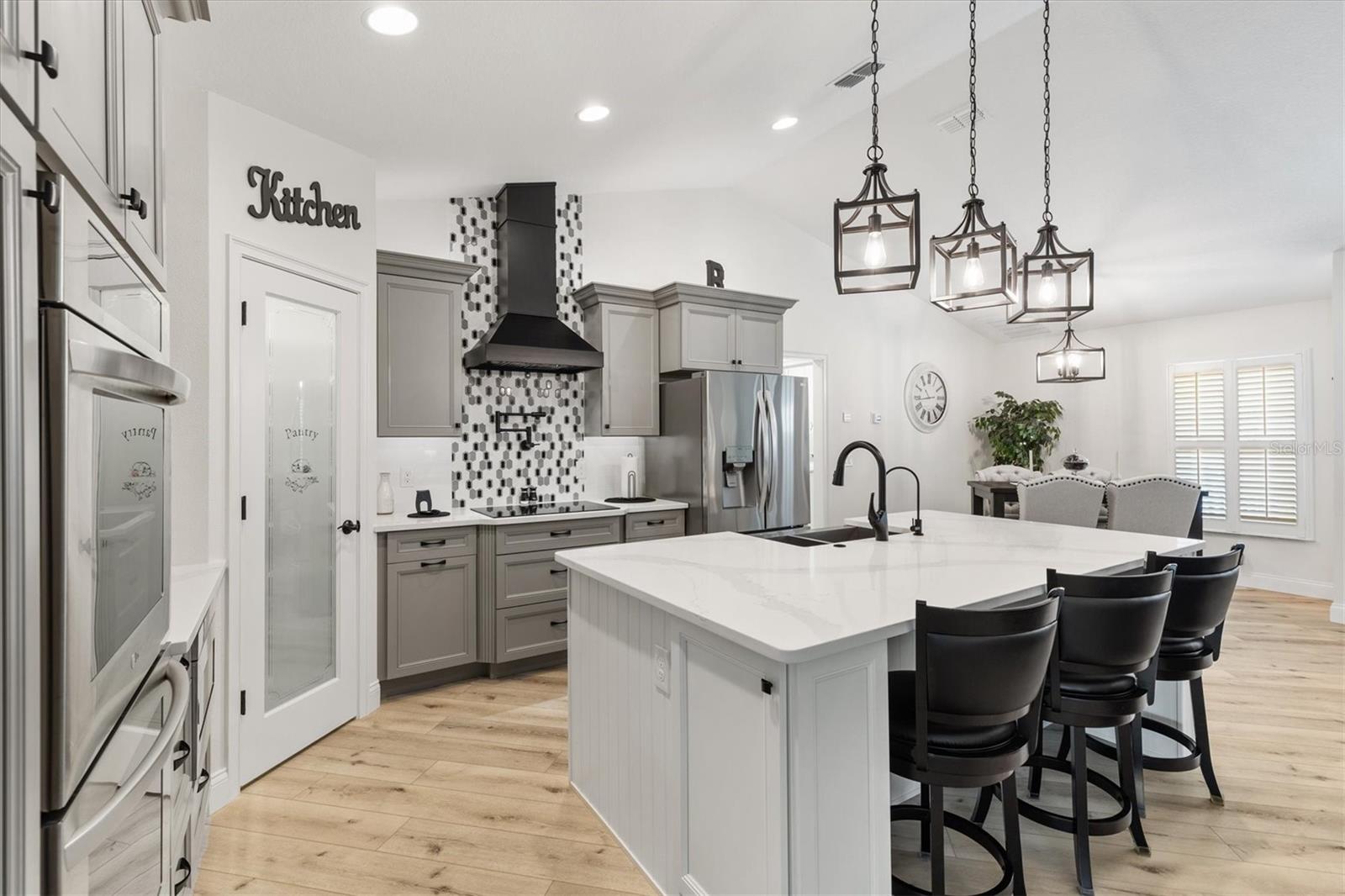 NÃO HOA SEM VÍNCULO! Impressionante casa de designer 3/3 construída sob medida com SALA PARA UMA GRANDE PISCINA. Curta viagem de golfe ou caminhe até The Villages e Mulberry Publix Plaza, onde lojas, restaurantes e instalações médicas o aguardam. Esta planta aberta e dividida apresenta luxuoso piso de prancha de vinil West Oak, uma impressionante parede shiplap com uma lareira elétrica linear de 60 ”na sala de estar e acesso a uma espaçosa varanda equipada para uma banheira de hidromassagem e piso de porcelana com aparência de pedra. Este mesmo andar fica na acolhedora varanda frontal coberta. A cozinha do Chef é completa com balcões de quartzo, fogão de 5 bocas com exaustor ventilado e enchimento de panelas, forno duplo embutido, gaveta de micro-ondas embutida, despensa personalizada e ilha com arrumação e balcão para café da manhã. O quarto principal apresenta um teto elegante com sancas e portas francesas que levam à varanda, complementadas por closets PERSONALIZADOS para ele e para ela. O banheiro privativo possui pia dupla, box de vidro com banco, banheira de imersão no jardim e um conveniente armário de roupa de cama. As portas francesas estão equipadas com persianas embutidas para maior privacidade e comodidade. Os quartos de hóspedes partilham uma casa de banho com chuveiro. O quarto da frente apresenta uma encantadora janela saliente com venezianas e um assento aconchegante na janela. O quarto dos fundos oferece carpete e acesso privativo a um lavabo, que também se conecta à varanda. A propriedade inclui uma espaçosa garagem para dois carros com espaço adicional para um carrinho de golfe e arrecadação no sótão. A lavanderia interna está equipada com armários extras, pia e caixa de controle central WiFi da casa. Os recursos adicionais incluem ventiladores de teto com kits de luz, um sistema de filtragem de água para toda a casa e uma cerca de vinil para privacidade no quintal que pode ser expandida para melhorar a vida ao ar livre. Móveis disponíveis separadamente. Agende hoje mesmo sua consulta para conhecer esta casa excepcional.