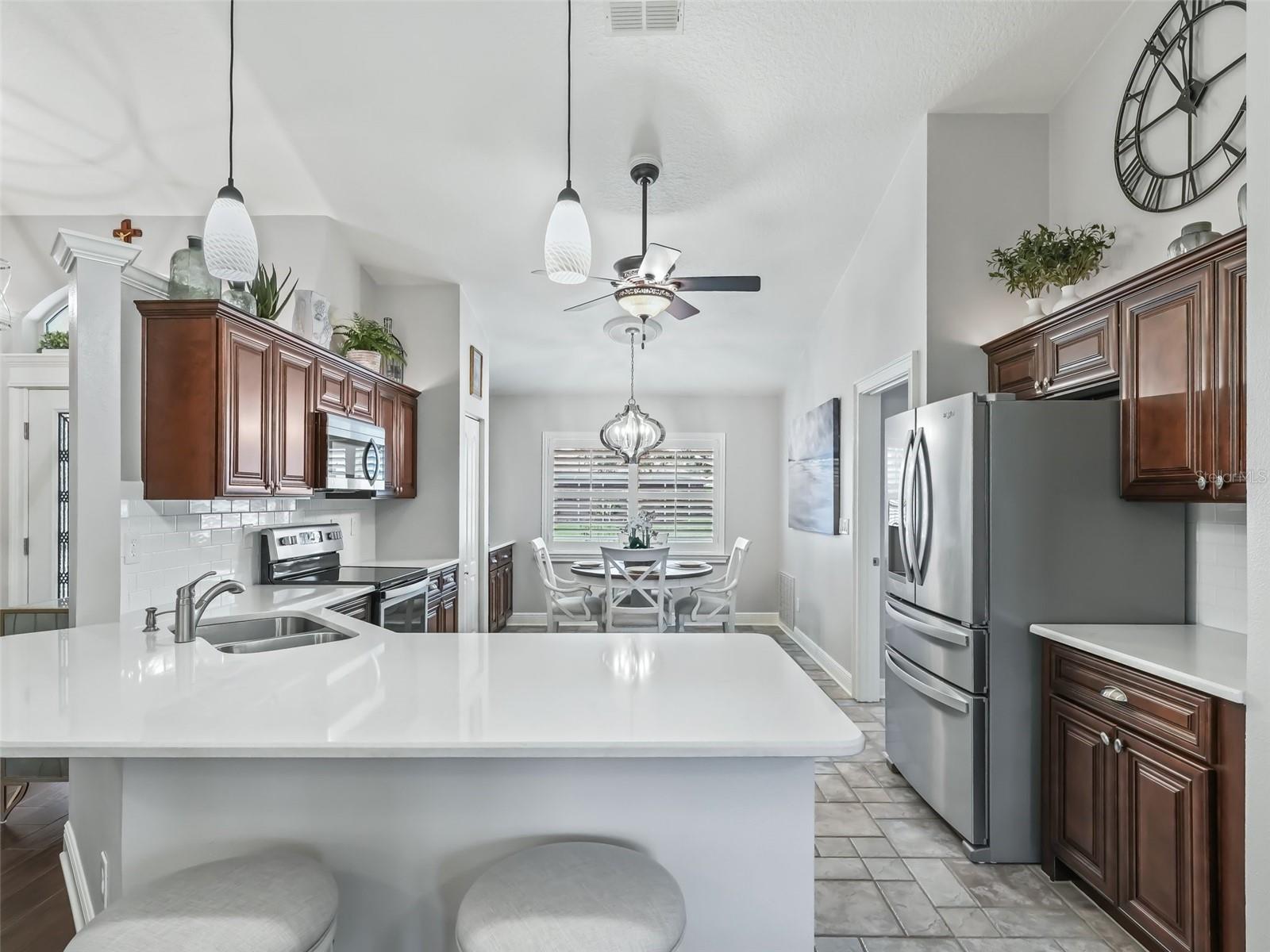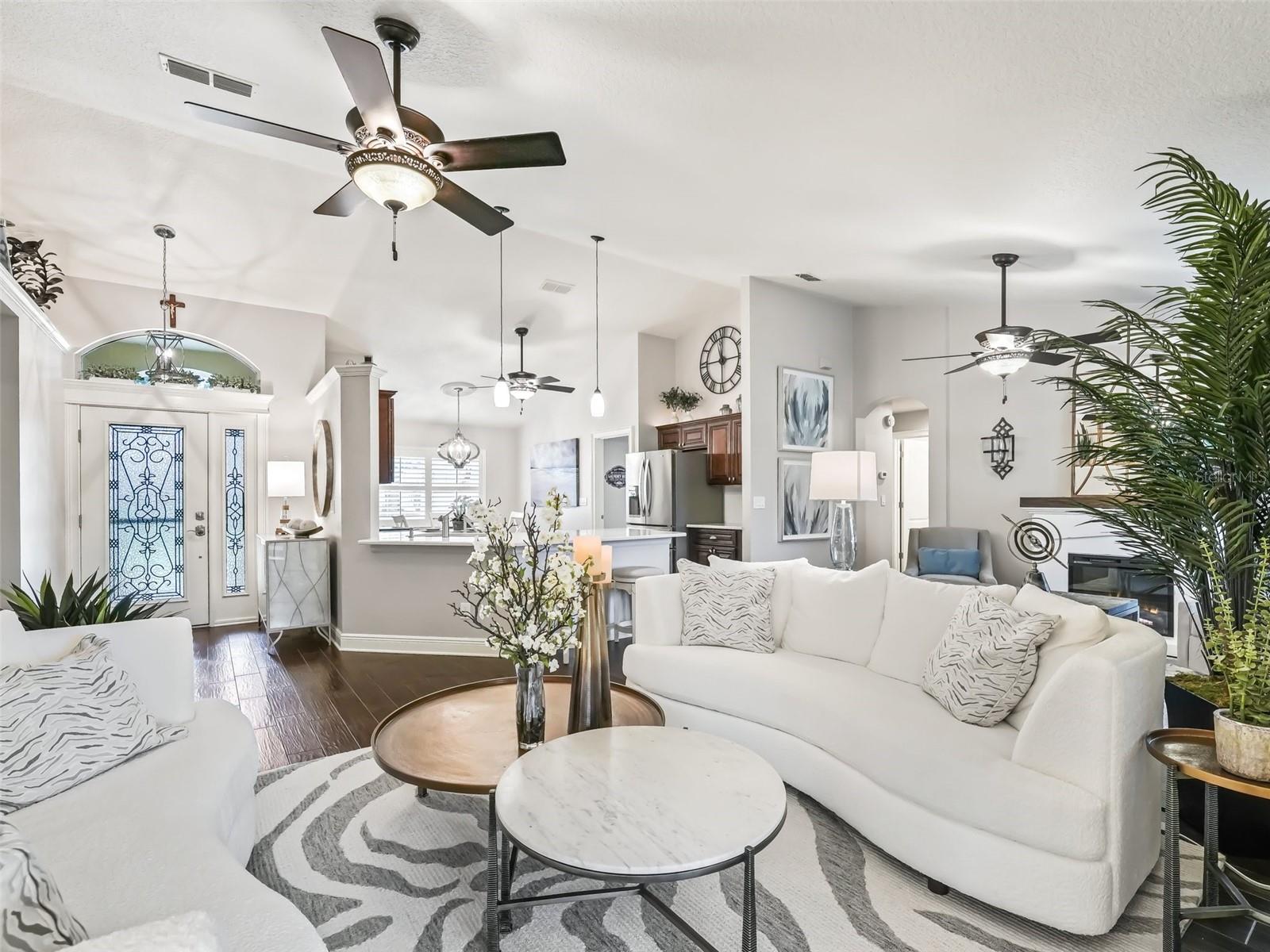 BEM-VINDO A UMA MAGNÍFICA E BONITA CASA DE TRÊS QUARTOS E DOIS BANHOS NO PRIMEIRO BURACO DO CAMPO DE GOLFE DO CAMPEONATO STONECREST. TUDO SOBRE ESTA CASA EXIGE LUXO COMEÇANDO QUANDO VOCÊ PUXA PARA A FRENTE DO BLOCO E ESTUQUE A CASA. OS TERRENOS FORAM METICULOSAMENTE CUBRADOS, DESDE O NOVO SOD ATÉ AS PLANTAÇÕES DE BOM GOSTO COM CAMAS DE PEDRA E CURB-IT EM REDOR DOS JARDINS. A CAMINHADA FRONTAL LEVA À ENTRADA DE PORCELANATO COM PORTA DE VIDRO E LUZ LATERAL. ENTRANDO PELO FOYER FRONTAL, SEU OLHO É ATRAÍDO PARA A VISTA TRASEIRA DO GOLFE. A ÁREA DE ESTAR PRINCIPAL É ABERTA E AREJADA, COM TETOS VOLUME E PINTURA QUENTE NAS PAREDES. A GRANDE COMIDA NA COZINHA É COMPLEMENTADA POR RICOS ARMÁRIOS DE MADEIRA, BALCÕES DE QUARTZO COM ASSENTOS NA ILHA, BACKSPLASH DE TELHA DE METRÔ E eletrodomésticos de aço inoxidável. UM GRANDE ARMÁRIO DE DESPENSA COMPLETA A COZINHA. FORA DA COZINHA HÁ UMA LAVANDERIA INTERIOR DE TAMANHO GENEROSO COM ARMÁRIOS COMPLEMENTANDO A COZINHA. PERSIANAS DE PLANTAÇÃO ADORNAM AS JANELAS JUNTO COM 5 1/4 RODAPÉS E AZULEJO DE PORCELANA FLUXO PELA CASA E PARA A GARAGEM. UM GRANDE BANCO DE ARMÁRIOS DE GARAGEM FORNECE O ARMAZENAMENTO FINAL. UMA NOVA PORTA DE GARAGEM ISOLADA E ABRIDOR DE 1,25 HP FORAM ADICIONADOS RECENTEMENTE. A SALA DE ESTAR TEM ABUNDÂNCIA DE LUZ NATURAL QUE FLUI DA ESPAÇOSA LANAI FECHADA. UM DESLIZADOR LEVA DA SALA DE ESTAR À LANAI. A SALA DE JANTAR ESTÁ SENDO USADA COMO UMA ÁREA DE ESTAR ACONCHEGANTE COM UMA LINDA LAREIRA E É UM LUGAR PERFEITO PARA LER SEU LIVRO FAVORITO. A PLANTA DE QUARTO SPLIT OFFSET É UMA DAS MAIS POPULARES. A SUÍTE MASTER TAMBÉM TEM UM GRANDE SLIDER QUE LEVA À LANAI. O BANHO DA SUÍTE COM ARMÁRIOS PARA SEUS E ELA, UMA VAIDADE DUPLA, UMA GRANDE BANHEIRA DE IMERSÃO E LINDO CHUVEIRO COM PORTA DE VIDRO. UM ARMÁRIO DE ÁGUA PRIVADO COMPLETA O QUARTO PRIMÁRIO. NO LADO OPOSTO DA CASA HÁ DOIS QUARTOS E UM GRANDE BANHEIRO DE HÓSPEDES. UM DOS QUARTOS É USADO COMO HOME OFFICE COM CAMA QUEEN MURPHY E SUÍTE DE ESCRITÓRIO DE COMPLEMENTO. O BANHEIRO DE HÓSPEDES APRESENTA UM GRANDE CAMINHADA NO CHUVEIRO COM PORTA DE VIDRO DESLIZANTE, VAIDADE COM BALCÃO DE QUARTZO E BANHEIRO MAIS NOVO. UMA PEQUENA JANELA DE VIDRO PERMITE QUE O SOL DA FLÓRIDA FLUA PARA O BANHO. A LANAI FECHADA TRASEIRA FLUI PELA PARTE DE TRÁS DA CASA E APRESENTA MUITA LUZ NATURAL. A VISTA DO CAMPO DE GOLFE TRASEIRO E A VISTA DA ÁGUA PODEM SER APRECIADAS NA LANAI OU APENAS FORA NA GAIOLA ANEXA. A CASA FOI CARINHOSAMENTE CUIDADA E OFERECE LUXO E CONFORTO A CADA VOLTA. ESTA É VERDADEIRAMENTE UMA CASA QUE VOCÊ DESEJA ADICIONAR À SUA LISTA DE IMPERDÍVEIS.
