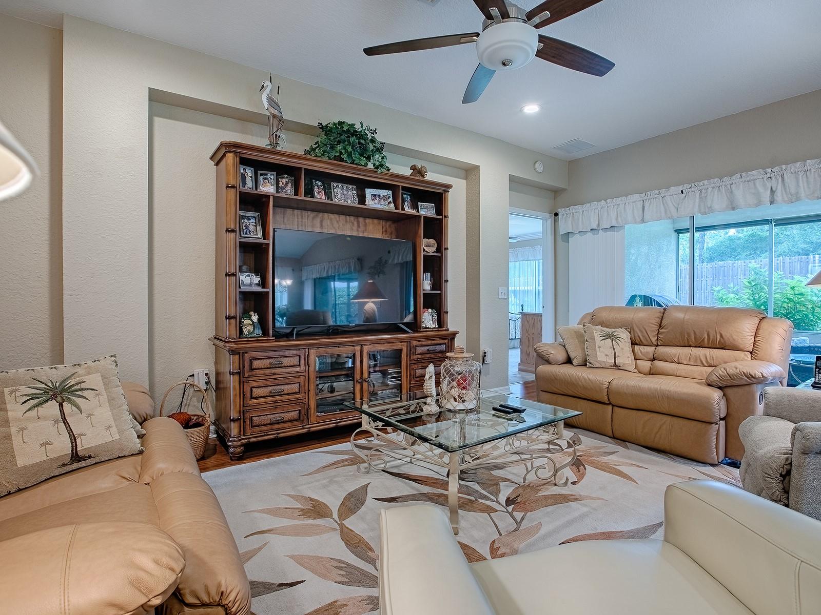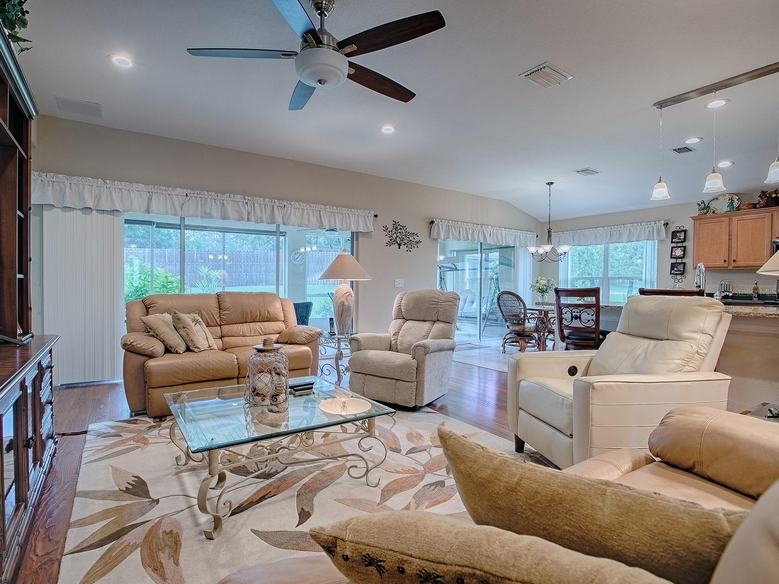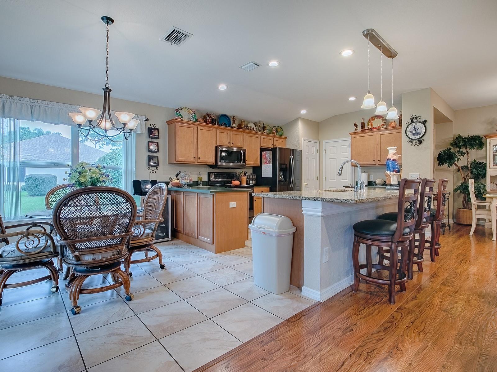 Modelo Elkridge excepcional em Del Webb – um verdadeiro destaque! Descubra um dos modelos Elkridge mais destacados na cobiçada comunidade Del Webb. A partir do momento em que você passa pela porta frontal de vidro com chumbo, complementada por uma janela lateral correspondente, e chega aos impressionantes pisos de madeira projetada, você se sentirá em casa. A planta aberta convida você imediatamente a explorar. O coração da casa, a cozinha, possui uma elegante barra de café da manhã de granito de um nível - o que há de mais moderno em design de bancada. Você vai adorar os armários Maple com extensões convenientes, eletrodomésticos pretos de aço inoxidável e piso de cerâmica elegante, tornando-os perfeitos para a vida diária e para entretenimento. Ao relaxar na grande sala, você desfrutará de vistas serenas do espaçoso e privado quintal - ideal para uma futura piscina ou expansão. O quarto principal oferece piso em carpete macio, sancas elegantes e ventilador para maior conforto. Em toda a casa, os tratamentos verticais das janelas proporcionam um toque limpo e moderno. Saia para a varanda com tela, onde você pode abraçar totalmente o estilo de vida da Flórida, desfrutando da tranquilidade do quintal privado. No interior, a conveniente lavanderia inclui unidades de lavadora e secadora mais novas, com armários superiores para armazenamento extra. A garagem estendida de 25 pés garante muito espaço para dois carros e espaço de armazenamento adicional. As atualizações recentes proporcionam tranquilidade: a casa foi reequipada em 2022, e tanto o telhado como o sistema HVAC foram substituídos recentemente (telhado em 2022, HVAC em 2019), enquanto o aquecedor de água quente foi atualizado em 2017. Sem grandes despesas com que se preocupar nos próximos anos, esta casa está pronta para morar! Não perca - agende uma exibição hoje mesmo! Observe que a casa não pode fechar antes de 31/12/24, mas os vendedores estão abertos a um fechamento mais cedo com opção de relocação.