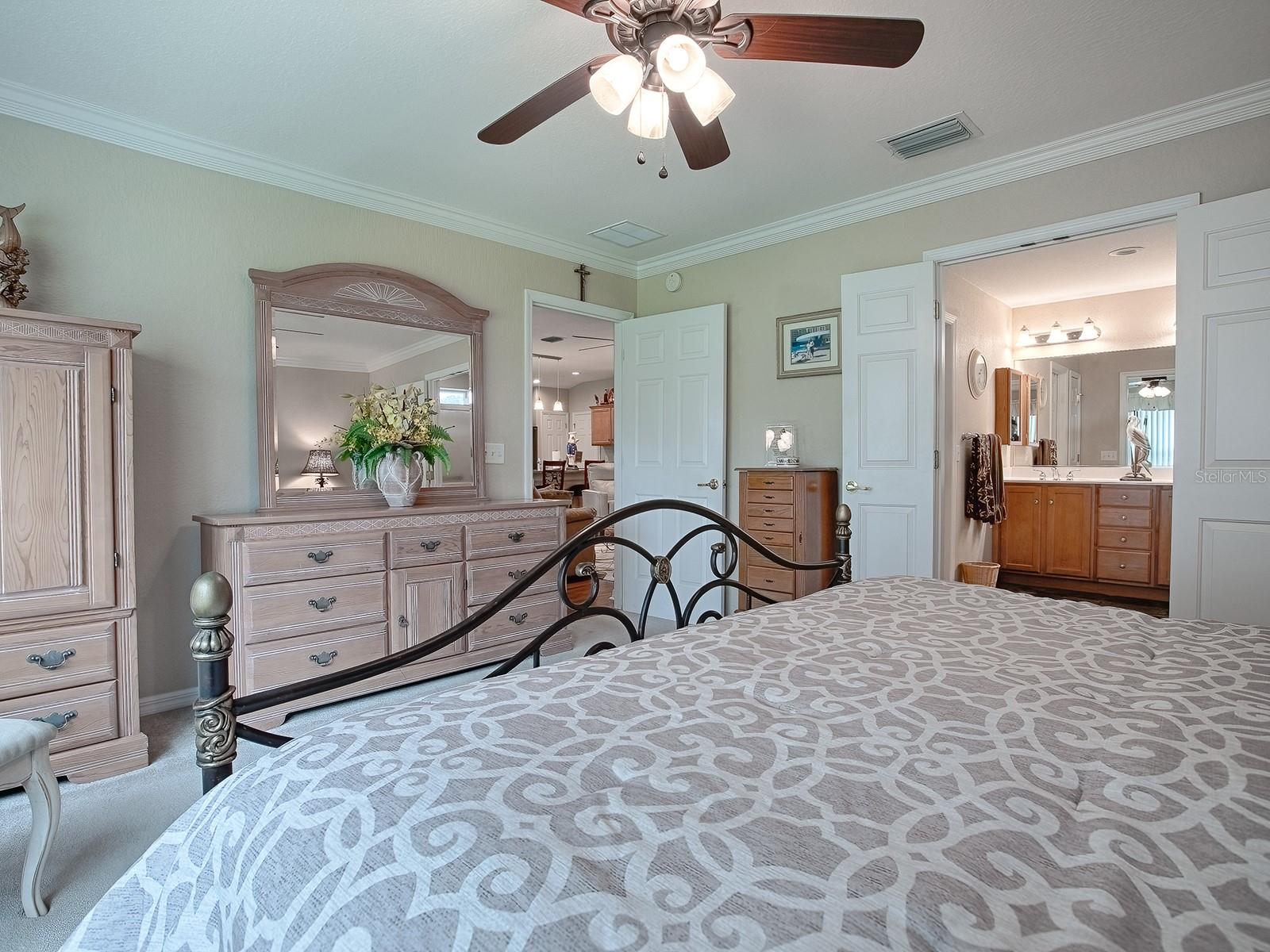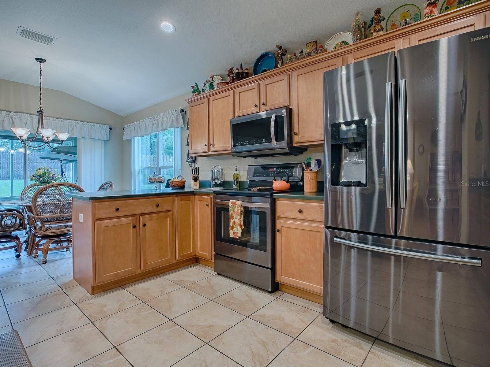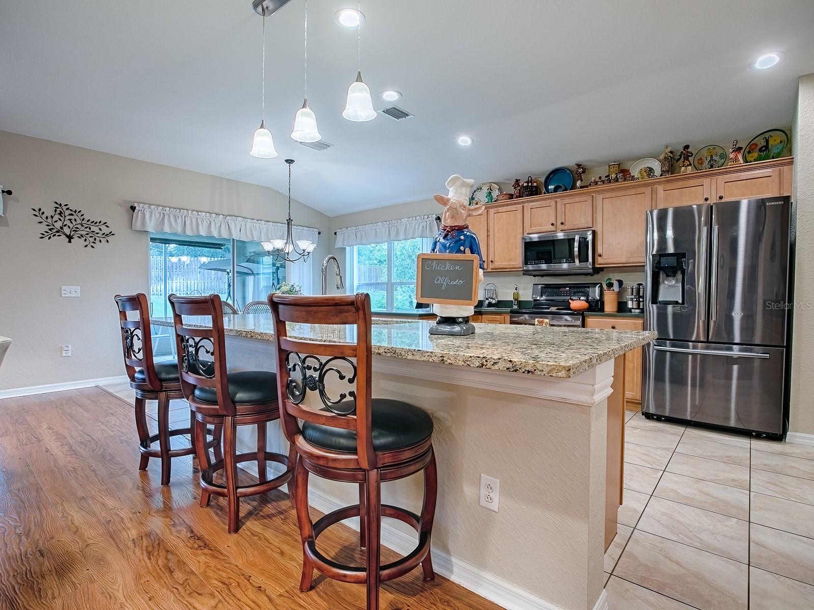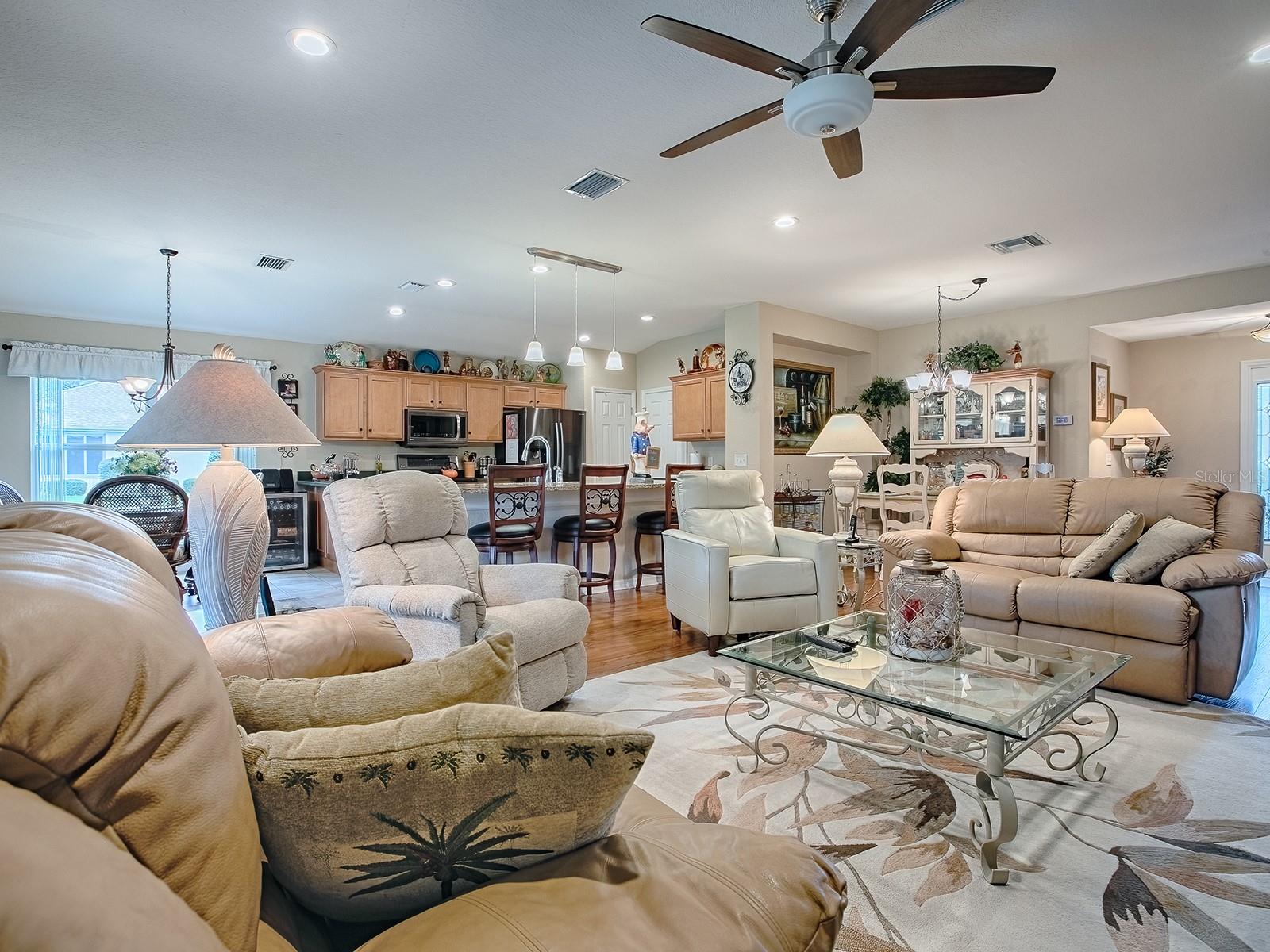 Modelo Elkridge excepcional em Del Webb – um verdadeiro destaque! Descubra um dos modelos Elkridge mais destacados na cobiçada comunidade Del Webb. A partir do momento em que você passa pela porta frontal de vidro com chumbo, complementada por uma janela lateral correspondente, e chega aos impressionantes pisos de madeira projetada, você se sentirá em casa. A planta aberta convida você imediatamente a explorar. O coração da casa, a cozinha, possui uma elegante barra de café da manhã de granito de um nível - o que há de mais moderno em design de bancada. Você vai adorar os armários Maple com extensões convenientes, eletrodomésticos pretos de aço inoxidável e piso de cerâmica elegante, tornando-os perfeitos para a vida diária e para entretenimento. Ao relaxar na grande sala, você desfrutará de vistas serenas do espaçoso e privado quintal - ideal para uma futura piscina ou expansão. O quarto principal oferece piso em carpete macio, sancas elegantes e ventilador para maior conforto. Em toda a casa, os tratamentos verticais das janelas proporcionam um toque limpo e moderno. Saia para a varanda com tela, onde você pode abraçar totalmente o estilo de vida da Flórida, desfrutando da tranquilidade do quintal privado. No interior, a conveniente lavanderia inclui unidades de lavadora e secadora mais novas, com armários superiores para armazenamento extra. A garagem estendida de 25 pés garante muito espaço para dois carros e espaço de armazenamento adicional. As atualizações recentes proporcionam tranquilidade: a casa foi reequipada em 2022, e tanto o telhado como o sistema HVAC foram substituídos recentemente (telhado em 2022, HVAC em 2019), enquanto o aquecedor de água quente foi atualizado em 2017. Sem grandes despesas com que se preocupar nos próximos anos, esta casa está pronta para morar! Não perca - agende uma exibição hoje mesmo! Observe que a casa não pode fechar antes de 31/12/24, mas os vendedores estão abertos a um fechamento mais cedo com opção de relocação.