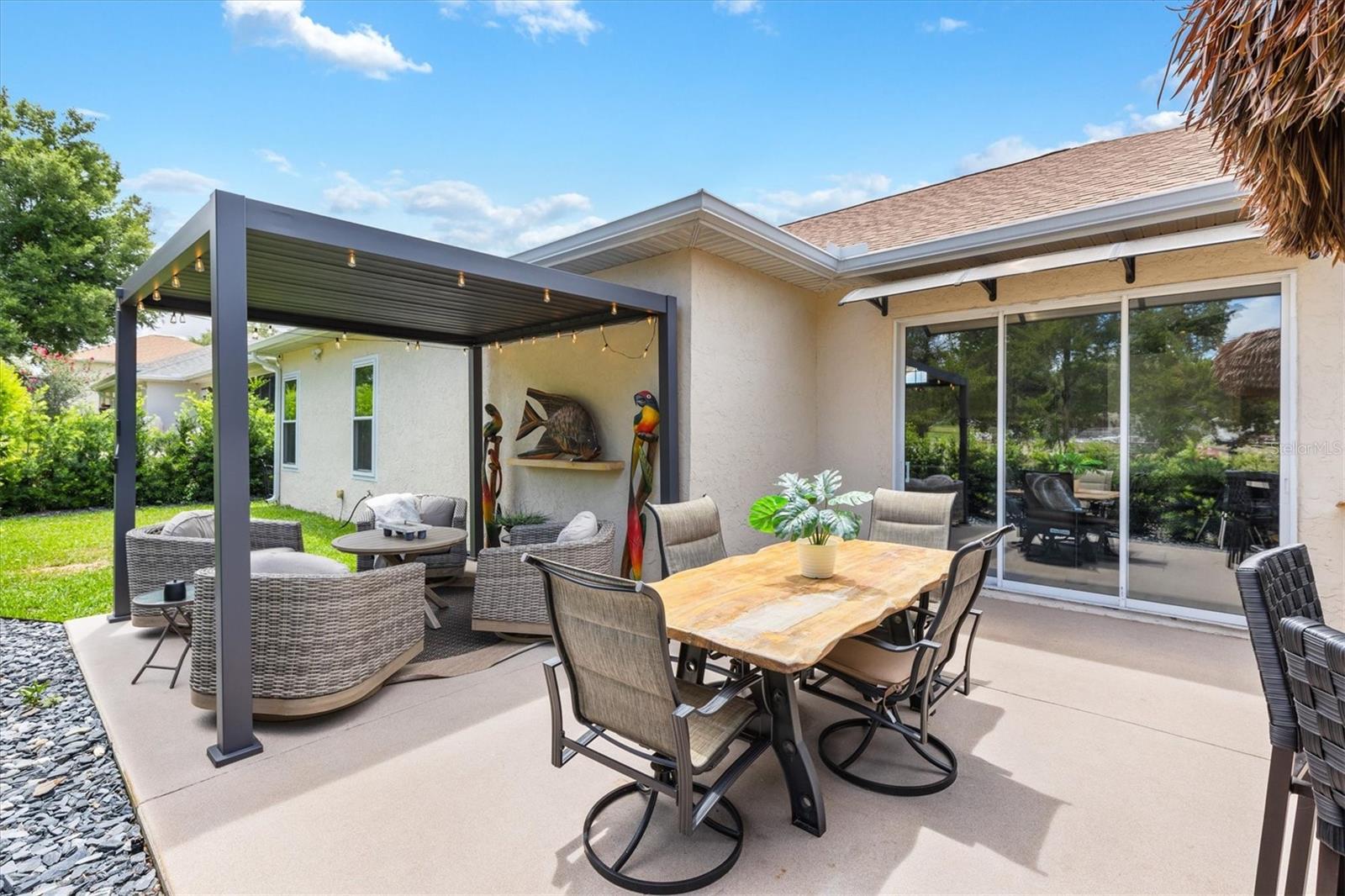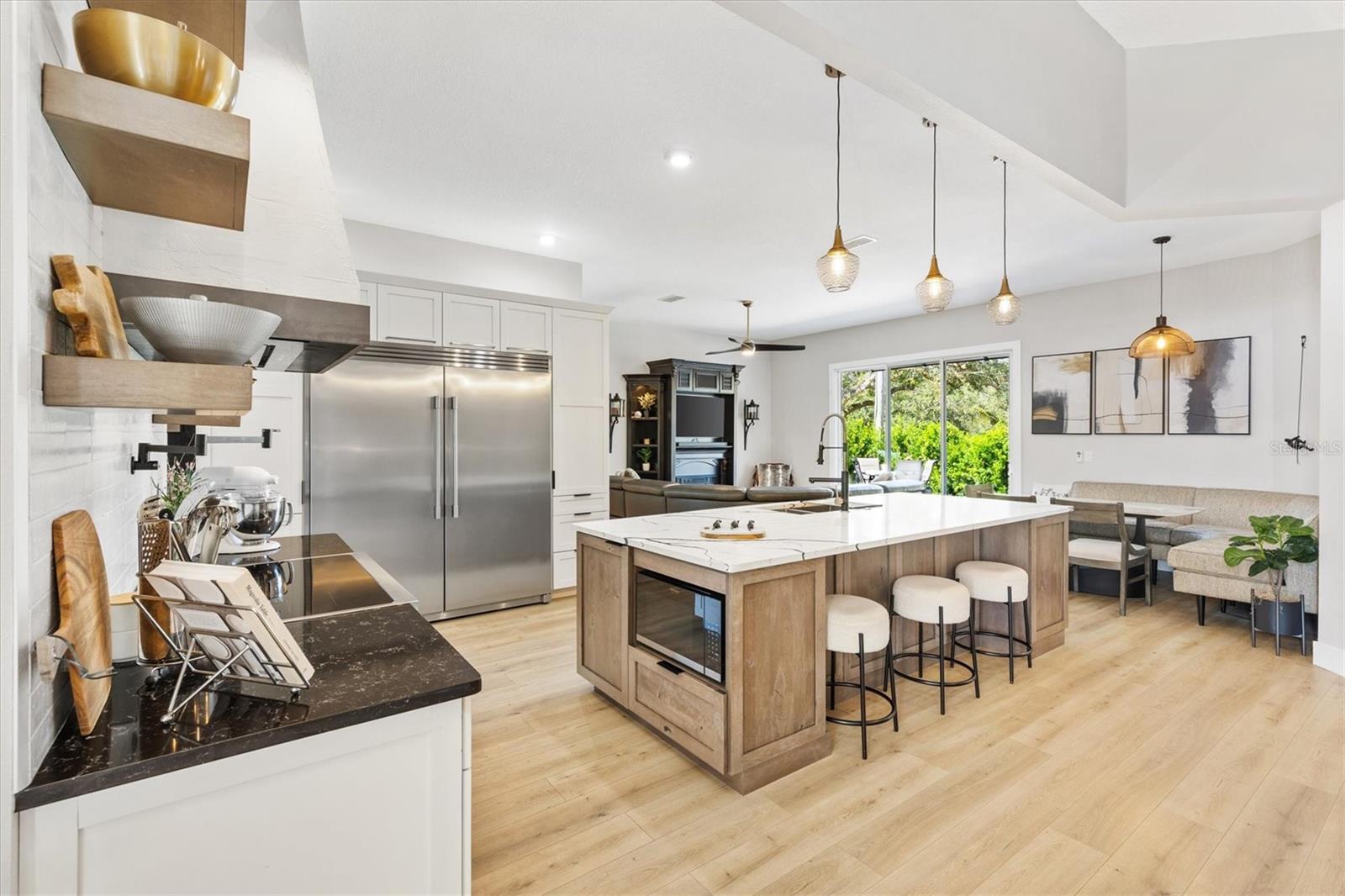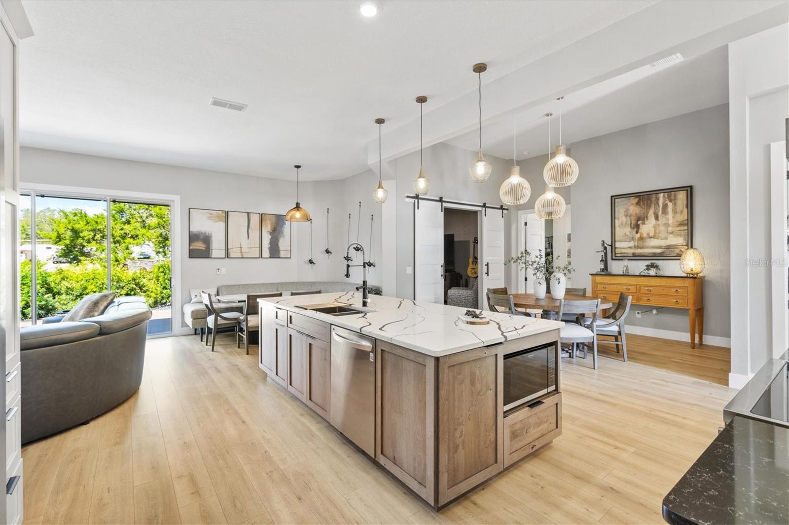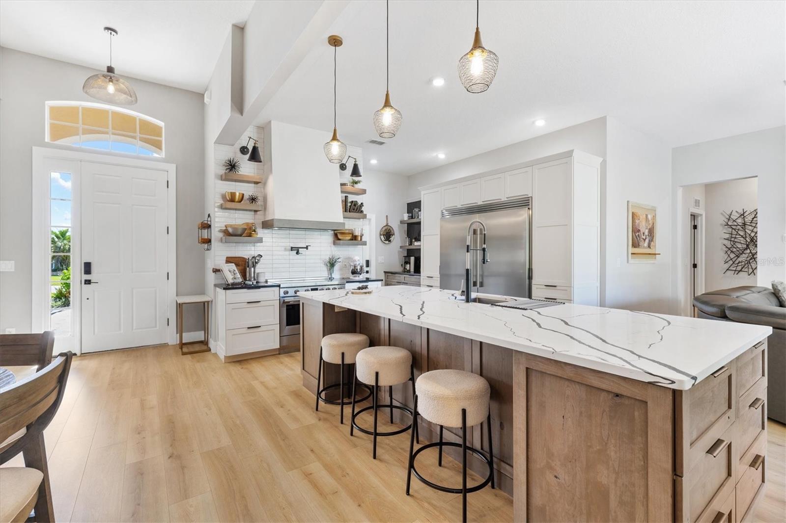 **** Vendedor motivado "" "" Todos os acabamentos modernos e sofisticados que você esperaria nesta casa recém-reformada. Único com quase tudo novo.! New Kitchen 2023, New Appliances 2023, New Roof 2021, HVAC 2023, aquecedor de água quente 2023. Na comunidade fechada procurada. Esta encantadora residência do Plano Split apresenta uma varanda coberta que o convida para um espaço lindamente projetado com novos fãs de piso laminado e teto com alto teto. O layout aberto é perfeito para refeições formais e casuais, conectando perfeitamente uma cozinha moderna com uma sala de estar aconchegante que inclui uma lareira elétrica. The modern kitchen is a chef’s delight, equipped with a 36” induction stove with pot filler, quartz countertops, and a spacious island with a breakfast bar. Enjoy casual meals in the cozy banquette seating area and take advantage of the butler pantry equipped with a washer and dryer for added convenience. Additional features in the kitchen include spacious cabinets, pull-out shelves, quartz countertops, side by side refrigerator-freezer, and coffee bar with its O próprio suprimento de água da cozinha e atrás das portas do celeiro é a sala de mídia, com uma parede de sotaque, perfeita para as noites de cinema e entretenimento. Se você escolher. O pátio privado no pátio, no fundo da casa, abriga uma pérgola de 9x11 com ripas alavancadas para sol ou sombra. A garagem do carrinho de 2 carros mais tem acesso ao armazenamento no sótão com escadas de puxar, o novo abridor de porta de garagem equipado com 2 controles remotos para facilitar a entrada. Recursos adicionais que você vai adorar nesta casa são a garagem da pavimentadora com espaço para 3 carros, uma pistola embutida segura no terceiro quarto, sistema de amaciador de água inteira de aquasure, persianas de plantações, calhas novas e sistema de irrigação e tetos altos de 10 'e 12'. Depois de um dia cheio de aventuras em Stonecrest, relaxe neste retiro pacífico, onde o conforto encontra tranquilidade. A comunidade Stonecrest tem 4 piscinas, campo de golfe, fitness center, tênis, boccie e pickleball, parque de cães, restaurante de clube de campo e muito mais, incluindo 75 clubes e atividades diferentes para atender às necessidades de todos. A partir desta comunidade amigável de carrinho de golfe, você pode fazer compras no Walmart, no BJ's Wholesale Club, visitar seu médico, ir a um restaurante ou visitar amigos. Fácil acesso às aldeias e à praça da cidade de Springs Springs para refeições e compras. A lista é interminável! Certifique -se de assistir ao nosso vídeo desta adorável casa e marcar sua consulta para vê -la hoje.