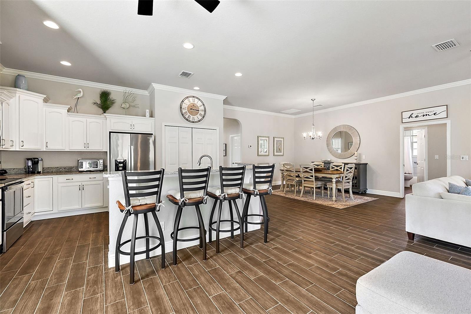 Preço Informamento !! Proprietários motivados, agora é a hora !! Esta casa de 2020, 3/2, no vale norte de Stonecrest, tem tudo o que você precisa! Ao entrar na casa, você notará os tetos de 10 pés, moldagem da coroa e ladrilhos de porcelana por toda parte! Um piso plano aberto com quartos divididos e uma porta de bolso para fechar os hóspedes visitando uma suíte particular. A primária tem 3 armários! O Lanai foi fechado com janelas de vidro com tons personalizados e portas francesas, onde você pode aproveitar seu café da manhã, sem vizinhos traseiros. Um sistema de filtragem de água inteira foi adicionado, protetor de onda de casas inteiras, calhas e calhas e fáceis de manter paisagismo. Esta casa de quarteirão tem uma garagem de 2 carros com portas de tela deslizante e uma garagem para carrinho de golfe. Eu disse localização, localização, localização?! Esta casa está na bela e fechada, 55 Comunidade de Stonecrest e é exatamente o que você estava esperando! Apenas alguns turnos na comunidade de qualquer entrada para fácil entrar/sair! Leve seu carrinho de golfe para o Walmart, via portão de acesso à carrinho de golfe Stonecrest e esteja lá em 5 minutos! A comunidade possui 4 piscinas (1 é água em sal), quadras de pickleball, softbol, shuffleboard, fitness center, biblioteca, centro comunitário, restaurante, golfe e a lista continua !! Você também tem clubes, atividades, entretenimento ... Você não ficará entediado! A uma curta distância de carro das aldeias para fazer compras, restaurantes, médicos e entretenimento. Ligue hoje para sua exibição particular!