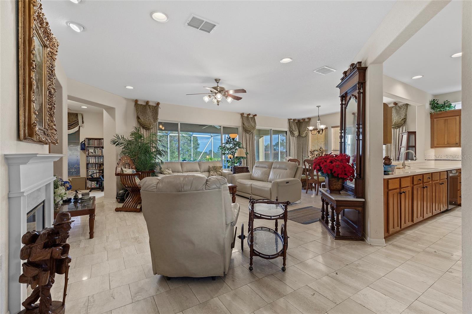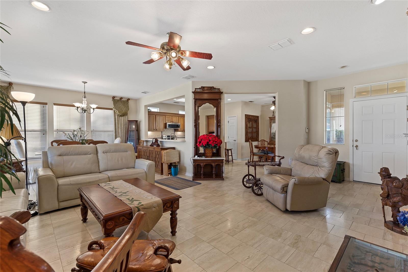 Bem-vindo a esta impressionante casa de modelo Captiva, aninhada no altamente procurado bairro Highland Falls de Del Webb Spruce Creek Golf & Country Club! Com 3 quartos, 3 banheiros e uma cova versátil, esta casa espaçosa também apresenta uma suíte de sogra particular, perfeita para vida multigeracional ou hospedando convidados fora da cidade. A casa inclui uma garagem de 2 carros e uma garagem para carrinho de golfe, oferecendo amplo espaço para veículos e armazenamento. O vendedor motivado e o carrinho de golfe está incluído na compra de casa. Com tetos altos e duas clarabóias, o interior é inundado de luz natural, criando uma atmosfera brilhante e convidativa. A planta aberta integra perfeitamente as vistas deslumbrantes do campo de golfe Eagle Ridge, fornecendo um cenário sereno e pitoresco para a vida diária. Esteja você desfrutando do conforto da casa ou das vibrantes comodidades que a comunidade oferece, encontrará o equilíbrio perfeito de luxo e conveniência. O Del Webb Spruce Creek Golf & Country Club é uma comunidade excepcional de mais de 55 anos, oferecendo um estilo de vida incomparável. Os entusiastas do golfe podem desfrutar de 36 buracos em quatro cursos distintos de 9 buracos, enquanto outras comodidades incluem um centro de fitness de última geração, uma piscina aquecida interna e 2 piscinas externas aquecidas no estilo resort, tênis e quadras de pickleball, trilhas para caminhada, um campo de softbol, biliards e numerosos clubes sociais. O condomínio fechado garante segurança 24 horas, promovendo uma sensação de paz e segurança em um ambiente acolhedor e ativo. Não perca a chance de tornar esta casa extraordinária sua e experimente tudo o que essa comunidade vibrante tem a fornecer!