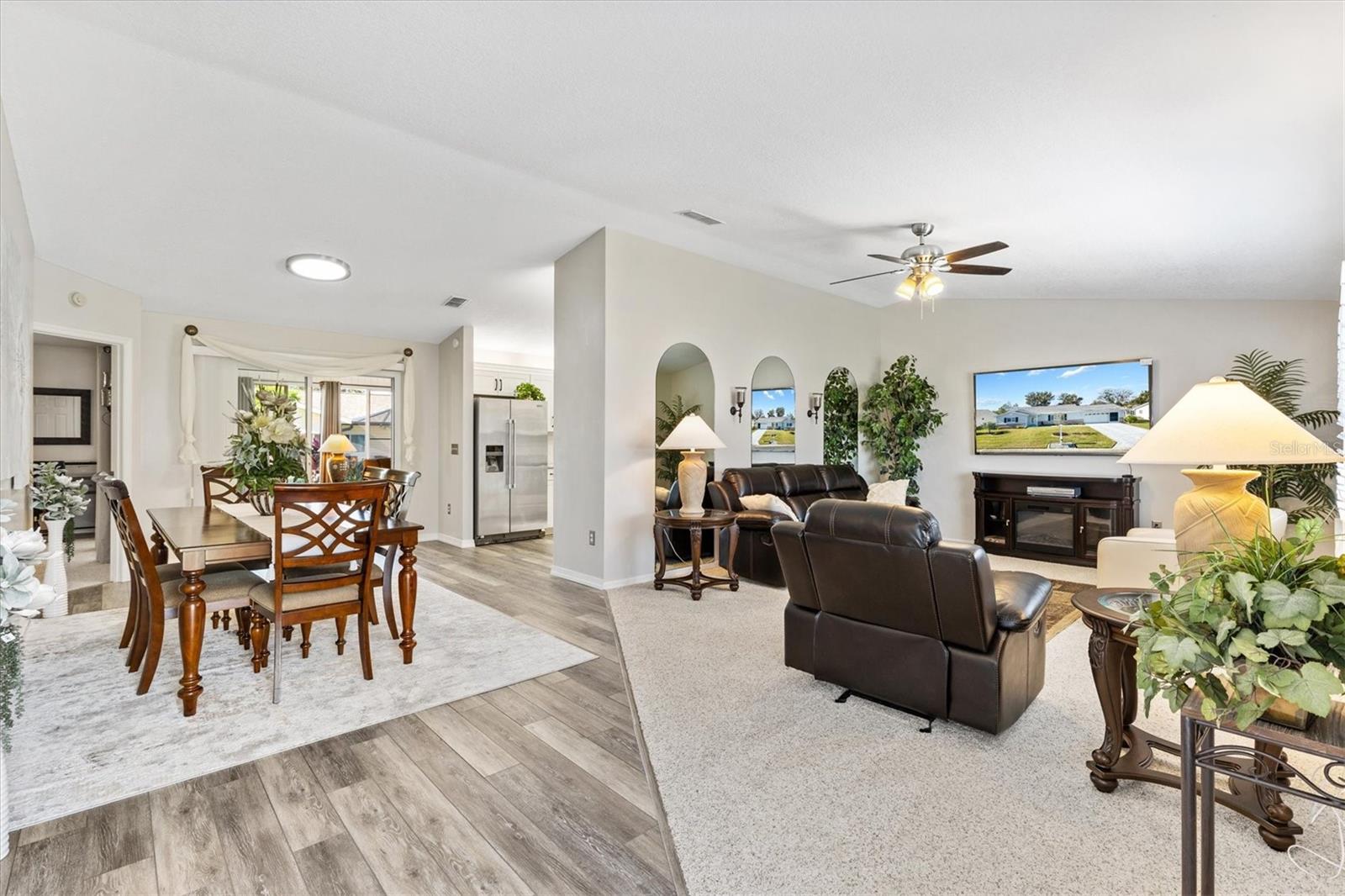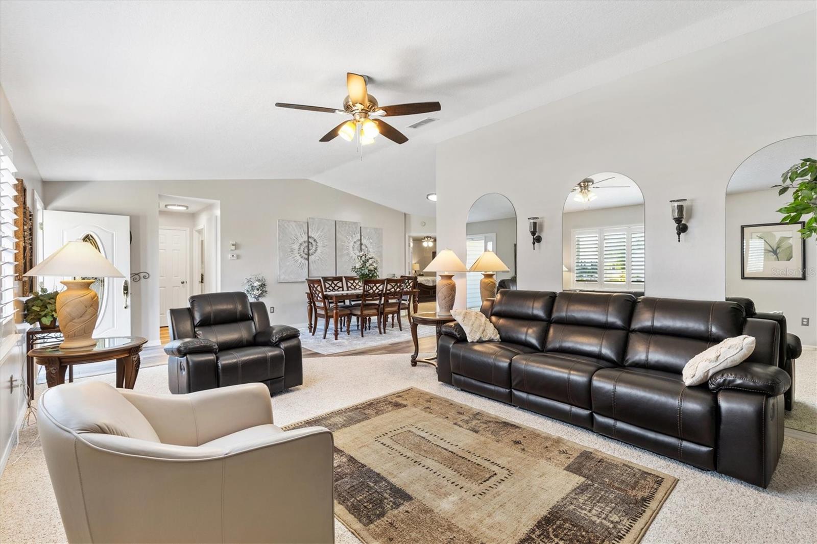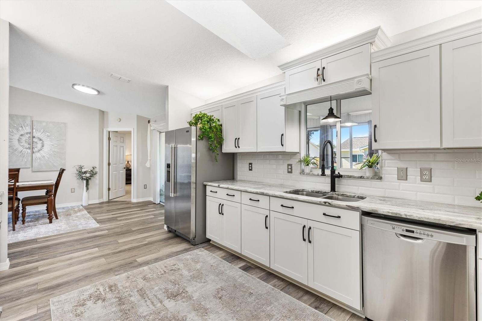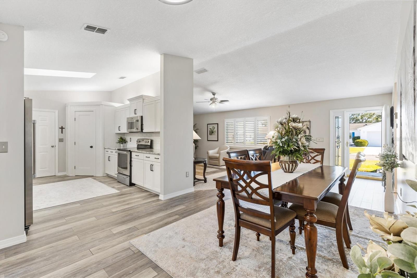 Casa modelo 2/2 Palm totalmente atualizada no condomínio fechado Spruce Creek South Community. Telhado 2022, HVAC 2020 e aquecedor de água quente 2021. Passe pela elegante porta frontal de vidro com chumbo e seja recebido por um layout de planta dividida lindamente projetado com carpete, piso laminado à prova d'água Smart Core Premium e elegantes pisos de cerâmica por toda parte. Recém-pintada com tetos desmontados e venezianas, esta casa exala charme moderno. A Cozinha da Cozinha foi totalmente atualizada com novos armários, eletrodomésticos de aço inoxidável, despensa e armário de casacos personalizados e bancadas de granito. Desfrute de acesso contínuo à varanda fechada e com temperatura controlada tanto da área de estar quanto do quarto principal, perfeita para relaxar e se divertir. O quarto principal tem um closet espaçoso e um luxuoso banheiro privativo, completo com uma nova pia dupla em acrílico de quartzo, paredes elegantes com azulejos que se estendem até o chão e chuveiro, sem banheira. O quarto de hóspedes tem um closet próximo ao novo banheiro remodelado com azulejos de metrô, pia dupla de acrílico de quartzo e combinação de banheira e chuveiro. Ambos os banhos têm banheiros novos. Características adicionais que tornam esta casa especial são novos ventiladores de teto e luminárias por toda parte, piso cerâmico em ambos os banheiros, placas de metal, garagem para dois carros com armazenamento, kit de escada no sótão, porta de correr na garagem e clarabóia na cozinha. Experimente conforto e estilo em todos os cantos desta casa requintada! A poucos minutos das praças das Aldeias e conveniente para o Centro Comunitário e campo de golfe, centro de fitness de última geração, saunas, piscina, aulas de dança e ginástica, atividades sociais, bilhar, biblioteca e muito mais! Você pode levar seu carrinho de golfe até o banco, médico, restaurantes locais e muito mais. Não deixe de assistir ao nosso vídeo e ligue hoje mesmo para seu tour privado!