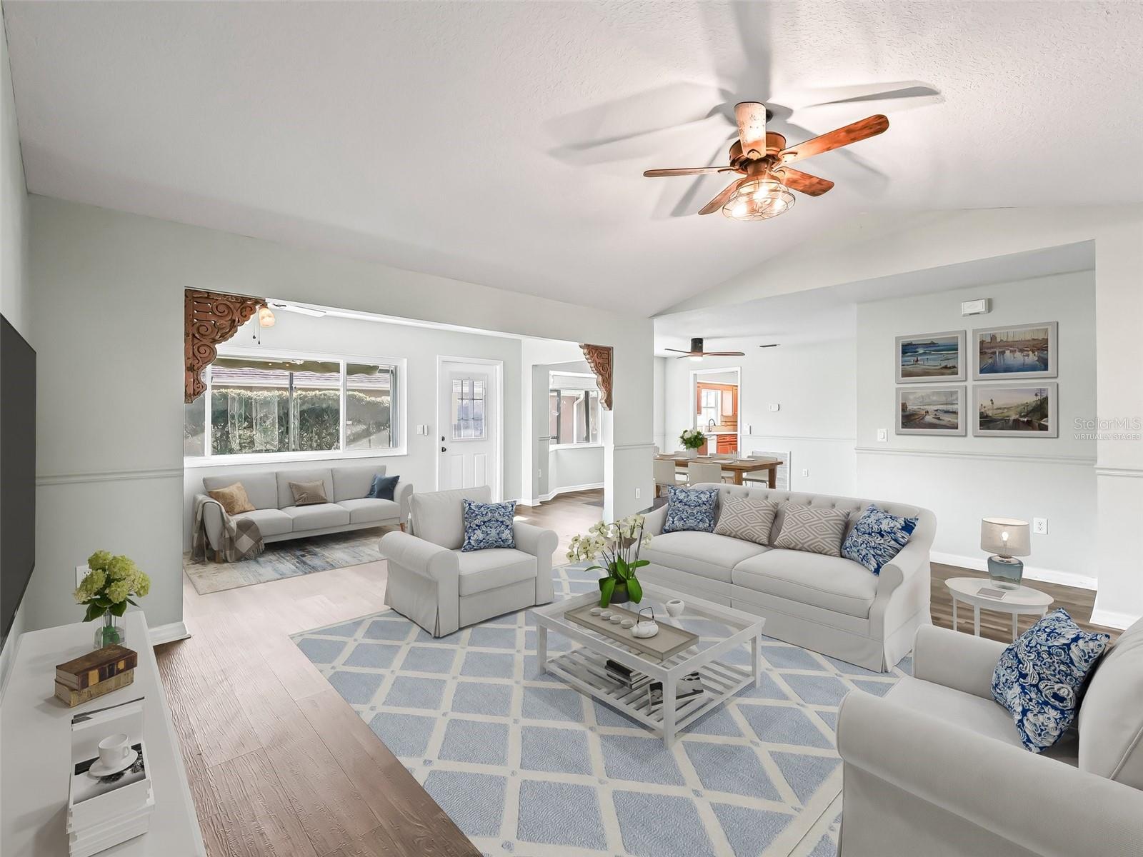 Uma ou mais fotos foram virtualmente encenadas. STONECREST é uma comunidade com mais de 55 campos de golfe com todas as comodidades e a apenas uma ponte de carrinho de golfe para as aldeias! Charmosa casa 2/2 personalizada de blocos de concreto e estuque em um grande terreno de esquina com garagem para 2 carros + carrinho de golfe! TELHADO 2024! Impressionante entrada frontal coberta com uma nova porta elegante de vidro com chumbo! Você vai adorar esta planta de conceito aberto com muita luz natural, perfeita para receber amigos e família! Esta casa personalizada bem equipada possui nova pintura externa, nova pintura interna, novo aquecedor de água quente, tetos abobadados, novo piso de pranchas de vinil de luxo, sem carpete, 12 novas janelas (2011), nova porta de garagem (2019) e uma fantástica vida ao ar livre Espaço! A planta baixa oferece privacidade tanto para os proprietários quanto para seus hóspedes, com a suíte principal comandando um lado da casa, enquanto o quarto de hóspedes e o banheiro de hóspedes estão localizados no lado oposto da casa. A suíte principal oferece um banheiro privativo com box amplo, closet e uma penteadeira de bom tamanho! Desfrute de muito espaço na cozinha iluminada e iluminada que possui clarabóia, backsplash de azulejos, armários de madeira, muito espaço no balcão e uma enorme despensa com embutidos! Perto da área de estar principal, retire-se para o seu próprio oásis privado ao ar livre, no enorme pátio traseiro coberto da Birdcage com paisagismo de privacidade, melhorando a experiência de vida ao ar livre! Desfrute de churrascos ao ar livre, jantares ao pôr do sol e do lindo clima da Flórida! A Extended Driveway é perfeita para carregar seu trailer ou fornecer amplo estacionamento para amigos e familiares! Stonecrest é um condomínio fechado com mais de 55 campos de golfe com todas as comodidades, piscinas, quadras de pickleball, softball, campo de golfe profissional de 18 buracos, Broad Stripes Golf & Social Club e mais de 80 clubes diferentes para participar! Stonecrest fica a apenas uma ponte de carrinho de golfe para as Aldeias. É uma comunidade com Estradas Privadas e Segurança 24 Horas! Como um condomínio fechado com campo de golfe privado, você pode esperar um alto nível de privacidade e segurança. No geral, esta casa oferece uma combinação de enorme espaço ao ar livre, recursos luxuosos, uma localização desejável e um ambiente comunitário seguro. UM ESTILO DE VIDA MARAVILHOSO ESPERA POR VOCÊ EM STONECREST!
