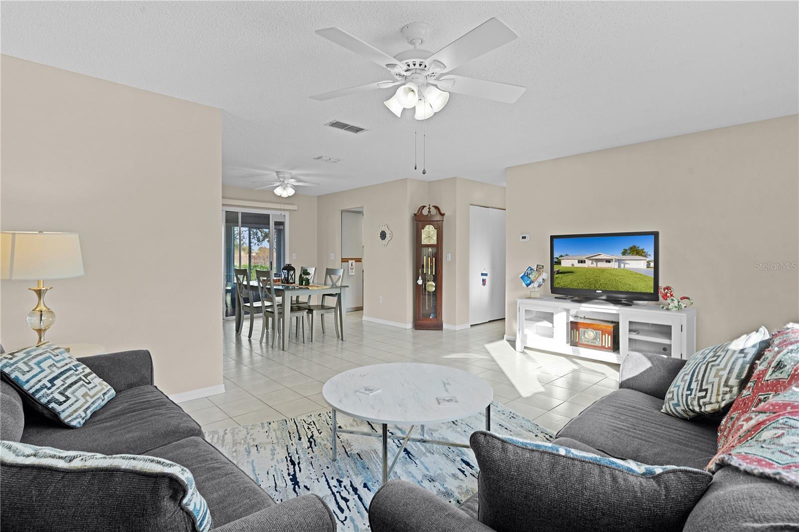 ~ TELHADO 2022 ~ ~ LANAI FECHADO EM VIDRO ~ ~ GARAGEM PARA 2 CARROS ~ Bem-vindo a esta encantadora casa modelo FIR, que oferece 2 quartos e 2 banheiros, e uma variedade de recursos perfeitos para uma vida confortável e divertida. Entre para descobrir PISOS DE CERÂMICA que fluem perfeitamente em todos os ambientes, criando uma aparência coesa e elegante. A ESPAÇOSA SALA DE ESTAR e a área de jantar formal oferecem amplo espaço para receber reuniões ou desfrutar de noites tranquilas. Abra as portas de vidro para acessar a LANAI FECHADA DE VIDRO E COM AR CONDICIONADO, um local ideal para relaxar durante todo o ano. Adjacente à varanda, o PÁTIO COBERTO tem vista para um QUINTAL ESPAÇOSO E PRIVADO, perfeito para grelhar, relaxar ou desfrutar de sua bebida noturna favorita sob as estrelas. A COZINHA ESTILO GALÉ é funcional e convidativa, com muitos armários, eletrodomésticos modernos (geladeira 2020 e fogão GE 2023), backsplash de azulejos e um aconchegante ESPAÇO DE COMER - perfeito para café da manhã ou uma pausa rápida para o café. Retire-se para o quarto principal, completo com WALK-IN CLOSET, ventilador de teto e banheiro privativo com chuveiro WALK-IN, armário de roupa de cama e uma NOVA CÔMODA. O segundo quarto de tamanho generoso oferece um espaço confortável para os hóspedes, com o segundo banheiro convenientemente localizado no final do corredor com uma NOVA CÔMODA, NOVO CHUVEIRO e uma combinação de banheira/chuveiro. Os destaques adicionais incluem uma GARAGEM GRANDE PARA 2 CARROS com PISO EPÓXI durável e novas rodas e molas na porta da garagem. A lavandaria fica na garagem e dispõe de eletrodomésticos WHIRLPOOL. A fossa séptica foi bombeada em 2023, 7 telas foram substituídas, o sistema de irrigação foi atualizado para ficar acima do solo e todos os ventiladores de teto foram substituídos. O TELHADO é 2022, o HVAC é 2018 e o Aquecedor de Água Quente é 2009. Spruce Creek South é um carrinho de golfe acessível a inúmeras lojas, restaurantes e serviços médicos, incluindo Walmart, Lowe's e muito, muito mais. Não perca a oportunidade de tornar sua casa lindamente cuidada e aproveitar tudo o que Spruce Creek South tem esperando por você!