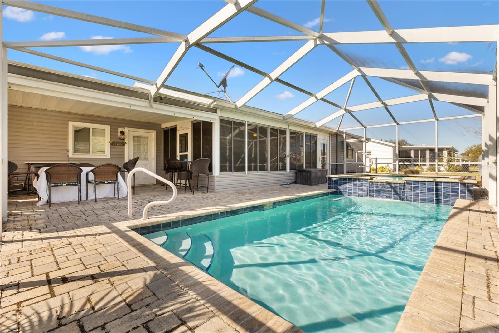 Um achado raro! ~~ Piscina em casa ~~ Na popular comunidade Spruce Creek South, a uma curta distância ao norte da Praça da Cidade de Spanish Springs, as aldeias! Novo telhado 2024 com garantia vitalícia, novo A/C 2024, novo aquecedor de água quente 2025 com um reforço para água quente instantânea, novas portas francesas que levam à sala da Flórida. O teto de pipoca foi removido !! Sistema Solar - A conta elétrica atual é de US $ 40 por mês! Turnkey 2/2 com sala de Florida controlada por clima fechada 24x12, piscina de água salgada de 20x10 e banheira de hidromassagem de spa 8x7 com queda de água, área de ave de pátio coberta de 20x12, totalmente fechada 38x19 pássaro com pavimentador de pátio. Há uma área cercada para seus membros peludos da família. A suíte primária possui um grande closet. Está em uma área tranquila em direção à parte de trás do bairro. Perto do clube, que possui uma sala de banquetes, sala de fitness e sala de bilhar. Você não ficará sem coisas a fazer com quadras de tênis, quadras de shuffleboard, parque de cães, etc. O campo de golfe Links está próximo e a casa fica ao lado do campo de softbol da comunidade. A comunidade também possui caixas de estacionamento e reciclagem de trailers.