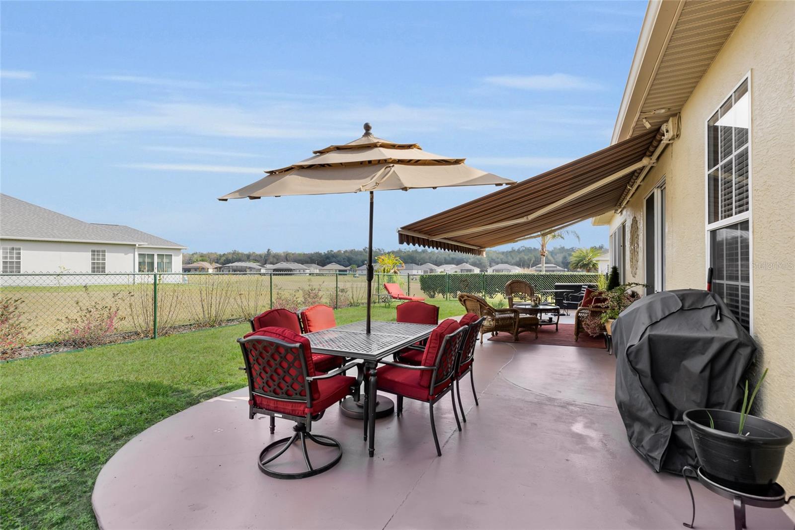 Bem -vindo à sua casa de sonho com privacidade traseira, dois carros de carro + golfe garagem no combate divertido, com 55 mais comunidade de Stonecrest! Esta casa expandida 3/2 impressionante e totalmente atualizada é uma obra -prima do luxo moderno, com atualizações excepcionais e design atencioso. A partir do momento em que você chega, observe o exterior recém -pintado, a entrada decorativa expandida (Parks 6 carros). Entre pela porta da frente de vidro personalizada e seja recebida por tetos altos de 10 pés e moldagem por coroa. Aproveite o ar livre que vive no grande pátio traseiro coberto com um toldo elétrico, a cerca da corrente para manter os amigos peludos em segurança e com vista para o espaço verde de 4 acres com 2 lagoas, um caminho de caminhada de 1,5 milhas para a piscina de Meadows e o parque de cães. A planta aberta conecta perfeitamente os espaços de estar a uma grande sala familiar com vista para o pátio e a lagoa ao ar livre, criando uma atmosfera brilhante e arejada. As áreas de estar e jantar são adornadas com laminado de madeira e pisos de ladrilhos grandes e tetos de bandeja na sala de jantar, acrescentando um toque de sofisticação. A cozinha dos chefs é um sonho tornado realidade, apresentando uma grande ilha central para o cozinheiro da família, as bancadas de Corian e uma pia dupla profunda com um sistema de água de filtragem de osmose reversa ll, tetos estendidos, moldagem por coroa, backsplash de ladrilhos e muito mais. Os armários personalizados do piso ao teto extra fornecem um monte de armazenamento de despensa. A luxuosa suíte primária é um retiro em si, com tetos altos, piso de carpete, moldagem por coroa e 2 armários personalizados. O banheiro privativo é igualmente impressionante, com tetos abobadados, piso de azulejos, bancadas de quartzo, grande tampo de vaidade com pias duplas, uma banheira de imersão independente, um armário de água privado e um chuveiro de caminhada. No lado oposto da casa, há dois quartos adicionais, cada um com tetos altos, proporcionam privacidade e conforto para a família e os hóspedes. O banheiro de hóspedes possui armários personalizados e um chuveiro. Em frente aos quartos de hóspedes está a lavanderia com armários de chão ao teto, com uma mesa dobrável de granito de 5 ', pia de lavagem e mais armários sobre a lavadora e secadora. Saia para o grande embrulho em torno do pátio perfeito para cozinhar e divertir. As características adicionais desta casa incluem um grande escritório/escritório ou sala de jogos com piso de azulejos de cerâmica e uma grande porta deslizante que leva à sala da família. A excepcional garagem de dois carros de dois carros, possui tetos de 10 ', armazenamento aéreo elétrico personalizado. Atualizações recentes para esta propriedade excepcional incluem um novo telhado (2023), HVAC Central System (2014), Mitsubishi HVAC (2023). A comunidade de 55 campos de golfe Stonecrest apresenta quatro piscinas, 12 quadras de bola de picles, 4 quadras de tênis, bola de bocha, shuffleboard, bilhar, campo de softball e atividades ilimitadas e entrada de 24 horas para privacidade e segurança. Convenientemente localizado a apenas uma curta viagem de golfe até as aldeias fora do US-441/27 com uma abundância de compras, restaurantes, bancos e médicos, ligue hoje para agendar seu show privado menos
