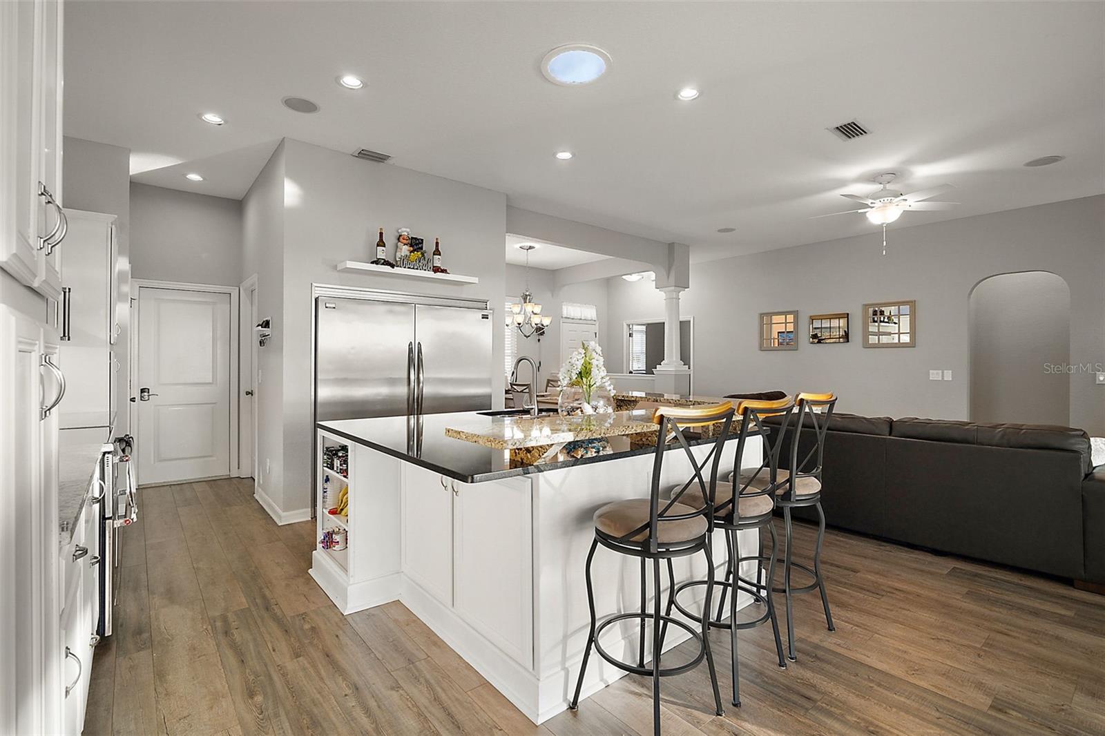 A casa de piscina/spa construída personalizada apresenta vistas incríveis do campo de golfe e dois lagos na comunidade de golfe desejável de Stonecrest. Esta casa possui tetos altos de 10 ', portas arqueadas e quartos grandes com 3 quartos, 3 banheiros e uma sala de bônus. Após a entrada, você tem uma visão panorâmica da paz e tranquilidade. O orgulho da propriedade brilha ao longo desta casa bem mantida com tantas atualizações (consulte a lista)! A cozinha gourmet possui utensílios de aço inoxidável de KitchenAid, um enorme geladeira/freezer da Galeria Frigidaire enorme, balcões de camadas duplas de superfície sólida, impressionantes backsplash diagonal de vidro ladrinos, iluminação aérea e sob a iluminação do armário, construídas em prateleiras, além de 2 passagens. A casa não tem carpete, com pisos de vinil de luxo de grãos de madeira mais recentes por toda parte, e o interior recentemente pintado em Repose Grey. O espaçoso EN-suite primário desliza portas de vidro e tons remotos de grife. Banho anexado como spa apresenta uma banheira de jardim, vaidade dupla, espelhos de LED e complementando e iluminação aérea com um chuveiro de ladrilhos e armário de água separado, além de um armário de designer embutido e prateleiras adicionais para armazenamento. O lado de hóspedes separado da casa oferece dois quartos grandes com armários espaçosos. Há um banho perto de cada quarto oferecendo privacidade aos seus convidados. Um dos banhos também funciona como o banho da piscina e ambos têm chuveiros e muito armazenamento de vaidade. Sala de jantar formal com coluna e iluminação atualizada para entretenimento. A sala de bônus tem portas francesas elegantes e pode ser usada como estudo, sala de mídia, academia etc. A casa é leve, brilhante e alegre. O exterior apresenta outros recursos incríveis, como áreas de grandes dimensões, para relaxar com armários externos que abrigam um grande controle remoto de TV e piscina/spa. A piscina de água salgada oferece uma plataforma de sol e uma mesa de bar com 3 assentos. Ou aproveite o spa embutido, entretê -lo ou familiares e aprecie as vistas espetaculares ou um dos cenários de sol de tirar o fôlego. Os amantes de pássaros podem ver regularmente gansos do Canadá, guindastes de areia, águias, corujas barradas (que visitam o recém -podado Oak Tree nas costas), vários tipos de falcões e muito mais! Não se esqueça de que há uma garagem de 2 carros com garagem adicional para carrinho de golfe e paisagismo personalizado. A comunidade fechada de mais de 55 anos de Stonecrest abriga um campo de golfe de 18 buracos e não tem CDD ou Bond. As comodidades incluem um clube, fitness center, 1 piscina interna, 3 piscinas externas, pesca em Crestview Lake, quadras de pickleball, quadras de tênis, quadras de bocha, quadras de shuffleboard, campo de softbol, parques de cães e mais de 75 clubes diferentes. A menos de 5 quilômetros das aldeias e da Praça da Cidade de Springs espanholas. Tantas atualizações: novo telhado (2020), calhas sem costura (2025), painel elétrico atualizado com proteção inteira de surto doméstico (2025), HVAC (2018) e totalmente atendido/limpo com o filtro de luz UV instalado (2025). O carvalho grande nas costas foi podado por um arborista certificado (2025) e fornece eficiência/economia energética ao obter todas as vistas deslumbrantes do pôr -do -sol, mas o Lanai e o chão de casa são protegidos pela sombra da tarde do carvalho. Sistema de irrigação totalmente inspecionado/mantido (2025) para que o sistema esteja em uma condição superior da ponta. O Listing Agent é um proprietário e oferece uma garantia doméstica no valor de US $ 600 válida até 11/01/25 incluída pela antiga empresa de proteção doméstica da República. Agende sua consulta hoje para uma turnê pessoal, antes que esta incrível casa funcione!