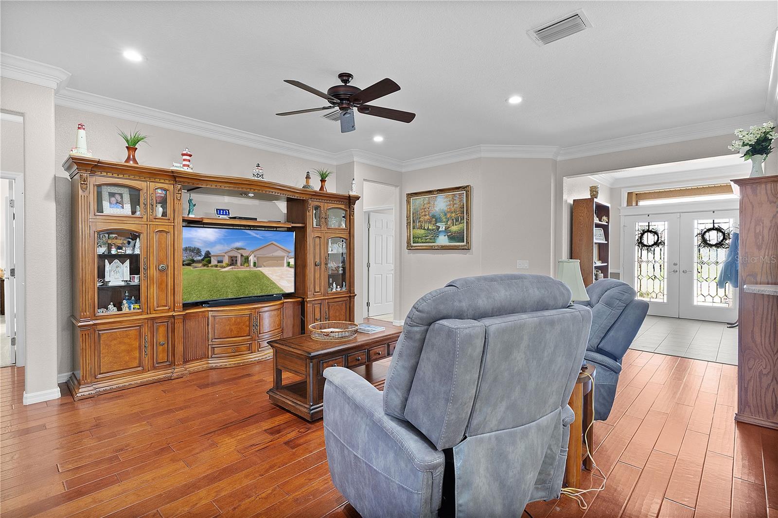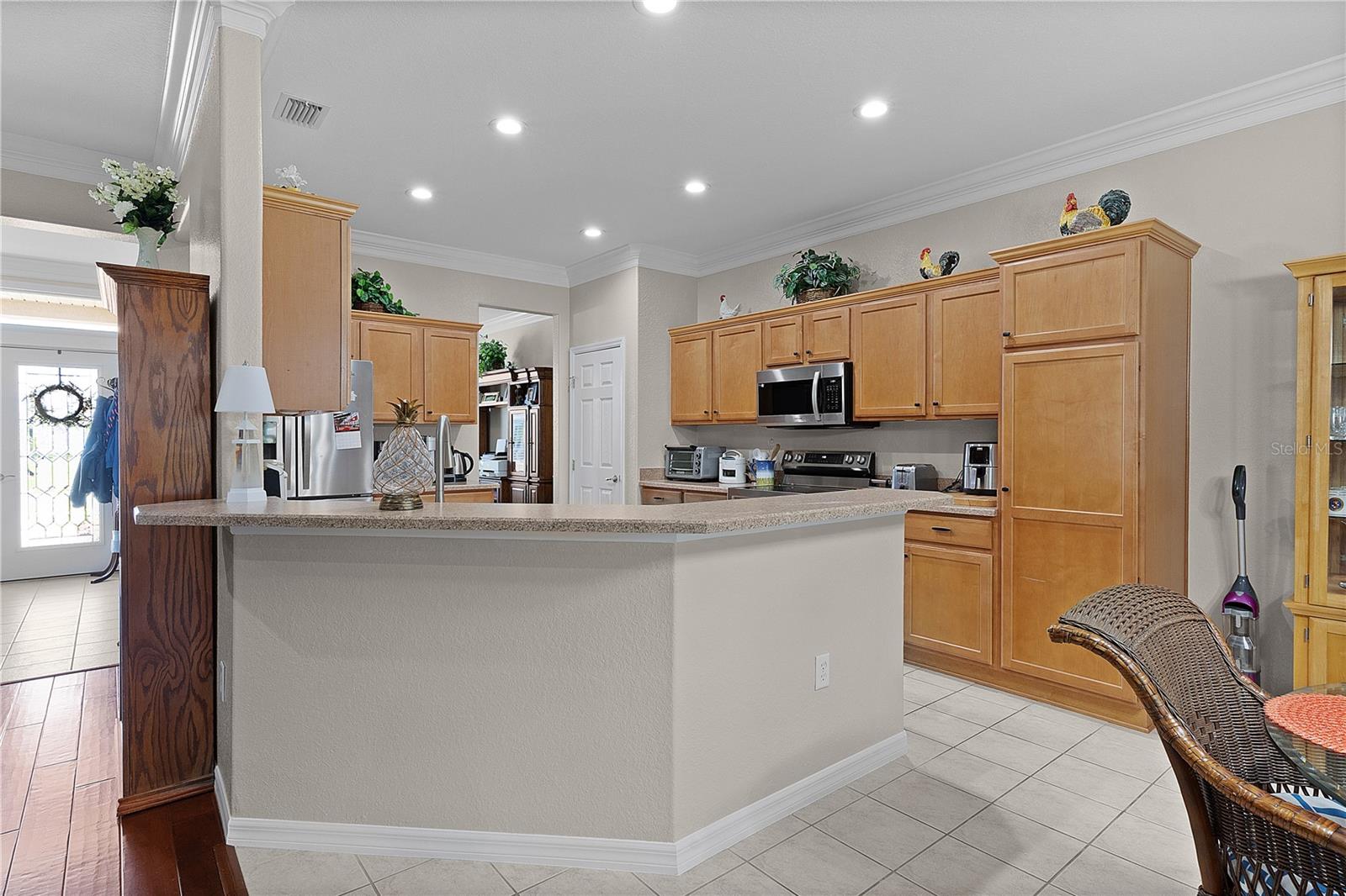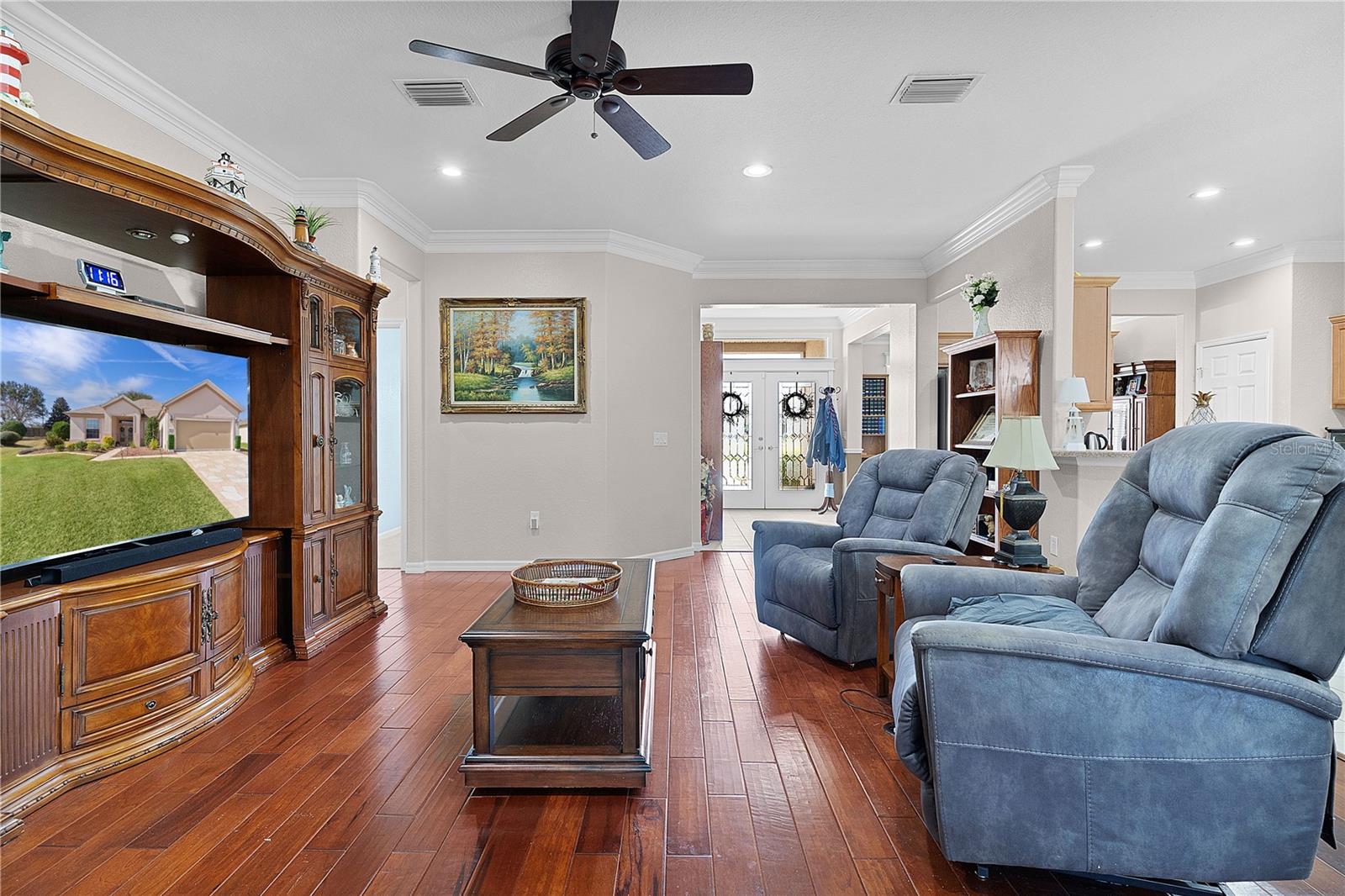 Modelo Hanover impressionante em Del Webb Spruce Creek Golf & Country Club! Esta casa de bloco 3BR/2BA e estuque oferece uma espaçosa planta aberta com madeira de engenharia nas principais áreas de estar e azulejo de cerâmica em áreas úmidas. A grande sala grande é perfeita para relaxar ou divertir. A sala de jantar formal pode dobrar como uma cova ou escritório. A cozinha possui utensílios de aço inoxidável mais novos, armários amplos, uma barra de café da manhã e um recanto aconchegante com vista para o quintal privado e paisagístico. A suíte do proprietário inclui um closet e banho de suíte. Dois quartos de hóspedes estão perto de um segundo banho completo - ideais para os visitantes. -Decloque ao ar livre que vive na grande parte fechada com piso de ladrilho e portas de vidro deslizantes. Recursos adicionais: -Novo telhado (2023) -Now hvac (2020) -Cown moldagem por toda parte -Natural de calor, aquecedor de água e secador -Garagem de 2 carros com excesso com armazenamento no sótão puxado e portas deslizantes de tela rastreada -Andulação estampada com redução de concreto e paisagismo de concreto atualizado Localizado em um círculo tranquilo e amigável, em uma comunidade de mais de 55 horas de guarda de mais de 45 quilômetros ao norte das aldeias. Desfrute de piscinas internas e externas, fitness center, tênis, pickleball, bocha, softbol, bilhar, salão de baile, salas de hobby e muito mais! Com 3250 casas, Del Webb Spruce Creek é totalmente construído e bem mantido. Mudar-se pronto e preços para vender. Não perca esta oportunidade - Escreva sua exibição particular hoje!