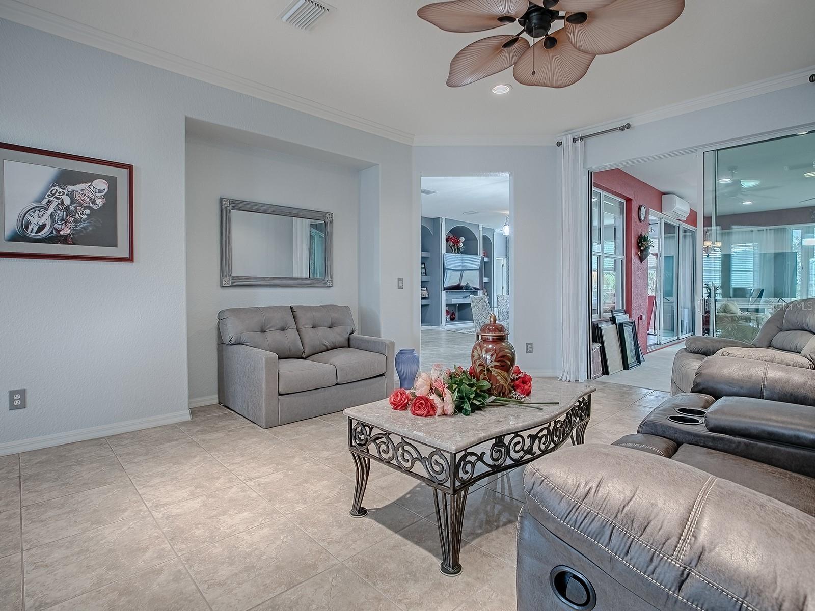 Experimente o campo de golfe vivendo o seu melhor neste elegante modelo Lexington, perfeitamente situado no Fairway #4 do Memorial Golf Course. Esta espaçosa casa de 3 quartos e 2 banheiros com uma cova oferece um layout cuidadosamente projetado com ladrilhos de cerâmica por toda parte, exceto no quarto principal, um quarto de hóspedes e o estudo/covil. A cozinha é o sonho de um chef, com bancadas do zodíaco, utensílios de aço inoxidável, armários com lançamentos, uma mesa embutida, uma ilha e uma barra de café da manhã. Os detalhes arquitetônicos incluem moldagem por coroa no vestíbulo, salas de estar e jantar e quarto principal, que também possui um teto de bandeja para adicionar elegância. O grande Lanai fechado oferece conforto durante todo o ano e leva a um amplo pátio pavimentado com uma parede de privacidade, perfeita para o relaxamento ao ar livre. A garagem oferece muito espaço, incluindo uma garagem separada para carrinho de golfe. As atualizações recentes incluem um novo telhado (2020), HVAC (2019) e Re-Piping (2017). Esta é uma casa imperdível-schedule sua exibição hoje!
