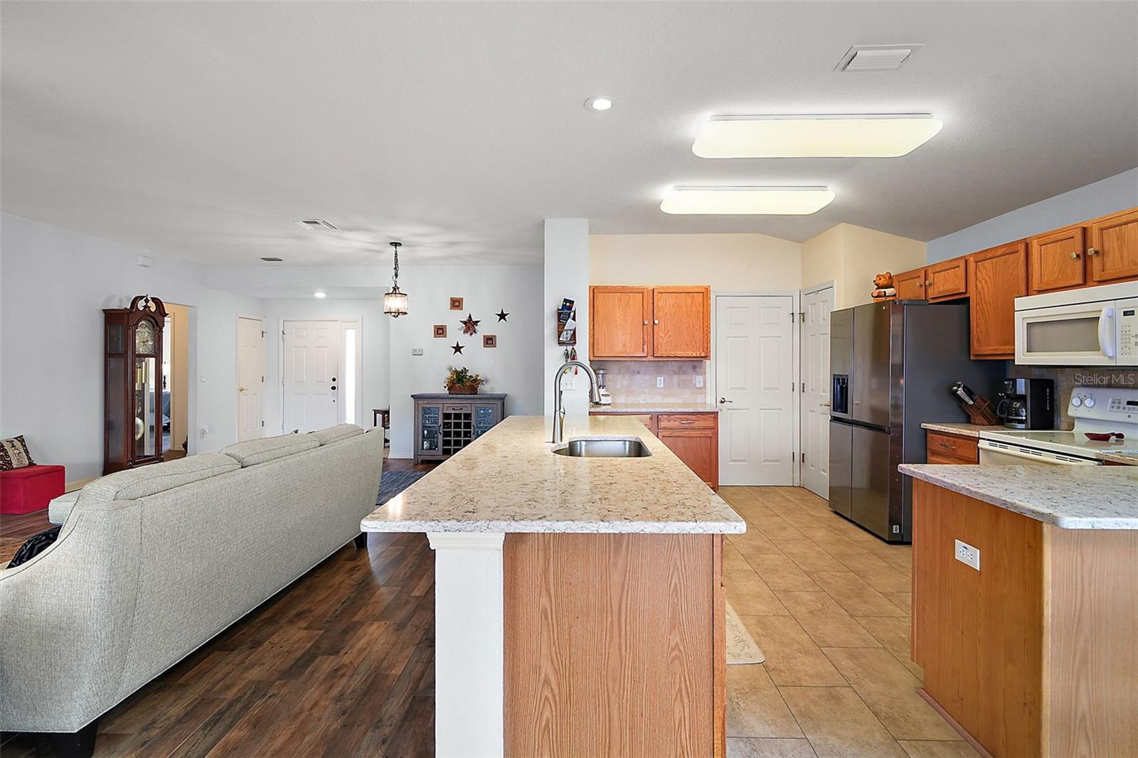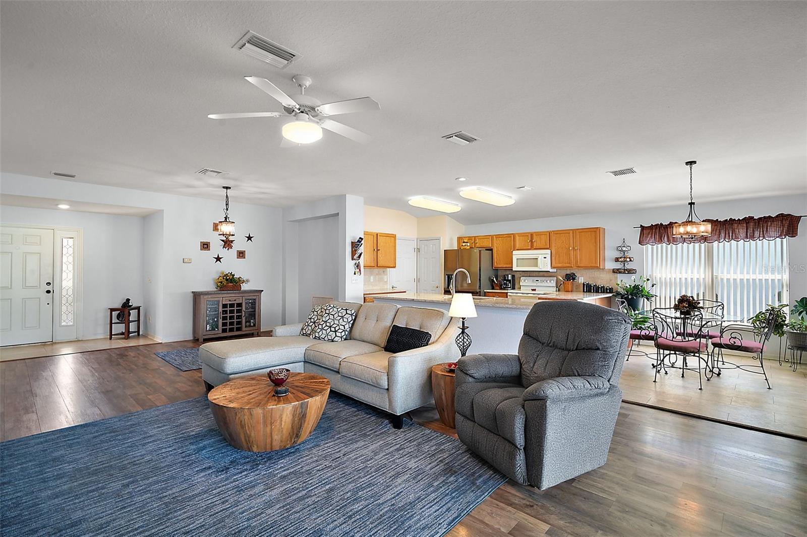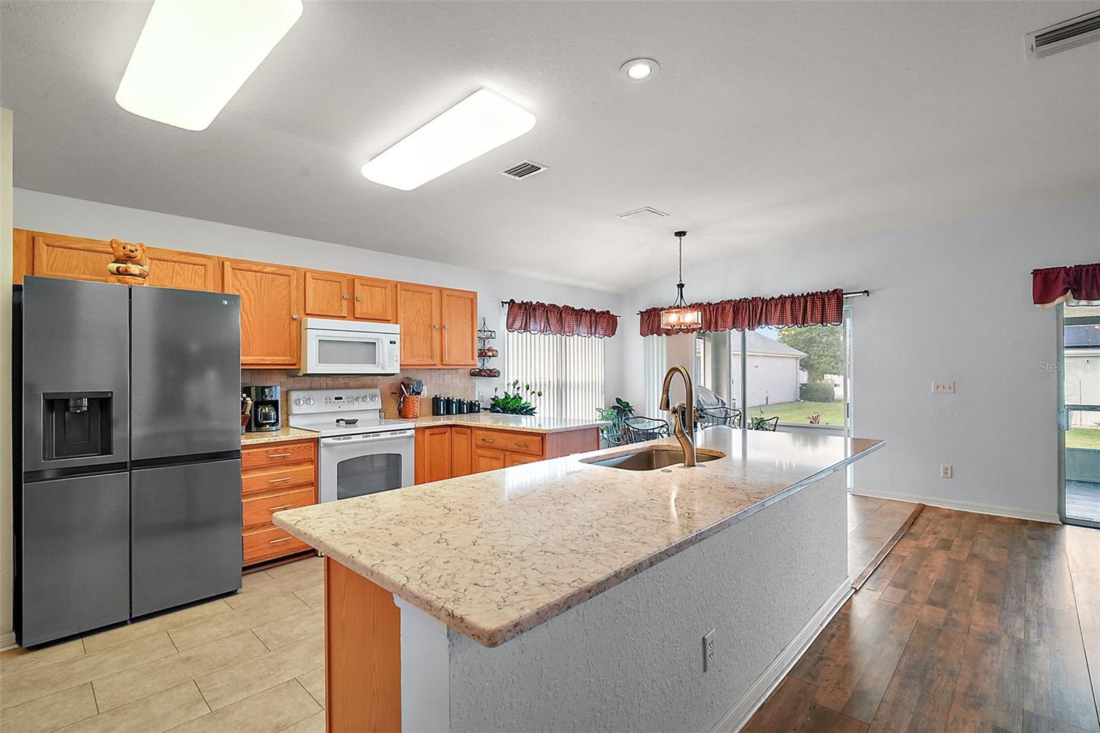 3/2 Modelo de bloco/estuque Elkridge no lote de esquina localizado em 55 mais comunidades de Del Webb Spruce Creek Golf and Country Club. Esta casa meticulosamente mantida possui um novo telhado (2022), sótão re-recompensado (2022), exterior recém-pintado, calçada de revestimento duplo fresco e uma unidade CA (2016) que é reparada a cada 3-4 meses. Entre para encontrar o piso plano aberto com piso novo na área de estar principal (abril de 2025), sala de jantar com uma nova luminária e um novo ventilador de teto. A cozinha espaçosa apresenta novas bancadas em granito, grande estação de ilha e café/lateral, backsplash de ladrilhos, armários de carvalho, nova geladeira, nova máquina de lavar louça, novo microondas, novo descarte de lixo, despensa de armário, piso de vinil à prova d'água e um recanto em inverno com porta deslizante para a Lanai. Fora da cozinha está a lavanderia interna com combinação de lavadora/secadora e prateleiras. O quarto principal possui um banheiro novo e na suíte, que apresenta um chuveiro ampliado atualizado com porta de vidro deslizante, closet, pia dupla com bancadas em granito, vaso sanitário novo e pintado recém-pintado. Os dois quartos de hóspedes têm armários e banheiro novo e de hóspedes possui uma combinação de banheira/chuveiro e nova bancada em granito. Duas portas deslizantes do recanto de jantar e da sala de estar levam ao lanai exibido com um novo ventilador de teto e piso de azulejos. Garagem para dois carros com escadas no sótão puxador e prateleiras extras que transmitem. Del Webb Spruce Creek é uma comunidade de golfe com 55 anos em Summerfield, FL! Esta comunidade vibrante oferece quatro campos de golfe de 9 buracos, piscinas internas e externas, banheiras de hidromassagem, fitness center, quadras de tênis e pickleball, campo de softbol, ferradura, armazenamento de RV/barco/campista e inúmeras atividades sociais. Os moradores desfrutam de um belo centro comunitário de 32.000 pés quadrados, trilhas para caminhada, um restaurante no local e mais de 70 clubes e grupos de interesse-perfeitos para um estilo de vida ativo e envolvente. Convenientemente localizado perto das aldeias, compras, refeições e instalações médicas, é a aposentadoria da Flórida que vive no seu melhor! Agende sua exibição particular hoje! *Vendedor oferecendo uma garantia de um ano para tranquilidade depois de fechar*