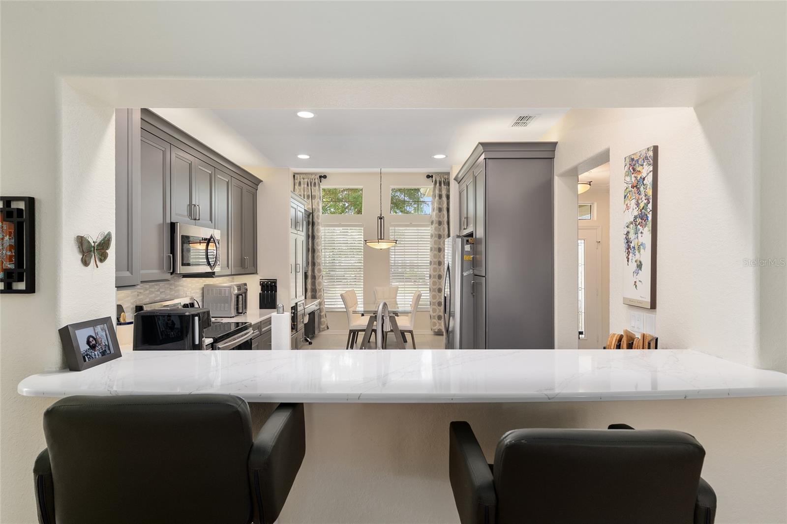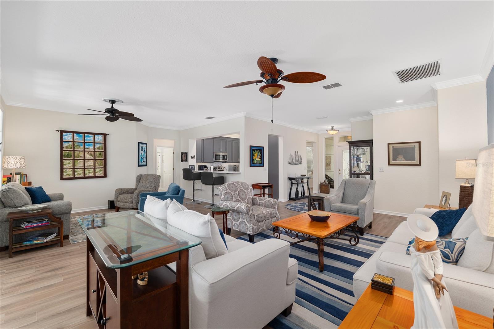Modelo Sanibel único no Greenbelt Private-deve ver! Bem-vindo a este modelo de Sanibel lindamente atualizado, perfeitamente situado em um lote sereno de cinto verde na comunidade procurada de Del Webb Spruce Creek. Esta casa de 2 quartos e dois banheiros com um covil foi cuidadosamente remodelada com acabamentos de ponta e toque de um designer. Entre para encontrar pisos de madeira projetados por toda parte, com ladrilhos personalizados nos banheiros. O coração da casa é uma cozinha gourmet, com bancadas de quartzo, armários personalizados com hardware atualizado, utensílios de aço inoxidável e um piso de ladrilhos deslumbrantes. A moldura da coroa destaca a espaçosa área de vida e jantar, que se abre para uma sala de Flórida reimaginada-agora sob calor e ar-com janelas de vidro, um piso de madeira engenhado que flui perfeitamente da grande sala, paredes de ver e uma ampla abertura criada pela remoção das portas de vidro deslizantes. É o espaço perfeito para relaxar ou entreter o ano todo o Den/Studio apresenta uma cama Murphy personalizada com prateleiras embutidas, fornecendo espaço flexível de hóspedes quando necessário. O banheiro de hóspedes foi totalmente remodelado com uma nova vaidade e piso personalizados, idealmente posicionados entre o segundo quarto e o Den for Privacy. A suíte primária está localizada no lado oposto da casa, oferecendo janelas de sacada que enquadram vistas tranquilas dos pinheiros altos e do cinturão verde além. A sala de serviços públicos inclui armários personalizados e um espaço de trabalho, perfeito para hobbies ou organização. Desfrute de uma garagem estendida de 27 pés com uma tela com controle remoto, permitindo que o ar fresco circule enquanto mantém a privacidade. Ao ar livre, um grande pátio convida você a relaxar, grelhar, desfrutar de coquetéis ou ler - tudo enquanto mergulhou em vistas pacíficas do cinto verde. As atualizações recentes incluem um novo telhado (2018) e o sistema HVAC (2020). A Del Webb Spruce Creek oferece comodidades em estilo resort, incluindo 36 buracos de golfe, 10 quadras de pickleball, quadras de tênis, três piscinas (incluindo uma dentro de casa) e inúmeros clubes e atividades para se adequar a todos os interesses. Esta casa única não vai durar muito-faça o seu passeio privado hoje!
