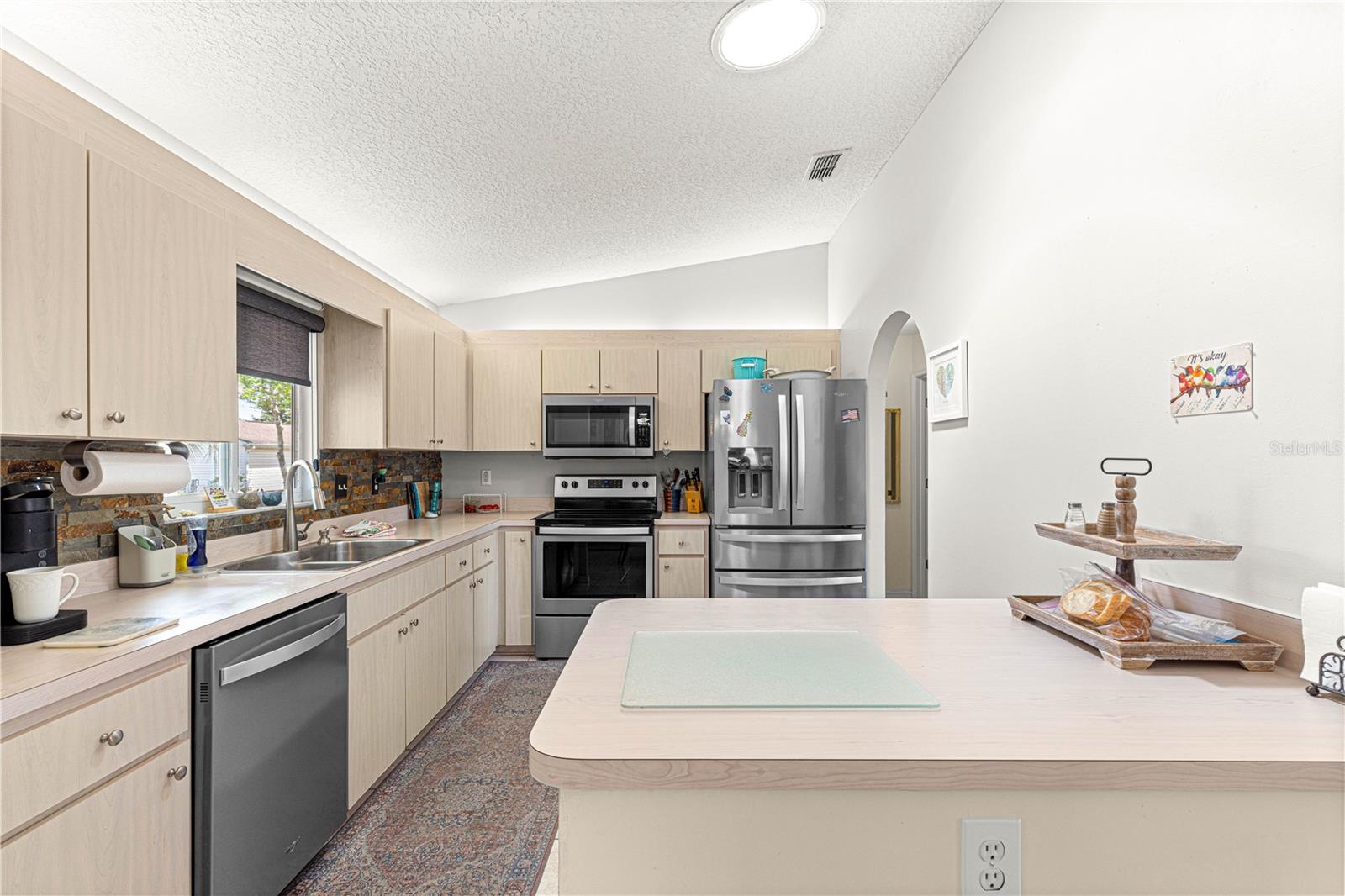 Esta casa espaçosa e atualizada está disponível para o terceiro quarto como um escritório. Este quarto tem uma porta arqueada para a sala de jantar e ótima para um escritório ou área de mídia. A casa também tem uma sensação aberta com a barra de café da manhã e muita área do gabinete. Novos pisos também foram instalados. Há uma sala aberta e brilhante da Flórida dentro e um pátio fora. Aparelhos inoxidáveis e barra de café da manhã e armazenamento extra fazem desta uma ótima cozinha para cozinhar e divertir. Designer backsplash e contador neutro de cima para fora desta cozinha. A sala Lanai ou da Flórida opera em sua própria zona dividida para o limpador de ar com eficiência de UV. O banheiro mestre de ladrilhos atualizado inclui um chuveiro com vidro de segurança pesada e banco de sentar. Existe um telhado do sistema de filtragem de água de casa inteira substituído em 2012. A localização é em direção à parte de trás da comunidade com uma lagoa de retenção próxima e ótima trilha natural para aquelas caminhadas longas e/ou curtas da tarde.
