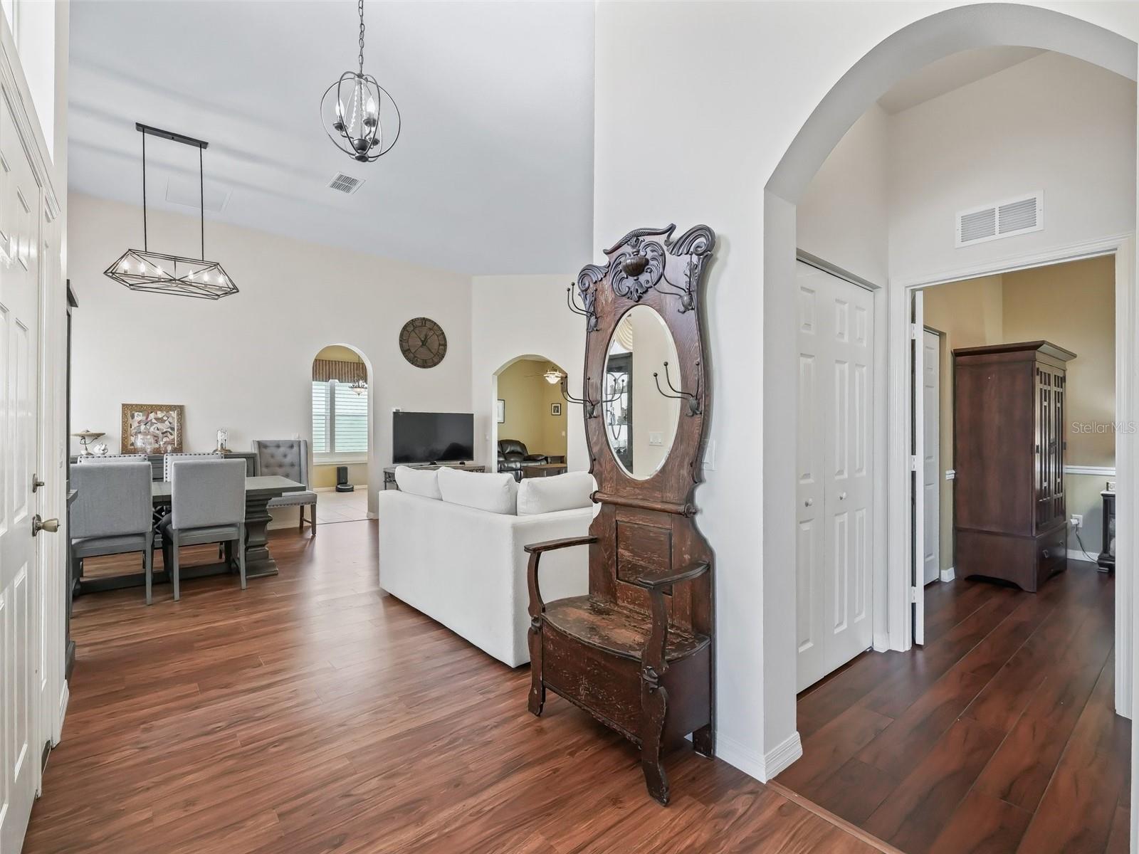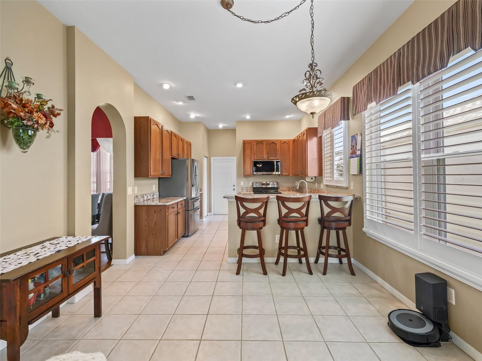 O Stonecrest é uma comunidade de campo de golfe com mais de 55 fechaduras, com todas as comodidades e 4 piscinas (uma interna), e a apenas uma ponte fora do carrinho de golfe para as aldeias! Este impressionante 3/2 St George oferece um tremendo apelo ao meio -fio, com uma garagem de pavimentadora de grife e passarela, paisagismo profissional de baixa manutenção, um lado de grande tamanho voltado para 2 carros e entrada frontal coberta. Ao entrar no hall de entrada, você é recebido por tetos altos de 10 ', uma linda área de jantar mostrando uma elegante luminária de designer e uma área de estar convidativa e convidativa, aprimorando a espaçosa planta de piso conceitual aberto. Sem tapete! O grande comer na cozinha possui aparelhos inoxidáveis, uma geladeira nova e microondas, armários de madeira ricos, bancadas em granito, bar de café da manhã, armário de despensa de tamanho agradável e ilha central. A cozinha flui perfeitamente para a sala familiar de tamanho agradável, criando um espaço excepcional para divertir a família e os amigos, e tem um acesso de porta deslizante ao Lanai fechado! A espaçosa suíte primária oferece um closet e banheiro da suíte. O luxuoso banheiro da suíte possui 2 vaidades, uma grande banheira de imersão, armário de linho e um passeio no chuveiro. O quarto dois possui um tamanho de tamanho de bom tamanho, e o quarto 3 pode ser usado como um covil, proporcionando muito espaço para seus convidados se sentirem confortáveis. O banheiro de hóspedes mostra uma vaidade de tamanho agradável e uma nova caminhada no chuveiro! Retire para a paz do vidro fechado Lanai, o espaço adicional perfeito para desfrutar de noites relaxantes e imersão nas vistas espetaculares do pôr do sol! Telhado 2018! Se você está procurando uma casa bem projetada com uma fantástica planta de piso conceitual aberto, este é o lar para você! Stonecrest é uma comunidade de campo de golfe com mais de 55 fechaduras, com todas as comodidades, piscinas, quadras de pickleball, softball, campo de golfe de 18 buracos, clube de golfe e mais de 80 clubes diferentes para participar! Stonecrest fica a apenas uma ponte de carrinho de golfe para as aldeias. É uma comunidade com estradas particulares e segurança 24 horas! Como uma comunidade privada de campo de golfe, você pode esperar um alto nível de privacidade e segurança. No geral, esta casa oferece uma combinação de planta bem projetada, recursos luxuosos, um local desejável e um ambiente de comunidade seguro. Um estilo de vida maravilhoso espera por você em Stonecrest!
