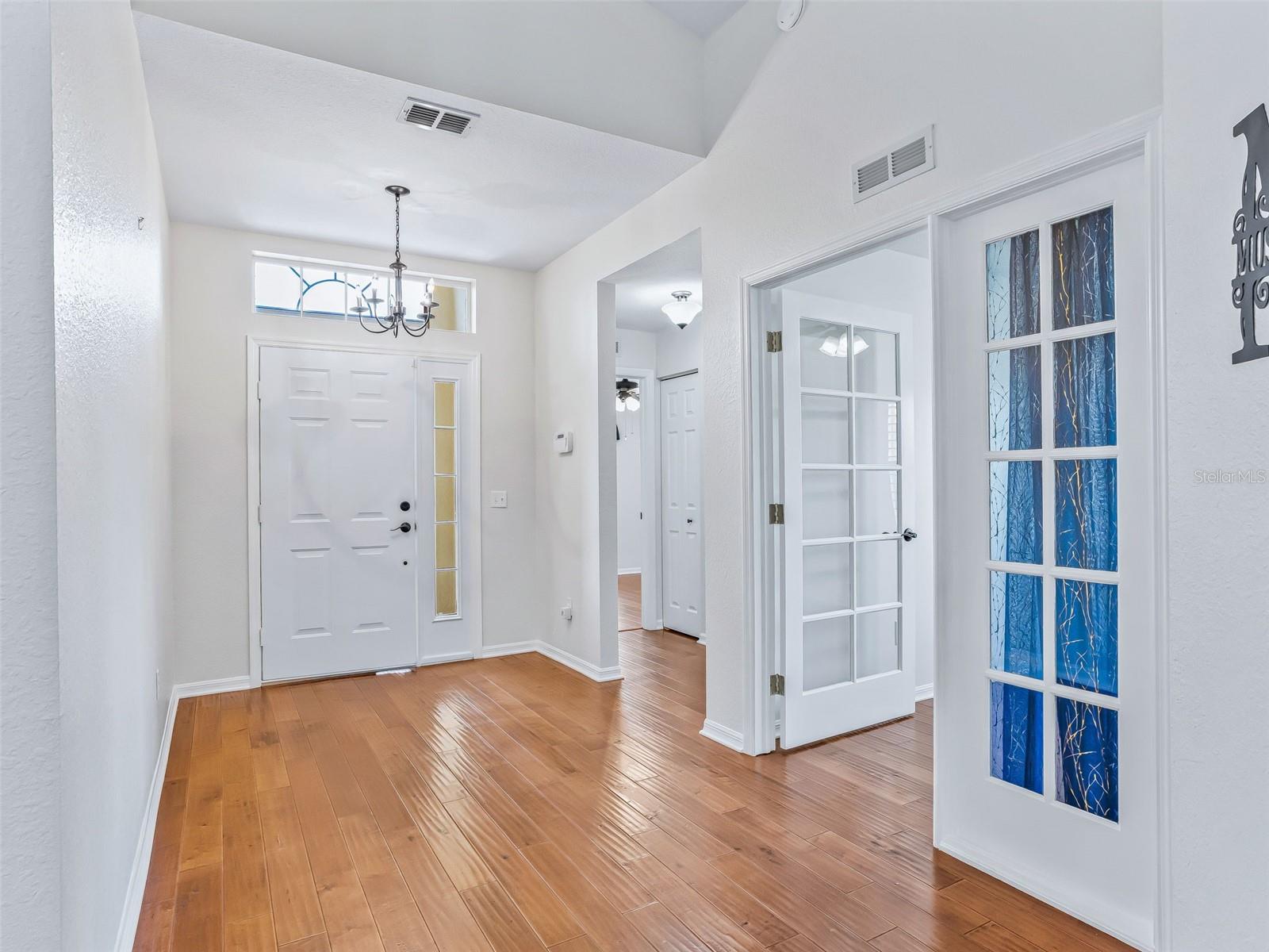 Uma ou mais fotos foram virtualmente encenadas. Stonecrest é um condomínio fechado com mais de 55 campos de golfe com todas as comodidades e 4 piscinas (uma coberta) e apenas uma ponte de carrinho de golfe para as aldeias! Modelo excepcional de bloco de concreto 3/2 e estuque Pebble Beach em um grande lote de esquina com uma garagem de grandes dimensões de 24' x 30' e painéis solares totalmente pagos e para maior economia de energia! Esta casa inclui o sistema de backup solar para toda a casa Anker Solix F-3800 (instalado em dezembro de 2024) com dois geradores solares e quatro baterias de reserva para segurança completa de energia durante interrupções ou pouca luz solar. Sistema de painel solar Sunnova (instalado em 2020) que alimenta a casa durante o dia e carrega o sistema de backup. Ambos os sistemas são totalmente pagos – sem custos adicionais – e proporcionam contas de eletricidade extremamente baixas! As contas do atual proprietário são inferiores a US$ 100 por mês. Atualizações adicionais incluem novo HVAC (2022), sistema de filtragem de água para toda a casa, telhado (2019) e sem carpete, com pisos de madeira projetados por toda parte. No interior, desfrute de uma planta baixa de conceito aberto com tetos abobadados, iluminação de designer e pisos de madeira. As áreas de estar e de jantar fluem para uma varanda envidraçada com piso de cerâmica, perfeita para relaxar ou se divertir. A cozinha oferece bancadas de granito, backsplash de azulejos, eletrodomésticos de inox preto, armários de madeira, despensa e venezianas. A suíte principal possui closet e banheiro privativo com pias duplas, balcões de granito, banheira de imersão e box amplo de azulejos. Dois quartos adicionais (um com portas francesas) oferecem espaço para os hóspedes, complementados por um elegante banheiro com pia de granito e chuveiro de azulejos. A garagem de grandes dimensões de 24' x 30' inclui piso de epóxi, armários embutidos, porta de garagem isolada e um mini-split HVAC Mitsubishi para controle climático instalado em 2024. Do lado de fora, desfrute de paisagismo de baixa manutenção, calçada de concreto estampado e um retiro privado no quintal. Stonecrest é um condomínio fechado com mais de 55 campos de golfe com comodidades em estilo resort: quatro piscinas (incluindo uma coberta), pickleball, softball, academia, campo de golfe profissional de 18 buracos e mais de 80 clubes - todos com estradas particulares e segurança 24 horas. A apenas uma ponte de carrinho de golfe de The Villages! Uma ou mais fotos foram virtualmente encenadas.
