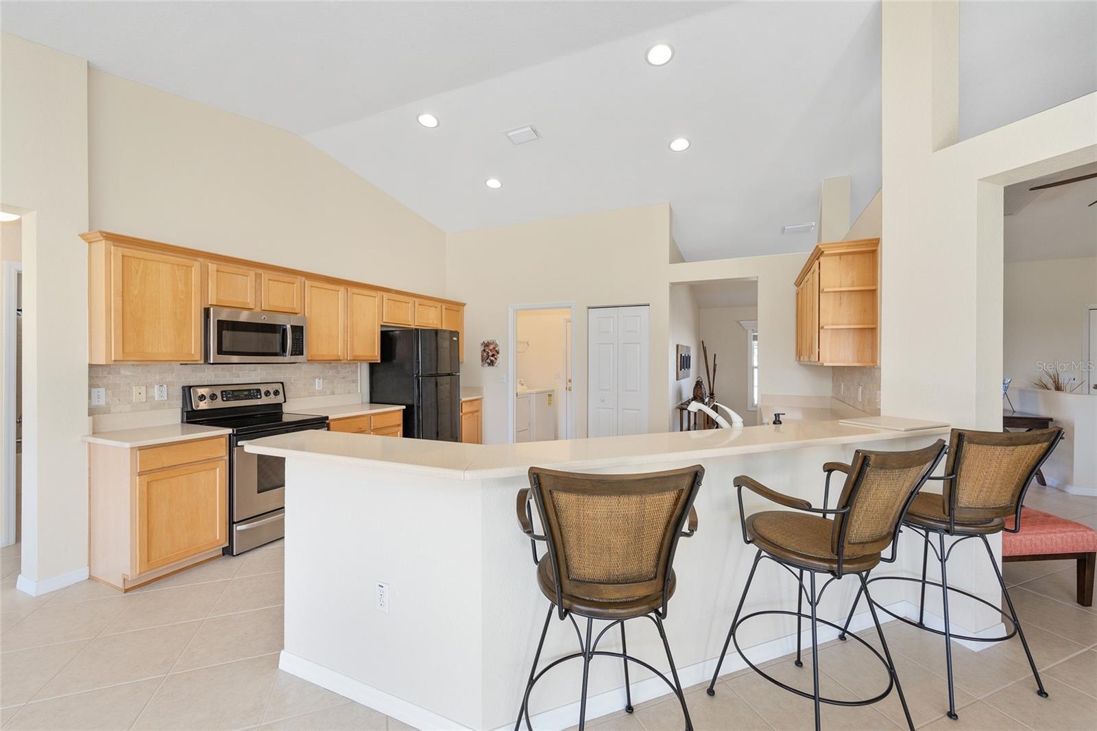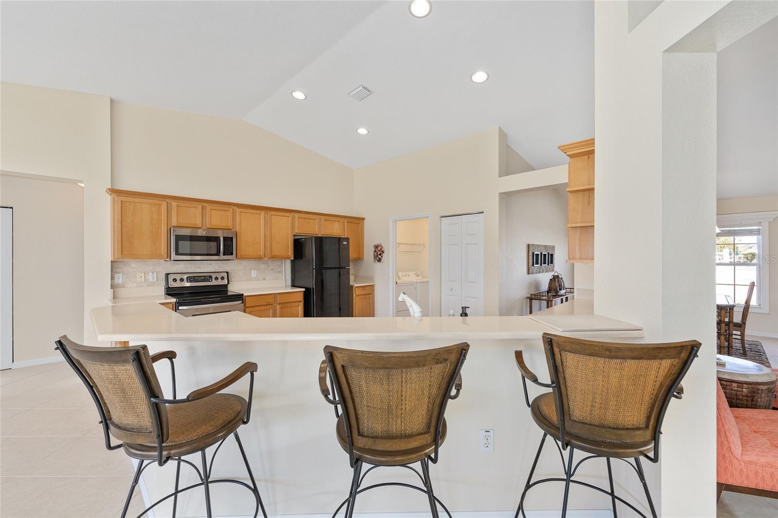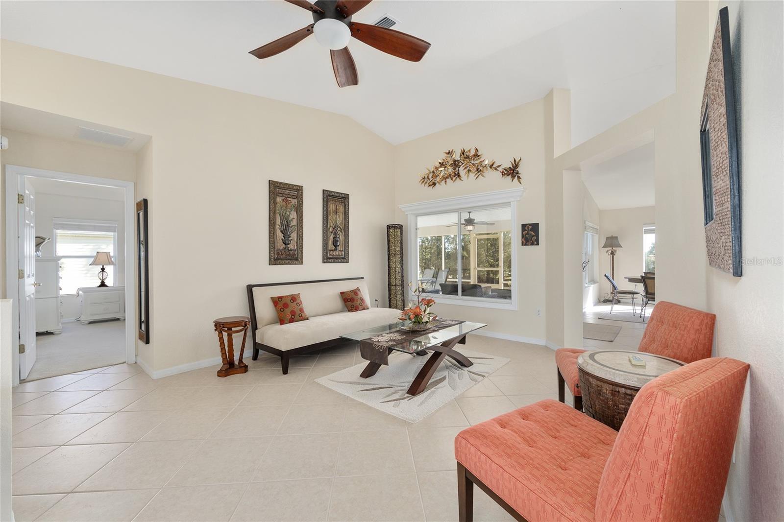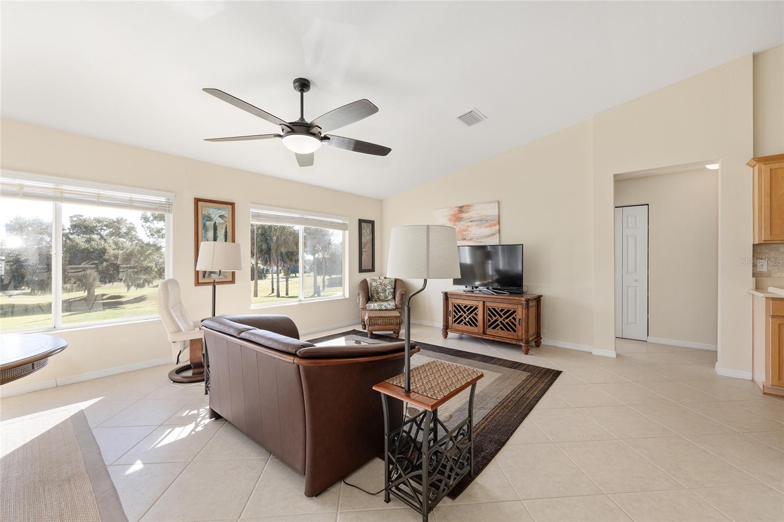 Depois de passar pela porta da frente deste modelo Providence de 3 quartos e 2 banheiros, você ficará instantaneamente cativado pela vista espetacular do Masters Golf Course. Esta casa desfruta de uma das melhores localizações da comunidade - em frente ao Horizon Pool e ao Horizon Center, com quadras de bocha e shuffleboard a poucos passos de distância e a apenas 3-5 minutos a pé do restaurante e campo de golfe Liberty Grille. A planta baixa convidativa inclui sala de estar, sala de jantar e sala de família, com design de quarto dividido para maior privacidade. O piso de cerâmica percorre todas as áreas de estar principais, enquanto os quartos são confortavelmente alcatifados. A cozinha possui abundantes armários de bordo, backsplash de azulejos, teto abobadado e muito espaço de trabalho para o chef da casa. A sala familiar e a grande varanda com tela aproveitam ao máximo as vistas deslumbrantes do campo de golfe - o local perfeito para relaxar ou se divertir. A suíte principal possui janelas salientes, armários duplos e banheiro privativo com pia dupla, chuveiro separado e banheira de imersão. Para os entusiastas do golfe, uma área verde e de chipping com bunkers fica a apenas 100 metros de distância. A garagem estendida de 24 pés inclui uma tela de privacidade e espaço extra para armazenamento ou área de trabalho. Com a sua localização soberba, vistas deslumbrantes para o golfe e uma planta bem desenhada, este modelo Providence é o que você estava esperando. Faça planos para vê-lo hoje!