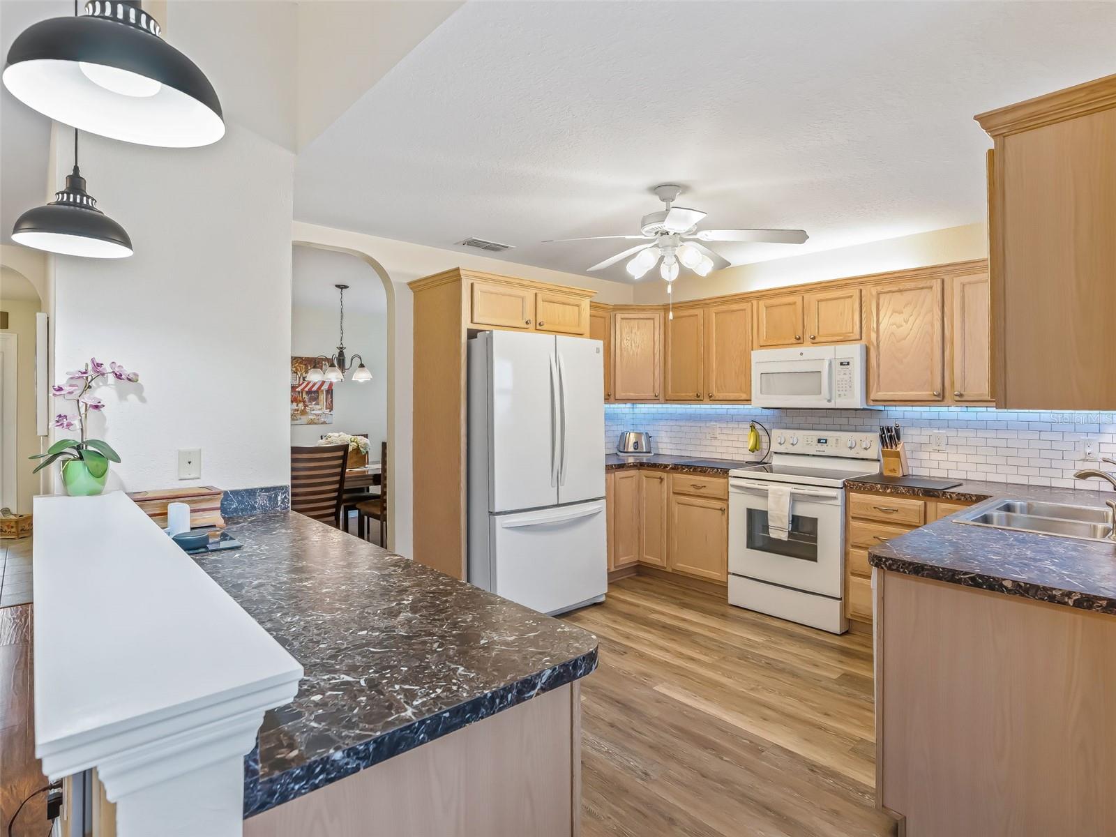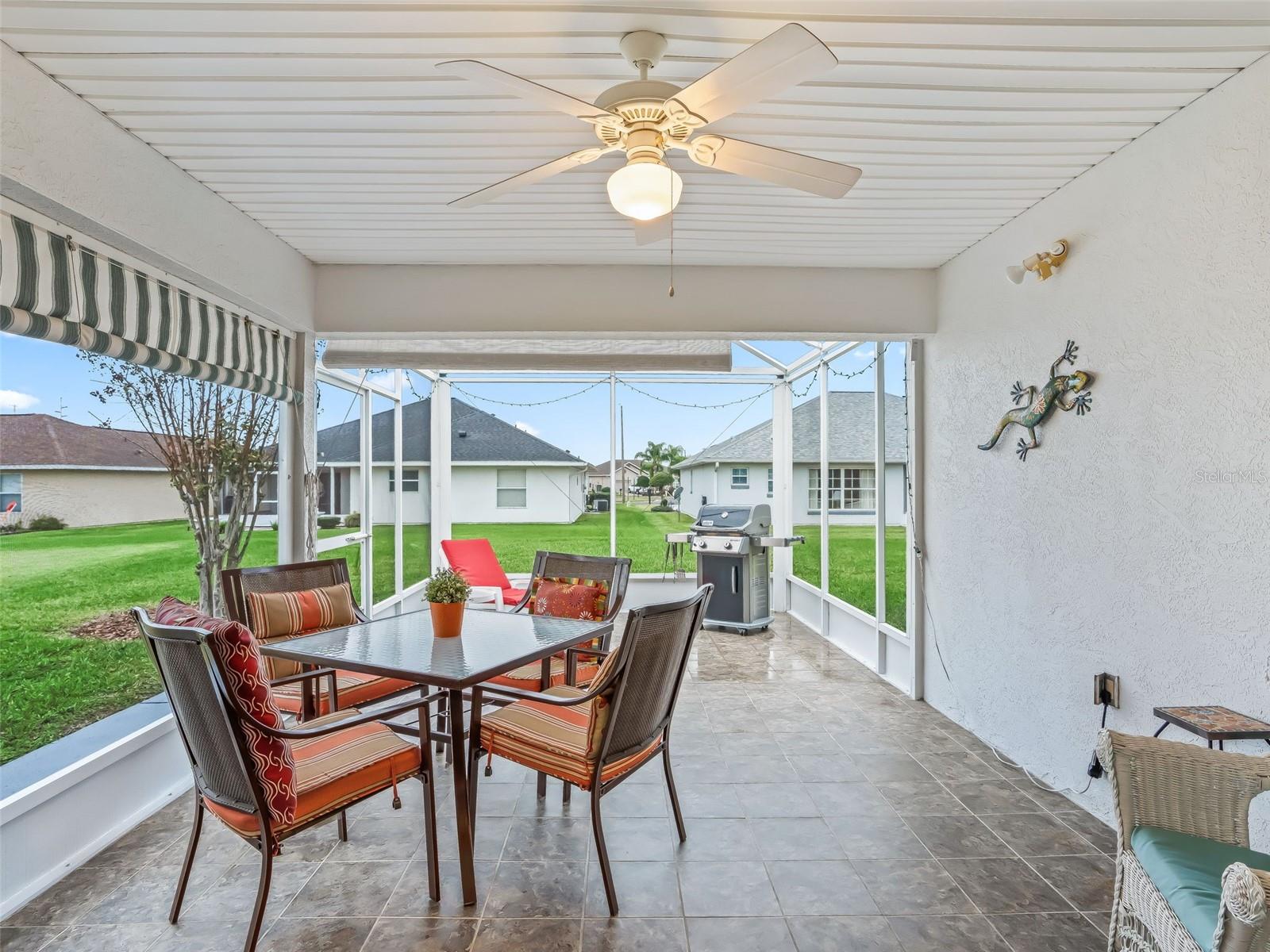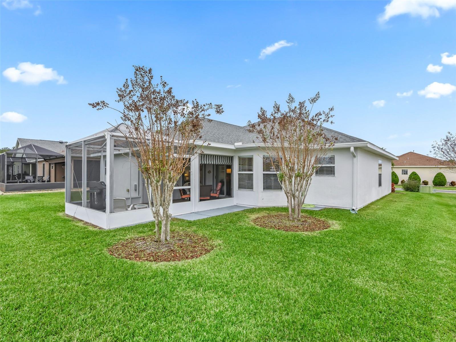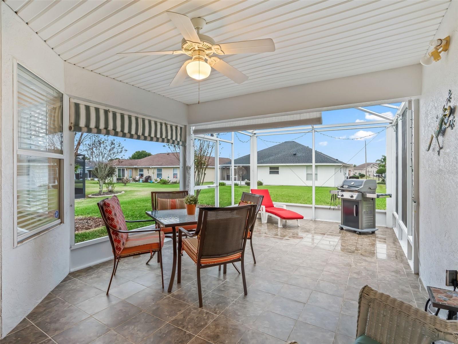 Bem-vindo a esta casa de 3 quartos e 2 banheiros lindamente conservada e uma espaçosa garagem para 2 carros, localizada no muito procurado condomínio fechado Stonecrest 55+. O paisagismo exuberante e a entrada frontal com piso de cerâmica elegante criam uma primeira impressão convidativa. Entre em um hall de entrada acolhedor com piso de cerâmica e graciosas entradas em arco por toda a casa. Uma combinação de bom gosto de vinil luxuoso, laminado de madeira e piso de cerâmica adiciona estilo e durabilidade. A cozinha bem iluminada oferece área de refeições, armários de madeira clara, bancadas em granito, eletrodomésticos, backsplash de azulejos e um prático armário despensa. Um balcão elevado com iluminação pendente oferece espaço adicional no balcão, enquanto a iluminação acima e abaixo do armário e um ventilador de teto completam o espaço. Uma sala de jantar formal separada é perfeita para entretenimento. A espaçosa suíte principal possui portas de vidro deslizantes que levam à varanda, ventilador de teto, closet, armário de roupa de cama e box amplo de vidro com belos azulejos. Dois quartos adicionais estão localizados perto do segundo banheiro, que inclui uma penteadeira e uma combinação de banheira/chuveiro para maior comodidade. A grande sala aberta possui tetos abobadados e portas de vidro deslizantes que levam à adorável varanda parcialmente coberta. A ampla varanda com tela apresenta persianas e piso de cerâmica atraente, ideal para relaxar ou aproveitar o belo clima da Flórida durante todo o ano. Os destaques adicionais incluem uma lavanderia interna e uma grande garagem para dois carros. Os móveis podem estar disponíveis separadamente. Stonecrest é um condomínio verdadeiramente fechado e ativo com mais de 55 anos que oferece lotes espaçosos, segurança 24 horas, estradas privadas e uma impressionante variedade de comodidades. Os residentes desfrutam de um campo de golfe profissional de 18 buracos, várias piscinas, quadras de pickleball, softball, o Broad Stripes Golf & Social Club e mais de 80 clubes para ingressar. Convenientemente localizado perto da Highway 441, Stonecrest oferece fácil acesso a lojas, bancos, restaurantes e muito mais. Agende já a sua visita privada!