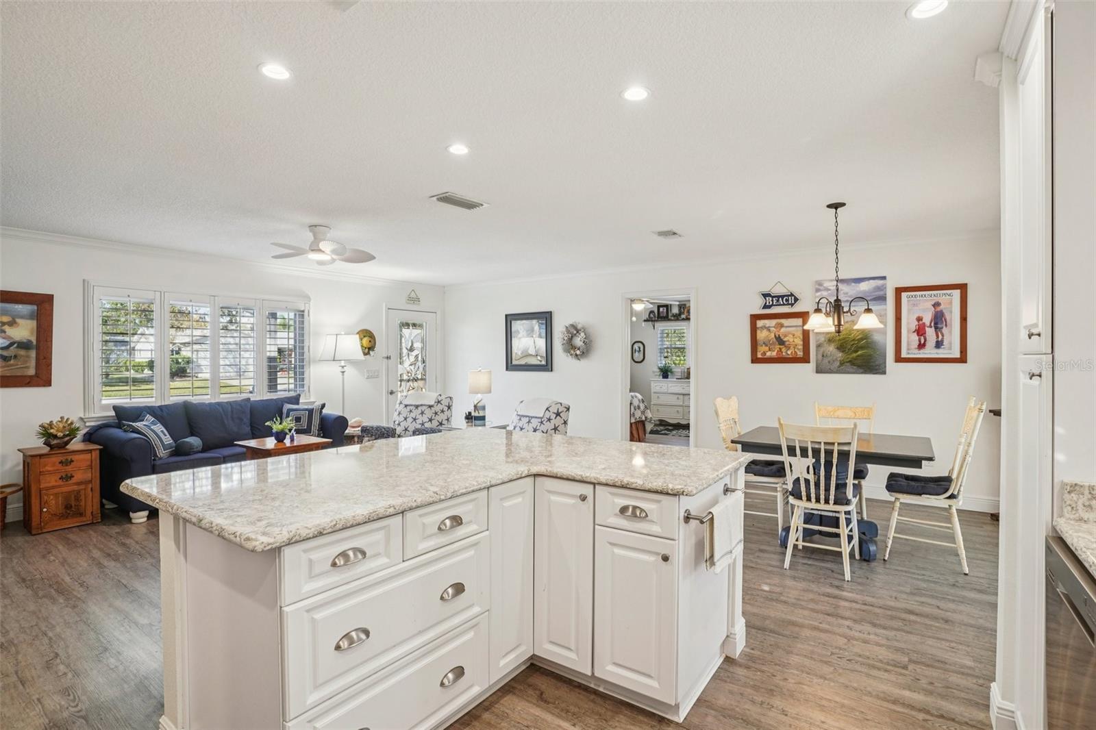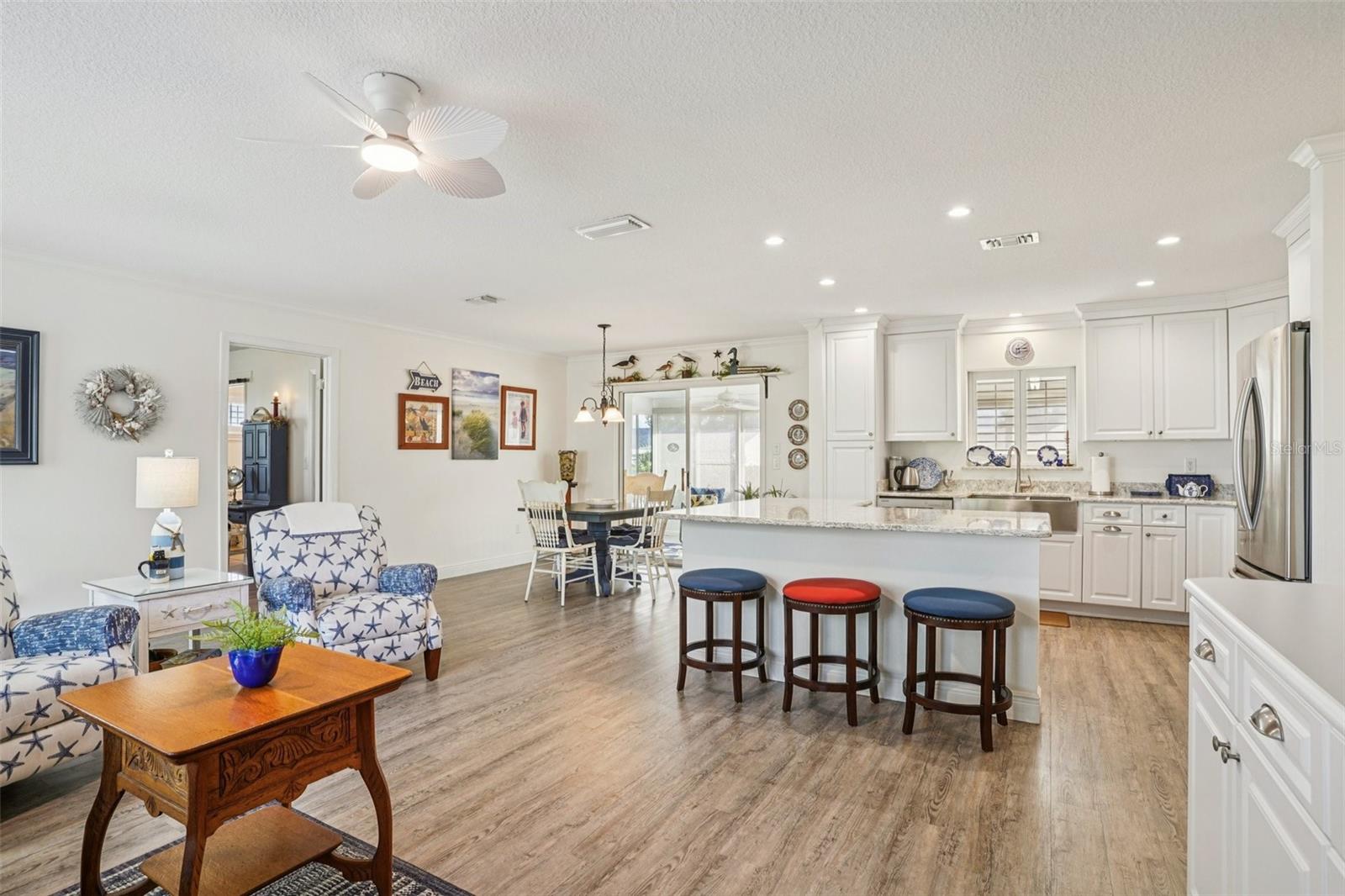 Bem-vindo à sua nova casa. Cuidadosamente atualizada e bem conservada, esta residência de 2 quartos e 2 banheiros oferece uma vida confortável com atualizações de qualidade por toda parte - e o melhor de tudo, sem HOA. A casa possui telhado novo (junho de 2023), área de estar em conceito aberto, bancadas de quartzo, ilha de cozinha com armários com fechamento suave e eletrodomésticos de aço inoxidável. O piso inclui pranchas de vinil luxuosas na sala principal, no quarto principal e na varanda, e alguns carpetes, complementados por venezianas, sancas e portas de 6 painéis para uma aparência refinada. O a suíte principal inclui um box amplo de vidro e uma elegante porta de entrada para maior espaço e charme. Desfrute de relaxamento durante todo o ano na varanda envidraçada com A/C, com vista para um paisagismo maduro. As conveniências adicionais incluem uma cama embutida no 2º quarto, calhas e uma lavanderia interna. Localizado em Spruce Creek South, um condomínio fechado com mais de 55 pessoas, com entrada pessoal e gerenciamento no local, os residentes têm acesso a uma variedade de comodidades, incluindo trilhas naturais, tênis, pickleball, shuffleboard, uma grande piscina, banheira de hidromassagem e um vibrante centro comunitário com atividades sociais programadas, um campo de golfe opcional de 18 buracos. A localização coloca você perto de supermercados, restaurantes, bancos, instalações médicas, da clínica VA e a poucos minutos da Praça da Cidade de Spanish Springs, em The Villages. Há uma taxa de comodidade obrigatória de US$ 177 por mês. Esta casa se destaca. Venha ver porque pode ser um dos mais bonitos do bairro. Agende uma exibição privada ou um tour FaceTime se você não for local.