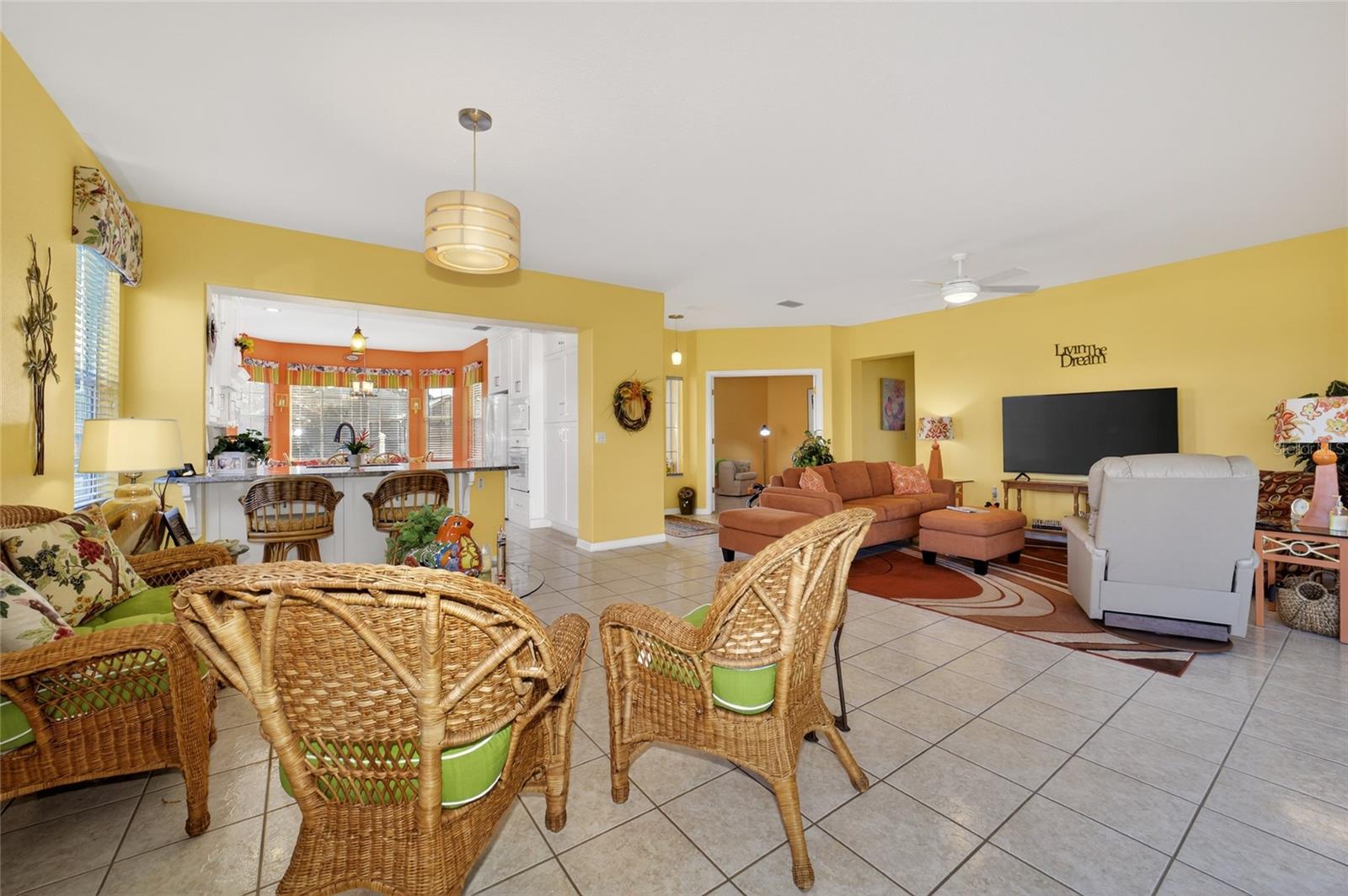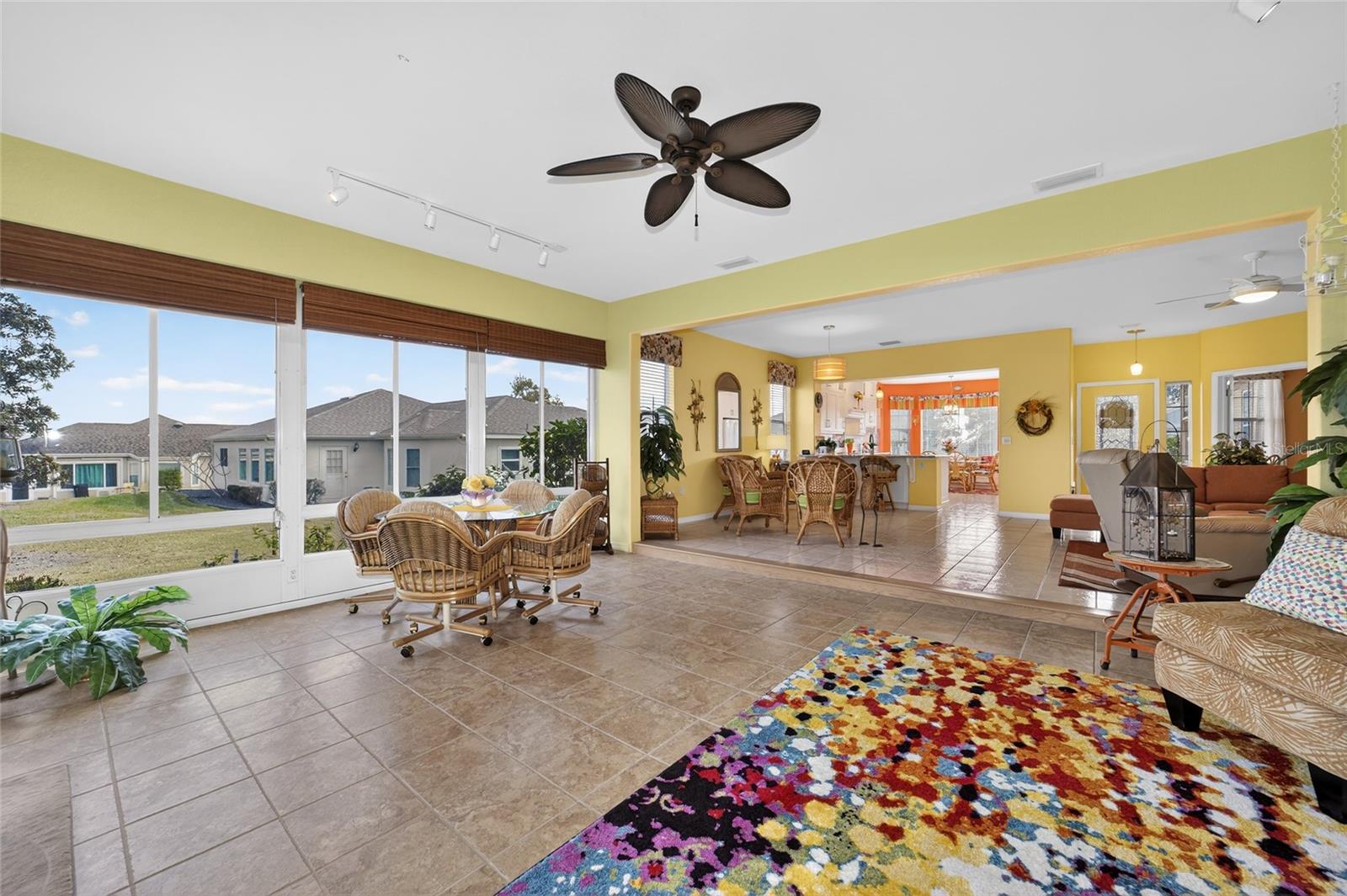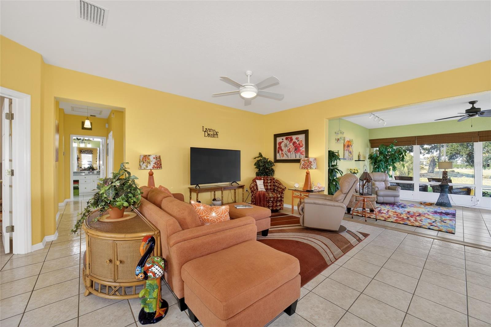 WOW é o que você dirá ao entrar neste modelo personalizado de Coral Gables, que oferece 2 quartos, 2 banheiros, além de uma sala e uma localização excepcional. Uma vez lá dentro, você ficará maravilhado com as vistas deslumbrantes do 9º green do Heritage Golf Course, idealmente situado ao lado da Horizon Pool, Horizon Center, Pro Shop e Liberty Grille. A cozinha foi totalmente remodelada com armários brancos personalizados, azulejos brancos e lindas bancadas de granito de um nível. Os eletrodomésticos brancos de última geração incluem uma geladeira francesa com freezer inferior, micro-ondas e forno embutidos, fogão de bancada e uma adega refrigerada embutida. As características adicionais incluem janelas salientes, uma grande despensa dupla, amplos armários, generoso espaço de preparação e assentos para refeições casuais. A copa oferece lindas vistas do paisagismo frontal, tornando esta cozinha funcional e convidativa para entretenimento. A planta aberta cria uma atmosfera calorosa e acolhedora, realçada pelo piso de cerâmica e iluminação embutida por toda parte. A Grande Sala se abre completamente para a Sala Florida, que leva a uma varanda protegida e a um pátio adjacente - perfeito para aproveitar o sol e grelhar. O piso cerâmico se estende por toda a casa, inclusive nos quartos. A suíte principal possui janelas tipo bay window e um banheiro privativo atualizado com pia de granito e um closet totalmente construído sob medida. O banheiro de hóspedes também foi atualizado. A garagem estendida para 3 carros inclui uma tela elétrica de privacidade, pisos pintados por designers e duas escadas suspensas no sótão para armazenamento adicional. Há um escritório personalizado ao lado da cozinha com armários suspensos. A lavanderia fica na garagem ao lado de uma pia. As principais atualizações incluem um gerador Generac para toda a casa, HVAC (2018), telhado (2014) e um aquecedor de água quente mais recente. Esta é realmente uma casa especial em uma localização privilegiada – uma que você não vai querer deixar de ver. Móveis estão disponíveis.